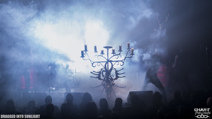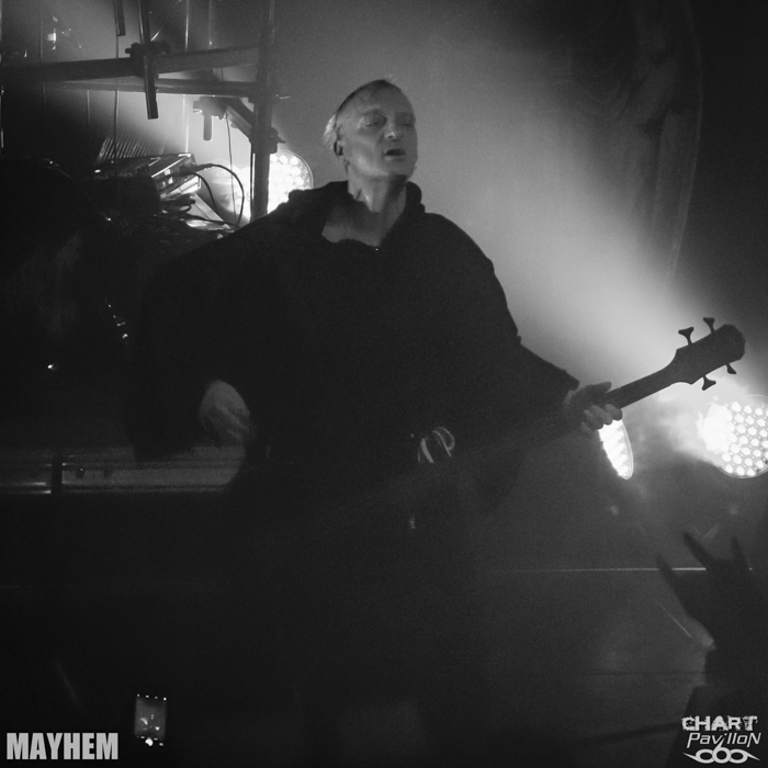 Première surprise de la soirée, indépendamment de la volonté de l'organisation, KHAOS-DEI est annulé. Pour je ne sais quelle raison le groupe n'est plus sur la tournée alors il nous faut patienter une heure de plus avant que le CCO ne se mettent à résonner. C'est donc vers les alentours de 20h30 que DRAGGED INTO SUNLIGHT nous lance un introduction bruitiste au possible. Le groupe se lance finalement dans un set black metal aux accents très prononcés. Ici par de corpse paint et pas de grandes mises en scènes non plus. Un immense chandelier occupe le centre de la scène. Entre la fumée, les deux lumières rouges et le stroboscope, pas évident de voir grand chose sur cette scène. Mais DRAGGED INTO SUNLIGHT en a fait le choix puisque c'est aussi dos au public que le groupe se produit. C'est un choix risqué mais c'est aussi un concept que l'anonymat. Tout est fait pour brouiller les pistes. La sauce prend chez certains, moins chez d'autres si on en juge par le nombre de personnes à l'extérieur de la salle. Il faut dire que le son n'est pas non plus des plus exceptionnels et la performance scénique assez minimaliste. Cela fait plus de 30 ans que MAYHEM est là et qu'il distille sa musique dans le monde du metal. Entre underground et mythe, MAYHEM a choisi sa place. Le groupe n'a pas eu à sortir un nombre incroyable d'albums pour asseoir sa popularité. Certes certains événements du passé ont maqué l'histoire du groupe, et pas pour de bonnes raisons. Cela a tout de même profiteé à sa mythologie. Après un grand retour sur le devant de la scène dans les années 2000 avec le formidable « A Grand Declaration Of War », MAYHEM est revenu progressivement aux racines du black metal avec des albums tels que « Ordo Ad Chao » en 2007 et « Esoteric Warfare » en 2014. 2016 est définitivement le retour aux sources avec la sortie de « De Mysteriis Dom Sathanas Alive », 22 ans après la sortie de l'album originel. Ce soir nous assistons donc à l'interprétation complète de ce disque, rien de moins, rien de plus. L'ambiance est posée avec « Funeral Fog ». Pas la peine de chercher de la lumière, il n'y en aura pas beaucoup ce soir, mais par contre, on ne manquera pas de fumée. Dommage qu'on ne puisse pas distinguer un peu plus les musiciens car certains comme Ghul et bien sûr Attila sont maquillés. Pour le reste des tenues, c'est affublés de robes de bure que les musiciens se présentent à nous sur scène. Depuis quelques temps, MAYHEM est revenu à une formule avec deux guitaristes. C'est arrivé quelque temps après le départ de Blasphemer et finalement c'est une formule qui fonctionne très bien. En effet, les deux guitares permettent de rendre l'interprétation des titres très fidèles à l'enregistrement. Le son est là lui aussi. Il n'y a rien à dire ces huit morceaux joués en live sont impeccablement retranscrits par rapports aux originaux. Il ne nous reste plus qu'à apprécier la musique et le spectacle. Attila CSIHAR est un sacré frontman, il n'y a rien à redire à ce niveau. Les costumes aident forcément l'homme à dégager un truc vraiment fort même il n'a pas vraiment besoin de ça. Le charisme semble inné chez lui et cela n'a rien de surprenant de le retrouver en tête d'un groupe tel que celui-ci. Mais n'oublions pas non plus Necrobutcher à la basse qui est le seul membre à avoir connu les tout débuts du groupe. Il a certes quitté MAYHEM en 1991 mais est revenu en 1995 pour sa reformation. Lui non plus ne manque pas de charisme et d'énergie. Malgré le temps qui passe, sa présence est toujours aussi remarquable. Malgré un set court et quelque peu frustrant MAYHEM a tout de même su s'imposer comme un grand groupe. Le temps semble n'avoir aucune emprise sur eux. Il faut dire que le style est à part et qu'il le sera toujours. Il s'agit des pionniers du genre et forcément ça contribue à la légende. Encore merci à SOUNDS LIKE HELL pour son organisation et son accueil ! Merci aussi pour la variété des productions. |
