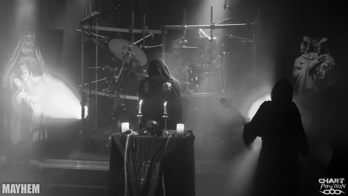MAYHEM est plutôt rare dans la région lyonnaise. Cela faisait depuis 2007 que nous ne les avions pas vus dans le coin. Et si à cela vous ajoutez le fait que le groupe joue actuellement sur scène l'intégralité de son album « De Mysteriis Dom Sathanas », il n'y a rien de surprenant au fait que le concert de ce soir affiche complet. En effet, cet album mythique du black metal est ressorti il y a peu dans une version live alors quoi de mieux pour profiter de l’événement que d'aller voir le groupe le jouer directement sous nos yeux.