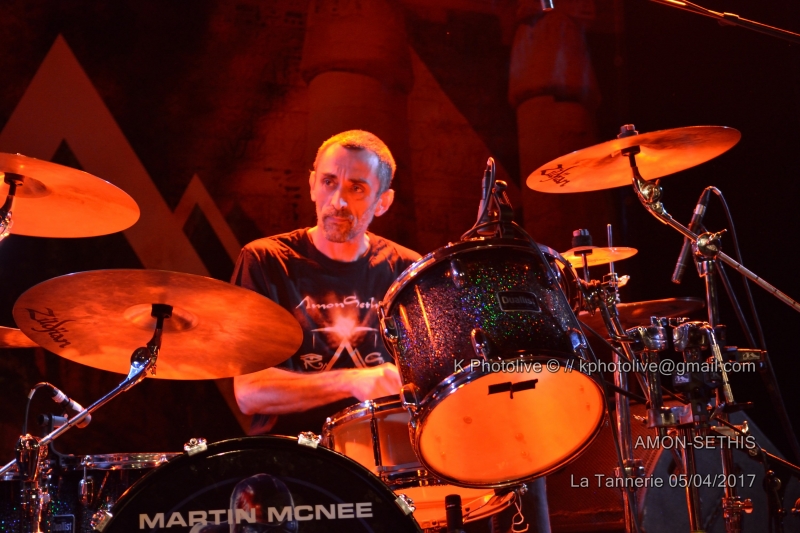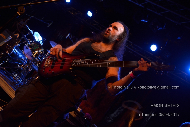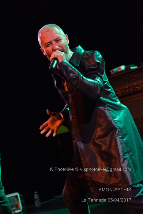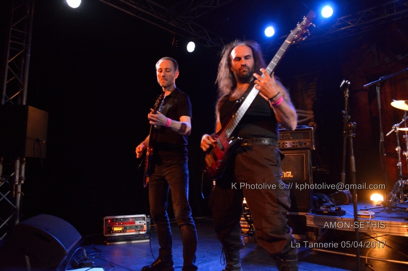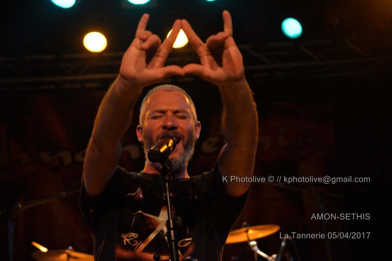 La première partie du concert a été assurée par un groupe de Rhône-Alpes, à voir les Grenoblois de AMON SETHIS dont la prestation de 40 minutes a été diversement appréciée. Nous y reviendrons. Mais revenons brièvement au personnage de BLAZE. On peut affirmer d'emblée qu'il n'a rien perdu de ses qualités scéniques, de sa puissance vocale, de son sens de l'humour et de son sourire bienveillant ou carnassier. Toujours à l'aise et pas blasé pour un sou, « le Blaze », choisi il y a plus de vingt ans par Steve Harris, bassiste, comme chanteur-parolier (intérimaire) du groupe déjà célèbre IRON MAIDEN, n'y officiera que de 1993 à 1999, années où il remplaça Bruce Dickinson. Au début des années 2000, il fonda son propre groupe, appelé tout d'abord BLAZE, puis BLAZE BAYLEY et enregistra de nombreux albums, le dernier en date étant « Endure And Survive », dont plusieurs titres figureront dans la setlist de ce soir, à la Tannerie de Bourg-en-Bresse. Il est 19h 45 lorsque AMON SETHIS, 5 musiciens dont un claviériste, investissent la scène, soigneusement préparée avec leur emblême , le triangle en feu , déposé à l'avant, puis relégué au second plan. Julien, le chanteur portant une sorte de masque noir et un manteau de la même couleur, ne perd pas une seconde et se lance dans l'exploration d'un univers très particulier, l'Egypte ancienne, les pharaons, les pyramides, dans un sabir pas toujours identifiable, mais la voix est parfaitement en accord avec le sujet traité, peut-être un peu hermétique et savant pour quelques spectateurs perplexes, mais la musique est belle, le spectacle bien rodé avec ses deux flammes inattendues qui jaillissent de part et d'autre de la batterie. Aux claviers, Pierre-Yves ajoute des notes qui suscitent les applaudissements, les autres artistes participent avec talent au cérémonial tandis que le chanteur, véritable âme du groupe, brandit un gros livre relié, module sa voix. La fin du set est proche, on interpelle le public en annonçant la prochaine sortie du troisième album. Nous venons d'assister à une prestation de heavy progressif d'une grande exigence scénique. Ajoutons que nos amis Grenoblois ont noué des liens d'amitié avec le groupe de Kaiserslautern (Allemagne), VANDEN PLAS, avec qui ils partagent parfois la scène. . (La setlist est en photo ci-dessous). Le concert de Blaze Bayley commence à 21h précises et s'achèvera à 22h 30. C'est un Blaze imposant aux biceps tatoués, entouré de ses trois musiciens, qui d'abord, s'adresse au public dans sa langue maternelle, pour regretter que l'événement de Bourg-en-Bresse ne soit pas « sold out » (loin de là!), mais insiste avec une émotion non feinte sur son bonheur d'être ici ce soir, pour jouer avec son coeur (« with my heart ») pour des gens motivés et enthousiastes.En effet, le public chante avec lui, frappe des mains, reprend des morceaux, notamment ceux issus des albums d' IRON MAIDEN. Blaze Bayley tend les bras en direction de ceux qui l'acclament, n'hésite pas à rappeler à l'ordre un fumeur indiscipliné, va jusqu'à lancer quelques courtes phrases en français. Il y a un côté à la fois solennel et touchant chez cet homme qui exprime sa joie d'être en France, pays dont il chante, entre autres, les « valeurs de paix et de liberté ». Une certaine fatigue semble toutefois s'installer chez notre héros du jour, il se retire quelques instants de la scène pour laisser son batteur, Martin Mc Nee, nous offrir un joli solo de batterie. Headbangings, cris et mouvements divers du côté du public, classiques de MAIDEN ou titres de BB de l'autre côté, un véritable lien de sympathie s'est noué ici, ce soir, entre la salle et la scène, entre cette maigre assistance et ces quatre artistes. Ce concert me rappelle, avec quelques différences, celui de Michael Schenker, ex-guitariste de SCORPIONS, qui n'avait alors pas, lui non plus, attiré les foules en dépit de sa notoriété. Les absents ont toujours tort, dit-on, ce fut bien le cas le 5 avril à la Tannerie. Espérons que les Grenoblois ont été plus nombreux au rendez-vous de BLAZE BAYLEY et d'AMON SETHIS dans leur ville, 24 heures plus tard. (La setlist est en photo ci-dessous) Il convient de remercier La Tannerie qui a accueilli l'événement dans ses murs , les deux groupes, les valeureux spectateurs (!), les représentants des groupes bressans de hard rock et tous ceux qui ont oeuvré, de près ou de loin, à l'organisation de ce concert. |