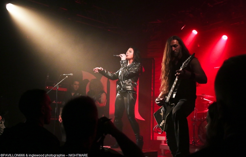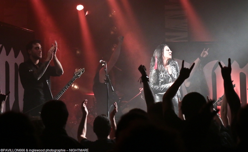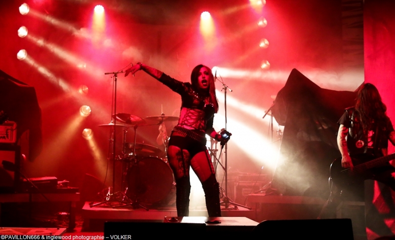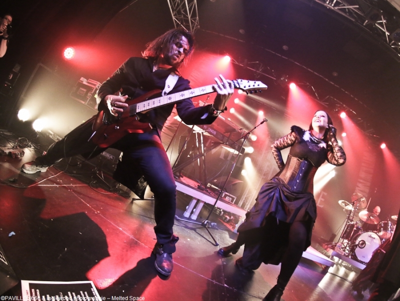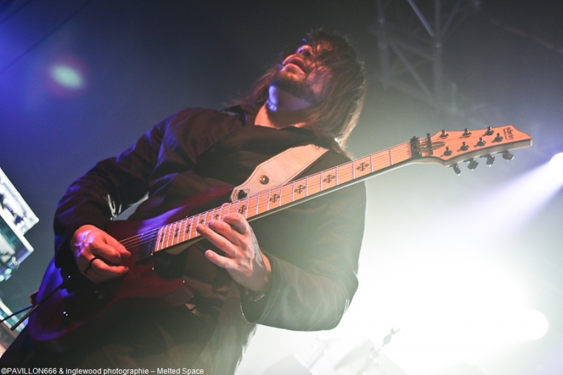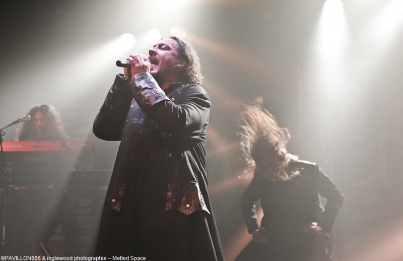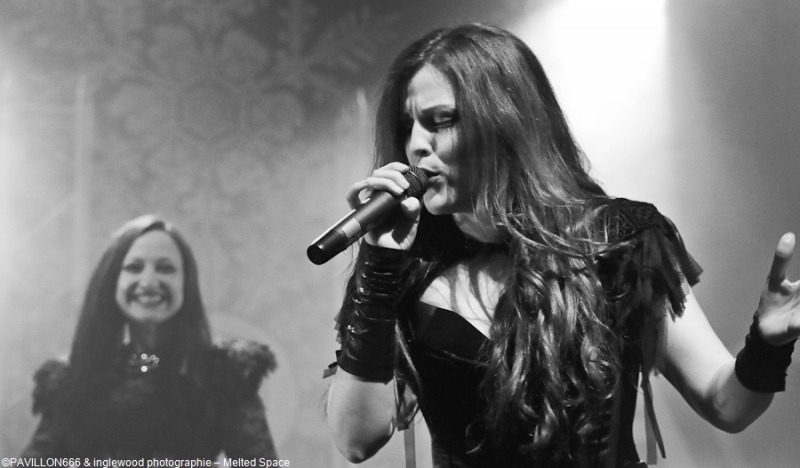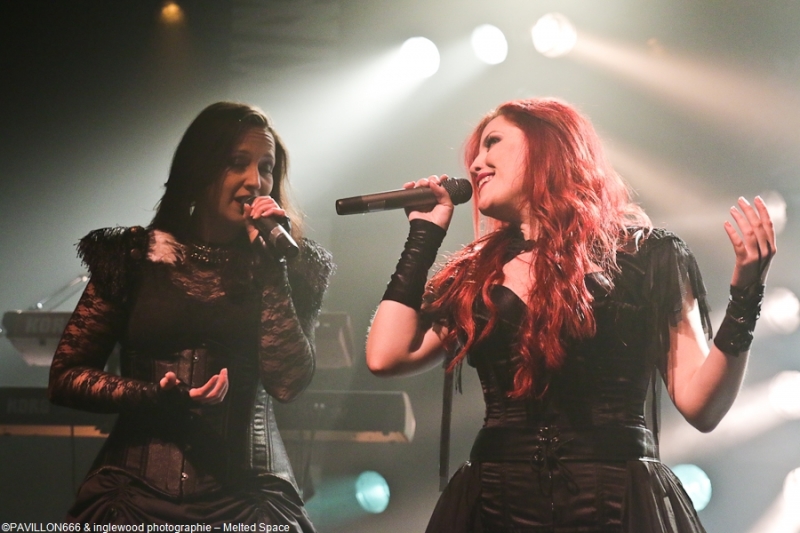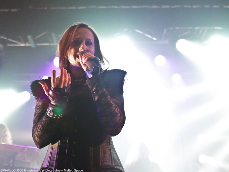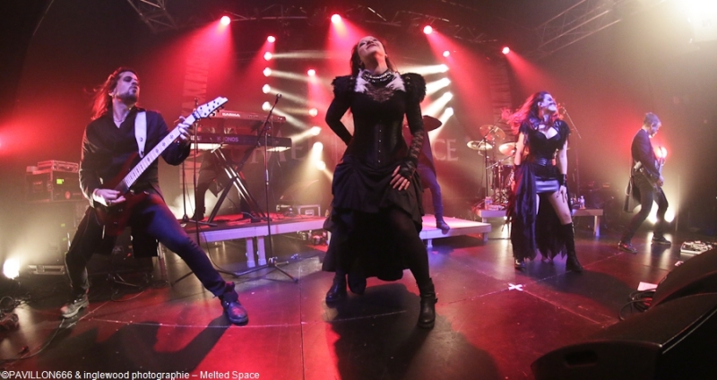Ce concert organisé par la Maison du Boulanger réunissait trois groupes de renommée européenne dont un bien connu des amateurs troyens, MELTED SPACE. Il est à peine 20h30 quand la première formation, VOLKER entre en piste dans une chapelle encore quelque peu clairsemée. Le quatuor bordelais emprunte le chemin de l'horror-sludge métal à savoir un son industriel aux rythmes lourds et à l'atmosphère sombre. La chanteuse Jen est rapidement arrivée à envouter le public par son charme provoquant et son chant terriblement agressif et engagé. Les compositions, bien qu'un brin répétitives ont visiblement conquis la fosse qui encourageât bruyamment le groupe et l’ensorcelante Jen. Habituellement en tête d'affiche, le groupe NIGHTMARE avait naturellement laissé cette place aux Troyens de Melted Space. Deux mots nous viennent en tête : quelle performance ! Le combo Grenoblois est au beau milieu d'une tournée de plus de 20 dates et ça se sent tant l'aisance scénique est palpable. La proposition musicale est assez classique oscillant entre le power et le heavy metal, de gros riffs bien lourds et superbement efficaces. Les deux bannières au logo du groupe sont installées et c'est parti. Deuxième groupe à chanteuse et deuxième haussement de température à la Chapelle Argence. Maggy Luyten est superbe, toute de cuir vêtue, elle arpente la scène telle une lionne et interpelle de la voix et du regard tous ceux qui seraient assez fous pour vouloir la défier. Un show maîtrisé et puissant qui n'a laissé à personne le temps de reprendre son souffle, une formation trentenaire qui joue avec la fougue d'un groupe d'ados. Le maintenant nombreux public acclame longuement les musiciens qui immortaliseront ce moment en faisant une photo souvenir. Changement de plateau, on vide toute la scène et on met en place les structures qui permettront à MELTED SPACE de délivrer son show de manière optimale. Il faut préciser que le groupe compte huit membres et que cela nécessite de la place. En tant que Troyens moi même, ce n'est évidemment pas la première fois que j'assiste à un concert de MELTED SPACE, mais il est impressionnant de constater qu'a chaque fois, le niveau artistique et musical est à la hausse. Plus d'une heure de poésie metal à la sauce Pierre Le Pape, car c'est à ce monsieur que nous devons ce magnifique projet qui nous rend tous fier. C'est avec de l'espace que s'exprime le mieux le groupe aux deux chanteuses et deux chanteurs. Les tubes, bien connus des spectateurs, s'écoulent et imprègnent de leurs violentes poésies les murs d'une chapelle qui résonne comme jamais. Les tenues des artistes sont magnifiques, notamment celle de Lucie et Ailyn, en reines des fées gothiques donnent une touche aboutie et professionnelle à la formation. Un grand spectacle est un bonheur évident de jouer à domicile devant les fans de la première heure, les amis et la famille qui s'est prolongé en salle où tous le groupe a pris le temps de rencontrer ses fans pour prolonger un peu la magie de MELTED SPACE. |
