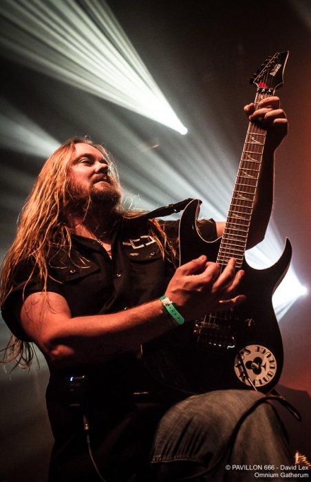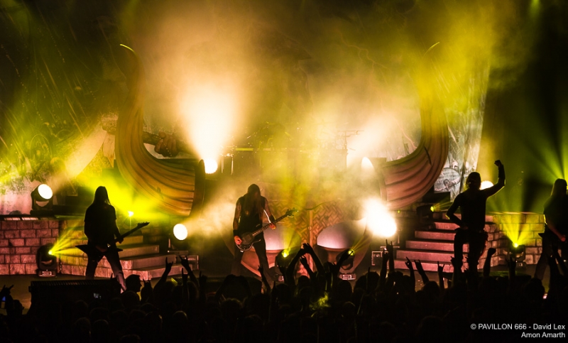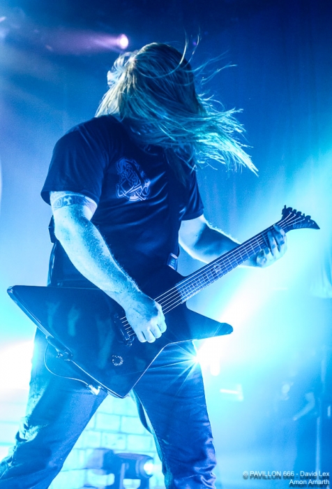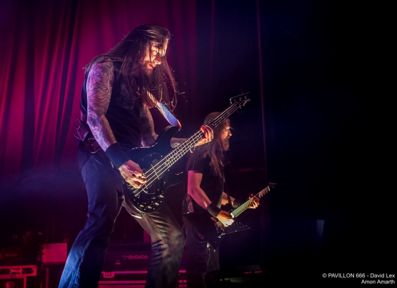 Je reprends, c’est donc sous un temps tout pourri que je me rends à cette date à ne pas manquer, un live qui s’annonce énorme et nous fera vite oublier Météo France. Arrivé dans L’Autre Canal archi complet, je découvre le décor planté : un gigantesque casque viking orne la scène, le ton est donné. I - Premières ondées : Les finlandais d'Omnium Gatherum ouvrent le bal. Le public est déjà conscient de la chance qu'il a d'avoir eu des places à ce concert d'une tournée qui est fortement plébiscitée et ce groupe, bien que moins connu que les deux autres, n'a pas de mal à convaincre. Ils jouent une sélection de titres principalement tirés de leurs trois derniers albums. Le groupe semble s'amuser et c'est communicatif. II - La tempête s’annonce avec l’arrivée de Dark Tranquillity. Le groupe nous berce de son death mélodique et technique, qui le caractérise si bien. A côté de titres plus anciens, tels que ThereIn et Misery's Crown, nous avons droit à une sélection du nouvel album, Atoma, dont le titre phare Forward Momentum. L'énergie débordante du chanteur Mikael Stanne, est très communicative. Notons également la présence sur scène du nouveau guitariste « Monsieur » Christopher Amott (ex-Arch Enemy) qui vient remplacer le guitariste lead du groupe, Niklas Sundin. Les titres défilent trop vite et bientôt c'est la pause, juste avant l'entrée sur scène des vikings d'Amon Amarth. III - Le déluge : Ne serait-ce que par le décor qui est planté et attend, casque à corne (soit dit en passant, il me semble que les casques de viking n'avaient pas de cornes), set de batterie en hauteur, rampes, nous savons qu'un spectacle énorme nous attend. De par les rumeurs, nous savons que nous allons en prendre plein les oreilles et plein la vue et ce sera le cas. Le groupe fait part de son enthousiasme et le public le lui rend bien. Johan Hegg se rappelle des bons souvenirs qu'il partage avec le public de Nancy, et fait appel au patriotisme des nancéens en leur indiquant qu'à Caen, le public avait été bien plus combatif dans ses cris et applaudissements. Le nouveau batteur du groupe Jocke Wallgren nous gratifie d'un solo de batterie pour relancer les applaudissements. Une mise en scène élaborée avec combats de vikings illustre les évènements décrits dans les paroles des chansons. Guardians of Asgaard et Twilight of the Thunder God sont le mot de la fin de cette soirée fort agréable qui nous a tous enflammés à l'unisson sous la bannière d'une fraternité viking. Bref, tout cela est bien rôdé mais toujours aussi sympathique et efficace. De quoi donner le sourire à leurs fans jusqu'à la prochaine tournée. Un grand merci à toute l’équipe de L’Autre Canal. |