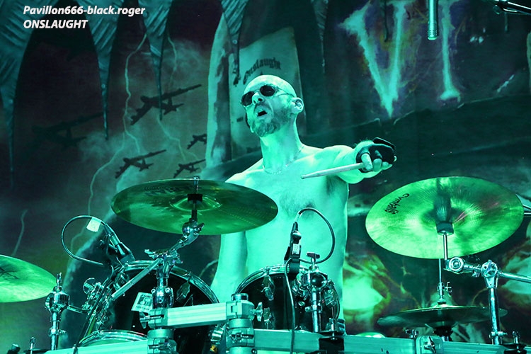 Tête d’affiche de la journée, les Britishs de ONSLAUGHT déclarent la guerre à presque 1 heure du matin sur fond de sirènes lugubres. Ceux de bristol envoient l’artillerie lourde avec leur thrash millésimé et sans concession à l’aide d’un son puissant à vous arracher le casque.