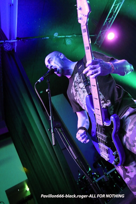 Du thrash au hardcore il n’y a qu’un pas allègrement franchi avec la venue des bataves ALL FOR NOTHING. Leur arme secrète, c’est la présence de la bombe Cindy, frontwoman hors pair à rapprocher de Candace de Walls Of jericho vous me suivez ? Alors ça va partir dans tous les sens car les musiciens vous plaquent contre les murs à grand coups de riffs percutants. Cindy et ses acolytes sont en mode « jump » quasiment en permanence, quelle pêche, quelle classe !