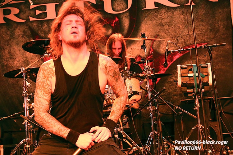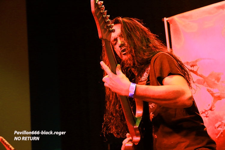 Et puis c’est parti sur un rythme d’enfer avec cette formation frenchie qui arpente les scènes depuis plus de 25 ans déjà. Bien sûr il y a eu beaucoup de changements de line-up durant toutes ces années, mais la « touche » No return est restée fidèle à sa route initiale. Aujourd’hui stabilisé ce line-up nous propose des sets incroyablement énergiques et puissants comme ce soir à Montagny où le quintette a tout écrasé sans problème laissant un public médusé par tant de charisme et de savoir- faire. Le set fut donc énorme, il n’y a pas photo !