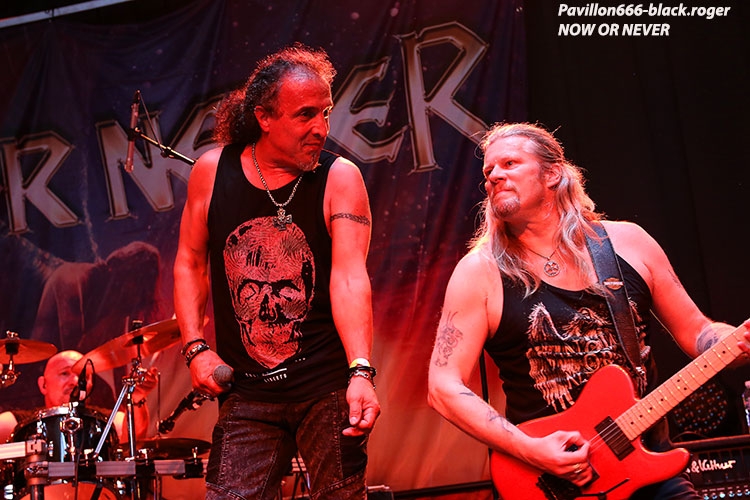 Ah le bon heavy-metaaal des 80’s avec NOW OR NEVER à la sauce actuelle. Mais oui, le chanteur n’est autre que Jo Amore (ex-Nightmare) qui à l’aide de musiciens musclés redonne vie au gros heavy-rock qui tâche. Et nous reconnaissons aussi Ricky Marx (ex-Pretty Maids) et Ranzo (ex-Sultan). Alors c’est pro de chez pro, ça tabasse sec et le bon vieux hard-rock fait un malheur dans un public qui visiblement apprécie à sa juste valeur ces envois plombés à souhait avec tous les clichés du genre.