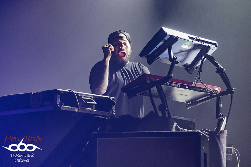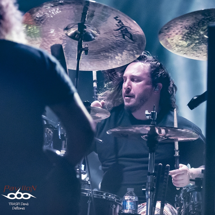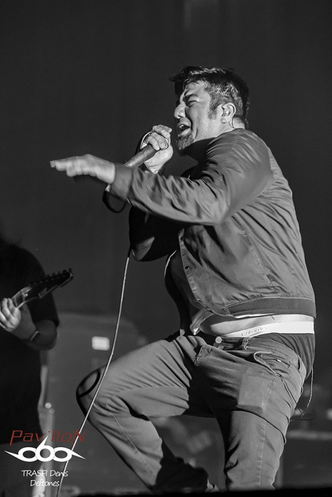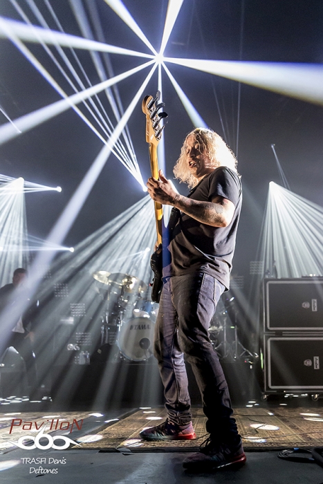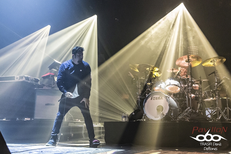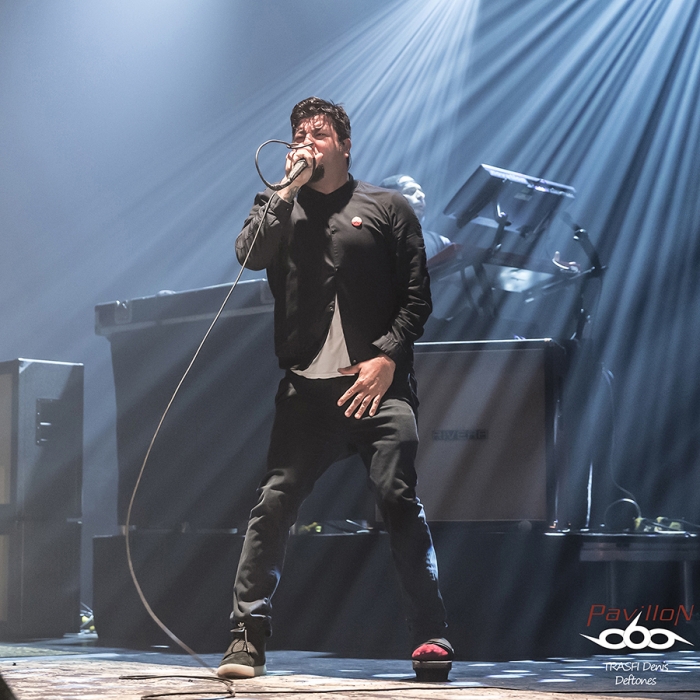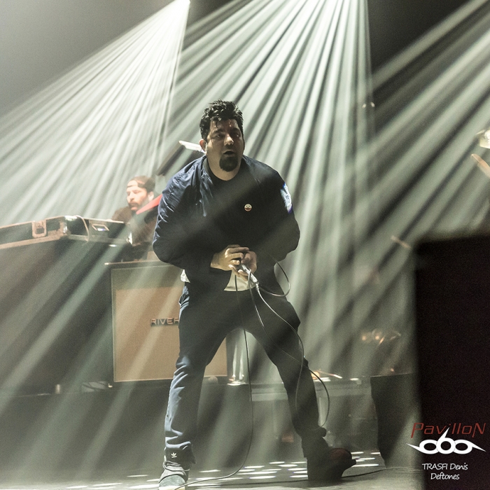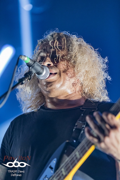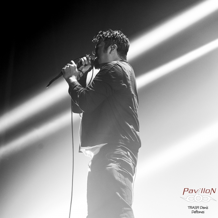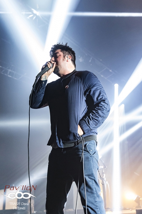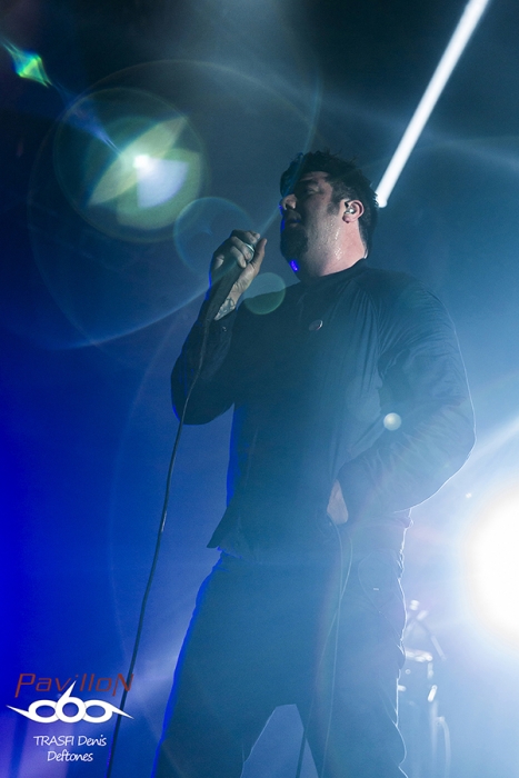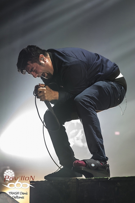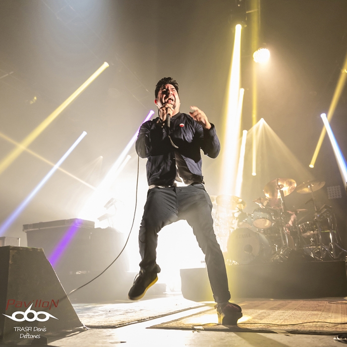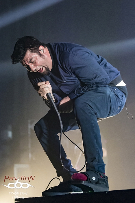 Après un changement de plateau, le groupe tant attendu investit la scène et nous retrouvons Chinon survolté avec à son pied une sorte de chaussure / semelle en caoutchouc amortissant les chocs. Car oui il a le pied cassé !!! Mais ce n’est pas ça qui va arrêter Chino au plus grand bonheur des fans. Alors c’est sur qu’il ne saute pas partout mais il est là et bien là et il va le faire savoir. Sourire aux lèvres il balance son chant reconnaissable en alternant les passages graves et ceux aigus. A la grat’ Stephen fait cracher son ESP pour sortir ces riffs puissants. Jouant avec son ventilateur, les cheveux voltigent et tourbillonnent. La bass et la batterie n’est pas en reste en appuyant chaque morceaux d’une rythmique implacable de précision.