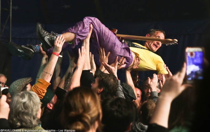 L’erreur fut réparée ce vendredi 12 mai, premier des trois jours de festivité. Seul jour auquel j'ai assisté également. Un festival qui s'est déroulé en extérieur, sur le parc des Lilas de Vitry sur seine dans une formidable ambiance décontractée, écolo et mondialiste. Bref de bonnes vibrations un peu partout sur le site et de bonnes odeurs de beuh aussi. Heureusement, les deux scènes étaient sous chapiteaux car coté météo, le début de soirée fut épique avec de bons gros orages qui nous ont laissés un peu humide et boueux mais toujours aussi motivé. Deux chapiteaux, un ouvert sur les côtés avec une petite scène, type café concert et un deuxième, plus grand avec tout le matos des grosses structures, type festival. Avant toute chose, les deux raisons qui m'ont poussé à me rendre ce vendredi à Vitry se nomment : « Burning Heads » et « Mass Hysteria », le reste fut du bonus et il y en a eu. Riche programmation, plutôt orientée rock (ça tombait bien) avec :Mass Hysteria, Les Wampas, Soviet Suprem, Burning Heads, Lion's Law, Goulamas'K et Pogo Car Crash Control . Bon, bah j'ai pas tout vu, mais je m'en vais vous faire part de mes ressentiments sur les groupes qui m'ont le plus enthousiasmé. Pogo Car Crash Control est constitué de jeunes déglingos comme je les aime. Pratiquant un punk/rock noïsy des plus percutants aux textes … personnels et à l'humour décalé qui m'a vraiment beaucoup parlé. A suivre et à découvrir pour ceux qui ne les connaissent pas de manière urgente. Direction la grande scène pour recevoir la grand-messe de M.Didier Wampas !! Oh bah dit donc, si t'es pas prêt, ça peut surprendre. Ou ces mecs vont-ils chercher autant d'énergie ? Sinon, Les Wampas, ça reste bien cinglé, superbement bien joué et avec un humour décalé des plus punks. Un gros moment de rock n' roll on s'en bat les c... Didier Wampas est le roi ! S'est ensuivi un flashback de plus de 20 ans avec, sur scène, un groupe dont j'ai usé la cassette dans les années 90. Burning Heads ! N'ayant pas eu la chance de les voir à l'époque, j'ai complètement trippé, un concert punk, dense et mélodique exécuté par les tauliers. Une leçon de rock burné, efficace par des gars vrais et honnêtes, un souvenir magnifique. Pas le temps de respirer que je prends la direction de la scène où Mass Hysteria va, encore une fois, mettre tout le monde d'accord. Quatrième concert en un an pour ma part, c'est beaucoup ?, non ! Il suffit de discuter 5 minutes avec les deux premiers rangs, occupés par la « famille Mass Hysteria » pour comprendre que le groupe peut se targuer d'avoir le plus fidèle des publics, plus de 20 concerts pour certains. Toute la famille est là et réagit et interagit avec le groupe. L'armée des ombres ! Alors, et bien, je serai tenté de dire que celui qui n'a jamais vu les Mass en live à indéniablement raté quelque chose et est de mauvaise volonté vu le nombre de dates effectuées par le groupe. C'est hyper en place, ça tabasse, Mouss est volubile, les titres sont d'une efficacité redoutable en live et le groupe, dans son ensemble fait tout pour être le plus proche de son public. Comment ressortir avec autre chose qu'un sourire d'un concert de Mass Hysteria ? J'ai un peu loupé Lion's Law pour cause de restauration, juste eu le temps d'entendre un street-punk typé Oi! Oi! Accompagnées de tenues adéquates. Sans porter de jugements, c'est pas mon truc de toute façon, mais le petit chapiteau avait l'air de bien réagir, les fans présents avaient l'air comblés. Dernier concert pour ma part, Soviet Suprem. Je ne suis évidemment pas le mieux placé pour chroniquer ce genre de projet mais je suis vite rentré dans le délire et dois bien avouer que c'est plutôt bien foutu. Le concept d'un Beastie Boys soviétique barré avec toute l'iconographie pré-chute du mur voulant aller à contre-courant de l'image américano-mondialisé de la musique est singulier mais réussit. Une vaste fiesta de dingue ou les très nombreux fans ont donné de la voix et des pas de danse pour soutenir Soviet Suprem. Un concept bien construit et divertissant. En guise de conclusion, je dirai qu'en fonction de la programmation de la 10e édition, je reviendrai avec plaisir tant le concept de ce Festival sur les Pointes est sympa et qu'il est impératif de soutenir les musiques vivantes et ceux, souvent bénévoles, qui se démènent et donnent du leur pour que de tels festivals perdurent, Merci à vous ! Pour des raisons de confidentialité YouTube a besoin de votre autorisation pour charger. Pour plus de détails, veuillez consulter nos Politique de confidentialité. |