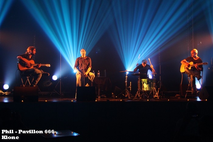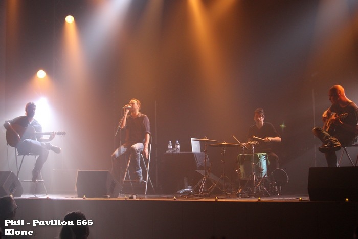 Brieg Guerveno engage ce programme intimiste, le frontman a pour habitude de s'exprimer au sein d'un projet solo progressif épaulé sur scène par trois compères. Pour l'occasion, le chanteur - guitariste est seul au milieu de l'espace scénique. Sa musique aux couleurs celtiques, avant gardiste voire planante incorpore de multiples influences dans ses compositions attachantes et captivantes. Les textes présentés en breton ne constituent aucun obstacle à retenir l'attention du public. En l'espace de trente minutes, Brieg Guerveno conclue un set avec les honneurs pour un exercice doublement difficile consistant à ouvrir les hostilités en chevalier solitaire. The Last Embrace Band pratique traditionnellement une musique orientée rock progressif et métal atmosphérique, sous la forme de quintette. Le schéma acoustique voit la formation se réduire à un trio composé de : Sandy Carles (chant), Olivier Dubuc (guitare) et Pierre-Henri Collin (claviers). L'exercice est lui aussi complexe, consistant à adapter des compositions complexes et principales longues pour des morceaux acoustiques restant sur les mêmes durées tout autant intéressant. Les musiciens restituent parfaitement les émotions garnissant leurs thèmes musicaux. Ce deuxième set prolonge l'atmosphère chaleureuse entreprise par Brieg Guerveno. Lors de ma dernière chronique livrée sur Klone, "Here Comes The Sun", mes propos faisaient référence au fait que le groupe s'engageait dans une voie délicate et périlleuse par cet ouvrage aux mélodies léchées, légères, captivantes et addictives. Depuis, les musiciens ont décidé de prolonger le voyage vers des concerts acoustiques, plus dépouillés. Posés sur la scène, restant assis épaulés de leur instrument respectif, les quatre musiciens entrent rapidement en communion avec l'assistance. Toutes les nuances surgissent aux oreilles de l'auditeur, toutes les atmosphères entrainent celui-ci dans le sentiment commun qui est l'émotion. Le contraste mettant en valeur et opposition chaque note, phrasé intimes aux rythmiques tribales conduites par une batterie minimaliste renforce la captation du message, la qualité et la maitrise des compositions. Le set dégage une certaine énergie, un certain dynamisme bien qu'il ne contiennent aucun instrument électrique. Les titres défilent dans une ambiance contenue mais sans retenue, la formation apprivoise le public par cette pureté, par cette équilibre constitué de la douceur des guitares et des frappes martiales des fûts. Cette dimension portée par Romain Berce (batterie), sait se moduler selon les nécessités allant d'instant intenses et imposants à des effleurements de balais précis. Guillaume Bernard et Aldrick Guadagnino (guitares) échangent des phrasés propres et sans bavures, chaque notes, chaque arpèges sont livrés avec clarté et vibrations. Dans son domaine, Yann Ligner transmet sa passion par une voix claire et attachante. Le vocaliste exprime une véritable appropriation des titres repris et des retranscriptions de ses propres morceaux. Il se dégage au travers de ses cordes vocales une grande énergie, une grande intensité. Klone, comme en version électrique, sait séduire son public et convertir des amateurs de belle musique issus d'horizons divers. On a du plaisir à voir le groupe grandir et se constituer une place de référence dans son domaine musical. |