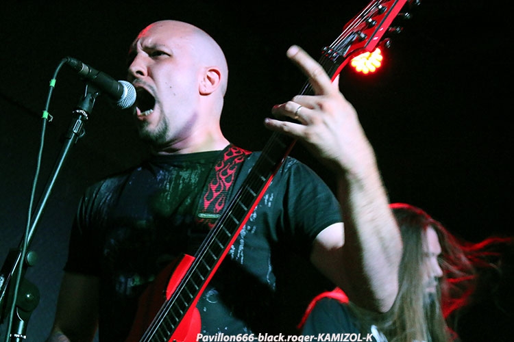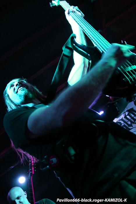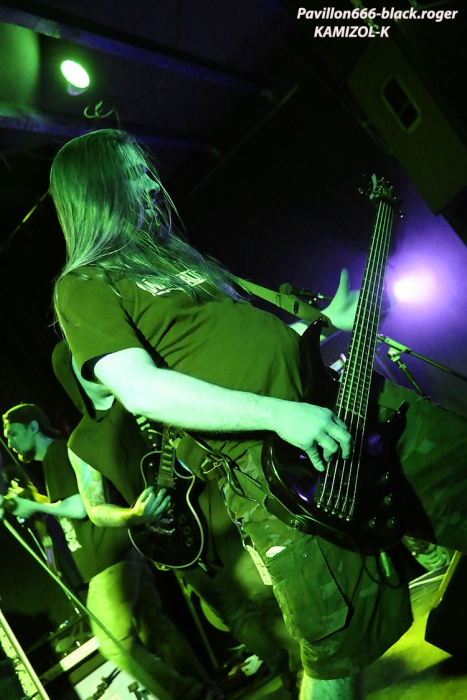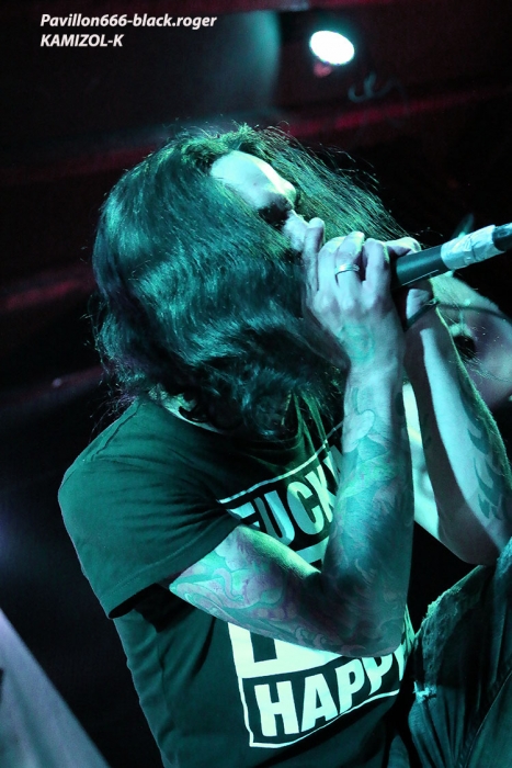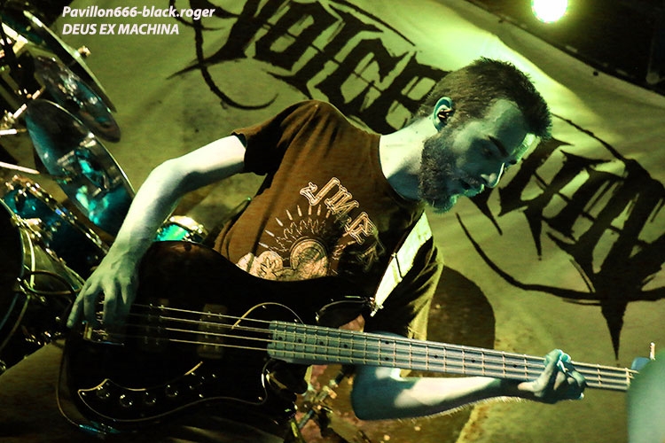 KAMIZOL-K a donc ouvert le feu peu après 20heures devant un public qui semblait les attendre de pied ferme. Ces amis avaient donc raison car cette formation locale qui comprend des musiciens déjà rôdés à la scène compte bien se faire connaitre de plus en plus et ce sera déjà chose faite ce soir à Décines. En effet, que d’énergie déployée, que de brutalité contrôlée (ou incontrôlée), que de savoir- faire musicalement parlant. Cette jeune formation est animée au chant par Lio et Chucky qui a tout comprit aux « growls », un frontman et une frontwomen donc qui de par leur présence mènent la danse metal et hardcore. Avec eux des complices maîtrisant bien leurs instruments respectifs. Alors ça fait mal (ou bien, c’est selon), les brûlots envoyés ne font pas de cadeau et fatalement on aime et on les soutient fortement, belle découverte en ce qui me concerne. Set-list en photo. Viennent ensuite les Genevois de DEUS EX MACHINA emmenés par l’intrépide Stephany, seconde hurleuse/chanteuse de la soirée entre parenthèses Cette formation de death mélodique que j’avais eu l’occasion d’apprécier deux fois, à Genève (Suisse) et à Hauteville (Haute-Savoie) profite de ce concert pour nous présenter son nouvel album intitulé « a new world to come », mais pas que ! Nos amis Suisses savent maîtriser un certain death-groove, certes assez brutal, mais aussi des envolées plus mélodiques voire progressives à certains moments c’est ce qui fait tout le charme et l’originalité de leurs compositions. Le rendu en live est étonnant avec des débordements thrashcore sous-jacents. Ce qui nous fait dire que ce groupe encore jeune sur la scène metal avance bien à force de travail et de ce fait est plein d’avenir, je ne sais pas si vous vous en êtes rendu compte ce soir, moi oui ! Alors nous avons apprécié à sa juste valeur leur set avec un son au top qui a renforcé le tout Conclusion, Deus Ex Machina, un nom à retenir dorénavant dans cette mouvance métallique qui nous est chère. Set-list en photo Seconde formation Helvète de la soirée, voici donc maintenant devant nous VOICE OF RUIN qui lui aussi a quelque-chose à dire, en l’occurrence nous présenter son nouveau « méfait » intitulé « purge and purify » avec un décorum de scène assez malsain cette fois-ci. Bientôt dix ans que cette formation née au bord du lac Léman peaufine un certain metal, parfois plus hardcore, parfois plus deathcore, parfois plus thrash, un metal qui évolue au fil des albums et des prestations tout simplement. Randy Schaller mène de main de maître ce groupe qui a déjà parcouru l’Europe et le Japon afin de faire connaitre sa capacité à tenir en haleine les métalleux de tous poils et plus encore. Et si ce soir nous avons le privilège de voir leur nouveau line-up en action, nous avons aussi le privilège d’assister à un set mélangeant des envois très « rentre dedans » (thrash quand tu nous tiens) avec aussi du groove en veux-tu en voilà, tout en recevant des obus bien lourds qui réinventent un certain deathcore. Le frontman ayant la capacité à maintenir une certaine pression physique comme vocale, vous êtes immanquablement collés au plafond. Est-ce le but recherché, peut-être mais pas que en tous cas et la petite heure qui leur fut allouée ce soir nous a paru bien courte reconnaissons-le. C’est un signe alors, Voice of Ruin a placé la barre bien haute et ce fut génial tout simplement. Set-list en photo Résultat des courses, une soirée agitée comme nous les aimons, des groupes qui ont assuré dans tous les sens du terme, une chaude ambiance au rendez-vous, mais aussi une assistance qui aurait dû être plus importante encore soit dit en passant. En tous cas nous remercions Undokumented.productions pour son organisation bien pro. Et bien entendu merci à tous les musiciens et au Warmaudio pour l’accueil bien entendu. |
