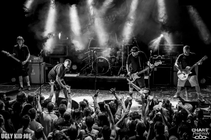 Il semblerait bien que le revival des années 90 ait bien plus de portée que ce à quoi nous aurions pu nous attendre. Une semaine après le concert de LIFE OF AGONY et tandis qu'un certain PROPHETS OF RAGE enflamme la scène du DOWNLOAD FESTIVAL, UGLY KID JOE se voit programmé au Ninkasi Kao de Lyon une semaine avant son passage au Hellfest. La carrière de cette formation californienne a été pour le moins fulgurante. Avec 3 albums entre 1992 et 1996, ces musiciens auront réussi à marquer suffisamment les esprits pour que leur retour en 2010 soit couronné de succès. Il faut dire que UGLY KID JOE aura réussi à nous sortir quelques titres particulièrement intéressants tels que les incontournables « Everything About You » ou « Cats In The Cradle » qui ont donné le ton et fait office de véritables tubes.
