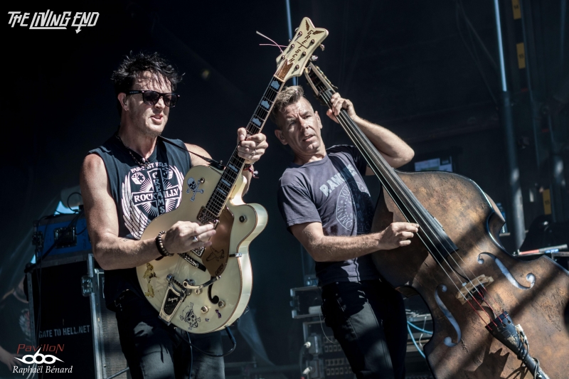Rock'n'Roll !!! Avec Solstafir sans doute une de mes prestations préférées du Download. Il flottait comme un air de "Stray Cats" sur la petite scène Spitfire. Bon à vrai dire même si on ne peut s'empêcher de penser au groupe emblématique de Brian Setzer il y a quand même quelques différences... si nous avons bien droit à la fameuse contre-basse de Scott le jeu de guitare de Chris est sensiblement différent. Le groupe de Melbourne d'ailleurs embrasse non seulement le rockabilly mais également un rock plus moderne et gras. Plus direct devrais-je dire mais toujours avec une sensibilité bluesy dans le jeu. Notre combo ne ménage pas ses efforts et si notre contrebassiste sait s'amuser en jouant l'équilibriste sur un instrument qui a connu des jours meilleurs...bien roots tout ça et diablement jouissif... un air de fraîcheur sur du vieux rock'n'roll c'est un comble ! D'ailleurs si le public n'est pas si nombreux que ça il semble fidèle et connaisseur et indéniablement joyeux de la prestation. Un très bon concert.