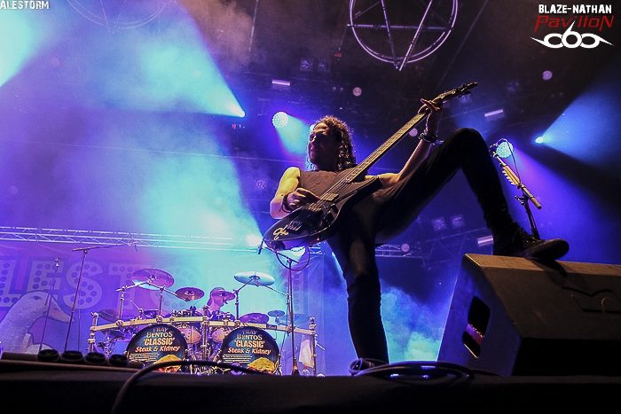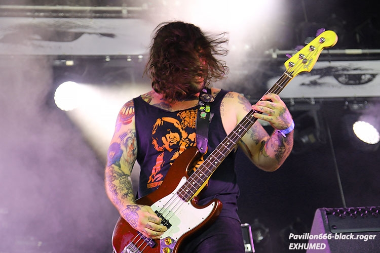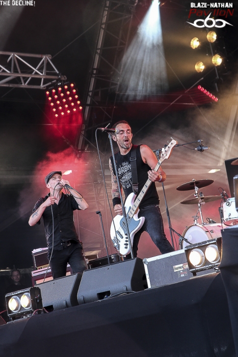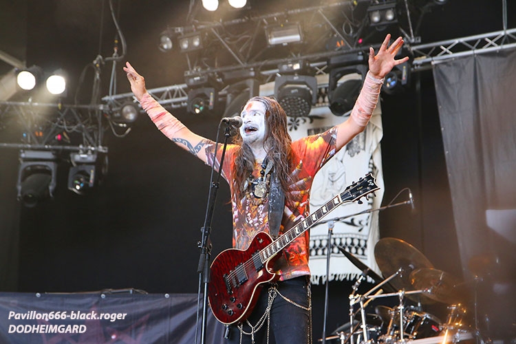 SIDILARSEN Sortis de la zone « tiède », les Toulousains de SIDILARSEN nous surprennent avec leur dernier opus « dancefloorbastards ». Et moi qui avait rangé le groupe dans une boite « boaf », je l’enlève de la poussière et je reçois en pleine poire leur prestation ce Vendredi 16 juin devant la Mainstage 1 du Hellfest. Tout y est enfin, le son, les compositions qui font mouche car riches d’idées et ces tempos version électro qui vous tabassent à 11 le matin. Set excellent tout simplement. THE DECLINE Je débute le vendredi par la Warzone et THE DECLINE, punk-rock breton. Plus rock que punk surtout dans les vocaux le quintette semble prometteur avec un quatrième enregistrement « heroes on emptystreets » bien apprécié par la critique. Belle occasion pour eux de jouer sur une scène du Hellfest, ils le méritent. MYRATH Fan de MYRATH je m’empresse ce vendredi midi de rejoindre la mainstage 1 qui les reçoit. Groupe Tunisien avec à la batterie un français, Morgan Berthet, Myrath nous offre un certain metal oriental progressif qui nous accroche de plus en plus depuis bientôt une dizaine d’années et quatre albums. Entre par exemple Symphony X et Dream Theater, ce groupe a su trouver sa place en introduisant un certain côté mélodique où tout un chacun peut reprendre les paroles. Ce midi devant déjà une foule importante Myrath a su convaincre encore une fois. BOOZE & GLORY Des mainstages à la warzone je traverse le site pour du street-punk avec les britishes de BOOZE & GLORY. En dix ans les Londoniens n’ont pas chômé en terme d’enregistrements et leur petit dernier de 2017 « chapter IV » va nous « péter » à la gueule au repas de midi et des poussières. Cette poussière parlons-en car elle sera présente devant la warzone durant tout le fest, alors les masques de toutes-sortes vont être indispensables. Mais revenons- en à nos keupons de la perfide albion dont la devise est « pas de triomphe, mais la lutte ». Et la lutte sera présente devant les barrières de sécurité avec un drapeau anglais qui surnage sur les flots des punks déchaînés. Booze& Glory attire donc toujours er c’est tant mieux ! BETRAYING THE MARTYRS Sens inverse Warzone-Mainstage 1 pour BETRAYING THE MARTYRS. La bande à Aaron poursuit sa lancée avec un troisième album plus ambiancé métalcore avec plus de mélodie et riffs variés. Mais le lourd reste bien présent également. Alors en live c’est très bon avec un bon son c’est encore mieux, exit la prestation de Lyon dernièrement où le groupe fut désservi justement par le son et les lights. Aujourd’hui sur scène au Hellfest,Betraying the Martyrs nous a comblé, point barre. ANIMALS AS LEADERS Concentrés de part les compositions complexes et techniques qu'ils présentent à une foule garnie, le trio est à son aise sur cet espace surdimensionné pour l'expression scénique proposée. Tosin et Javier, les virtuoses de la guitare, développent des lignes précises et mathématiques. La tenue rythmique assurée par Matt est à l'image de ses compères, soit propre et parfaite. Ce metal instrumental n'est pas des plus simple à appréhender mais il sait se faire captivant et entraînant. Force est de constater que l'assistance présente reste tout au long du set. VALKYRJA Direction la Temple maintenant pour apprécier (ou pas) la prestation de VALKYRJA. Les Suédois vont nous envoyer un black brutal de chez brutal. Ici on ne rigole pas, leur black est donc pur et dur même si par endroits les guitares s’essaient à un soupçon de mélodique pour calmer le jeu. Mais les blasts sont de rigueur et reprennent vite le dessus, c’est infernal, normal nous sommes au Hellfest. Ces Suédois ne se sont donc pas trompés de scène en démolissant la Temple. Ce fut brut, sans grande finesse, mais bordel que ce fut bon pour nous réveiller de la sieste en ce début d’après-midi. EVERGREY Malgré un set appliqué et des compositions accessibles, le challenge n'est pas simple pour les suédois. En effet, le public est convaincu et réceptif mais ce dernier ne se met pas en action. La communion ne se réalise pas entre la scène la fosse. Ce n'est pas faute d'avoir tous les ingrédients pour mettre l'euphorie et la liesse dans l'assistance. Le son est clair, les morceaux dégagent une certaine puissance, la présence scénique est consistante pourtant les spectateurs venus apprécier ce show restent discrets. EXHUMED Les vétérans du death « made in USA » EXHUMED on été « déterrés » afin de venir sur la scène Altar ce vendredi à Clisson. Après 27 années passées à nous égorger, nous dépecer et nous écraser les tympans, les Californiens de San-José ont toujours de quoi satisfaire nos envies de gore-grind-death avec subtilité parfois sur des rythmiques variées pour notre plus grand plaisir. Parfois des envois binaires donnent une touche groovy et rock n’roll à leur metal de la mort qui tue. Loin d’être « has been » ces ricains ont toujours leur place dans le brutal metal et c’est tant mieux. AVATAR La scène dite de Gôteborg en Suède ne produit pas que des groupes de death mélodique. Ainsi AVATAR s’est éloigné de cette scène en faisant preuve d’une certaine originalité de par un chant atypique, une musicalité accessible à beaucoup de monde et un côté théâtral particulier avec tenues et maquillages adéquat. Alors ça roule pour eux et c’est tant mieux, cela vaut le déplacement. TYR Le quartette sait être fédérateur sans tarder. De part des tires efficaces, garnis d'influences folkloriques, puissants et dynamiques, les musiciens embarquent toute la tente sur leur passage. Ce plaisir de fouler les planches, cette présence sur scène, cette intensité savent transpirer vers le public qui sait faire comprendre au groupe combien il apprécie cet instant. QUEENSRYCHE Depuis le départ de Geoff Tate, les membres du groupe ont su rebondir et entamer une seconde partie de carri