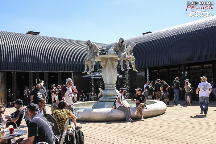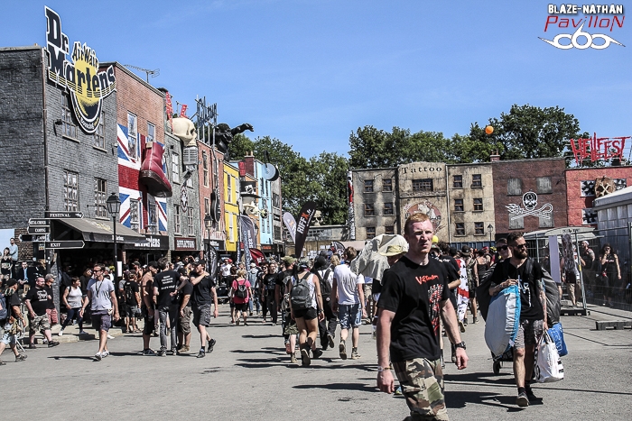 Pour ce premier jour de pèlerinage, nous avons la surprise de découvrir un site à nouveau modifié, plus adapté à l'accueil d'une foule garnie. Nos premiers pas nous permettent de savourer des espaces verts frais et agréables, ces derniers sous les pas des quidams, le soleil et la chaleur étouffante vont vite se réduire à un lit de terre et de poussières. Les espaces aux abords de la main stage ont été agrandis tout comme du coté de la Warzone. Saluons les améliorations et les attentions livrées pour cette douzième édition, car hormis un manque d'ombre, les tentes sont remplies tout au long des trois journées, tout a été mis en oeuvre pour que le public nage dans le bonheur.