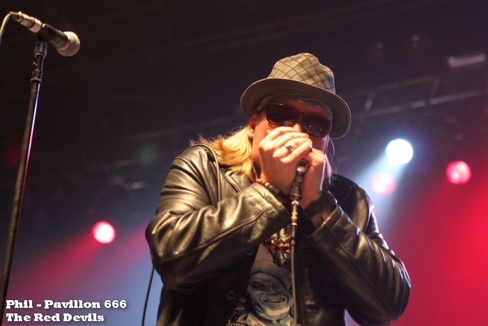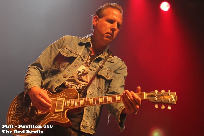 Revenons avant d'aller plus loin vers la formation ayant la tâche d'ouvrir les débats, devant une scène conquise à la cause des barbus. Reformé depuis cinq ans, The Red Devils est un groupe évoluant dans le domaine du blues rock. Les américains ont officié dans le début des années 90's et possèdent un album au compteur. La formation fut éphémère à cet époque puisque en 1994 celle-ci s'arrêtait. Son frontman d'origine étant décédé en après le split du groupe, cette formation réunie tous membres épaulés d'un nouveau vocaliste. L'ensemble tient la route, la musique est attirante restant dans la ligne conductrice, soit le blues. Les membres maitrisent leurs sujets, dévoilent des compositions traditionnelles, propres sans fioritures. Le set est relativement court, malgré la qualité présentée, personne dans l'assistance semble s'en plaindre. Tous attendent les Texans. Il ne faut pas longtemps pour que le show se lance. Avec une scène dépouillée, sans artifices ou pyrotechnies, avec un certain sens de l'humour et une joie confirmée d'être sur les planches, le trio abat les cartes sans frémir, sans temps morts. Que ce soit des titres provenant de la discographie de groupe ou l'un des cinq reprises, ceux ci savent capter l'attention de la salle entière. Il faut reconnaitre que Billy et Dusty possèdent un certain charisme, les deux compères tiennent l'assistance uniquement grâce à leurs instruments. Les deux dégainent des brûlots de manière naturelle sans avoir recours à des gimmicks inutiles, ils n'ont pas besoin de surjouer pour que l'adhésion fonctionne. Quelques pas de danses coutumiers suffisent à combler la fosse et les gradins. Régulièrement Billy communique avec le public, n'hésitant pas à utiliser quelques mots en français. Cette attention confirme la communion établie entre le trio et le public. Dans une atmosphère de liesse, les visages sont illuminés tout au long de la soirée, les pieds trépignent, les voix reprennent les refrains. Le set avance dans le temps, sans que l'on ressente une notion de longueur. Les musiciens conduisent le public vers une évasion durant les dix neuf titres interprétés. Proche de sept décennies, les membres ne font pas montre de leurs ages et assurent dans la sérénité une prestation peu agitée mais d'une grande qualité. Sans tricher, sans être à l'économie, ils savent répondent aux attentes de leurs fans et des amateurs venus pour l'occasion. Venant tous les deux ans sur notre territoire, il serait dommage de les manquer en 2019 tant la prestation est captivante. Remercions l'équipe de GDP pour cette excellente soirée, le management du groupe pour le confort qui nous a été donné en revenant au devant des musiciens pour les trois derniers titres. Un dernier concert mémorable avant les trêve estivale. |