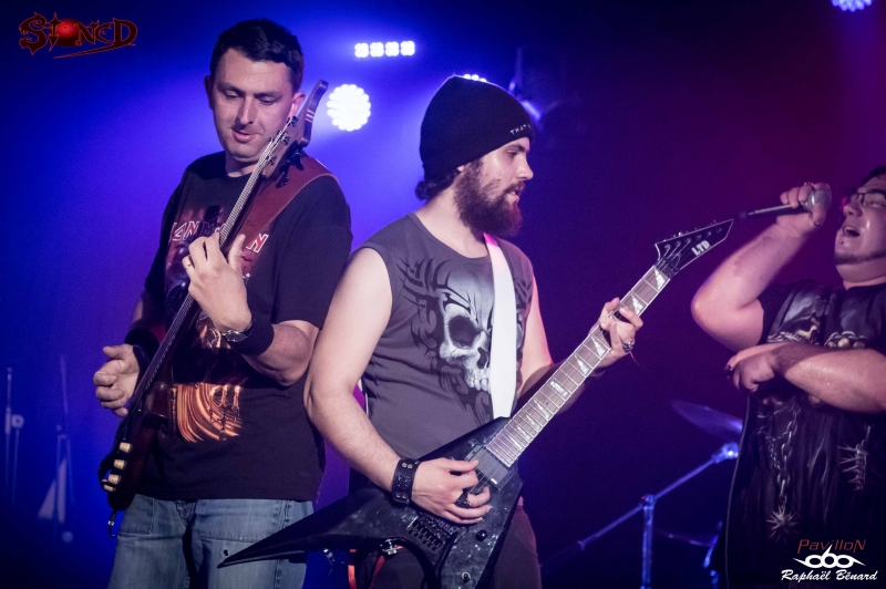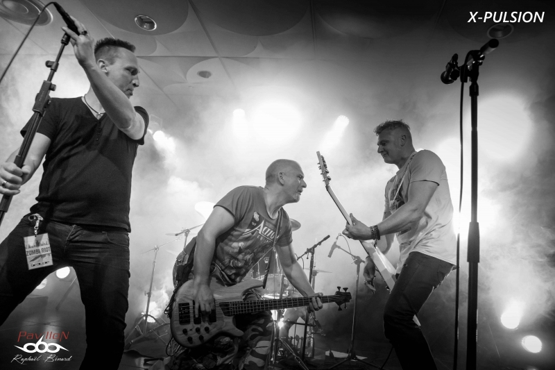 Il y avait trois formations au menu en ce samedi 20 mai 2017 avec une soixantaine de personnes ayant fait le déplacement. Mais commençons tout de suite avec notre premier candidat : STONED Le groupe est assez récent puisque créé courant octobre 2015 à Dreux. J'ai trouvé le set intéressant et varié dans les compositions. Entre Metal Alternatif, Stoner et parfois même des passages un peu tribaux qui m'auront fait penser aux frères Cavalera. Notre jeune formation a déjà quelques concerts à son actif et même si parfois il y a un petit problème de mise en place, il faut bien avouer que l'énergie du combo est communicative. Entre un Steven au chant qui ne ménage pas ses efforts pour mettre l'ambiance, des riffs bien pêchus et une bonne section rythmique le public semblait acquis à leur cause. Le groupe est encore jeune, certes, mais il a déjà un sens de la scène et il sait occuper l'espace. Une agréable surprise donc pour votre serviteur qui aura passé un bon moment. RED FISH MEMORY Notre second groupe a des compositions solides qui alternent entre un rock dur aux sonorités alternatives et des parties plus calmes, introspectives avec des passages aux sons clairs et acoustiques. Notre formation possède une palette suffisamment variée pour plaire à un large public en s'appuyant sur une rythmique efficace et une basse qui sait se faire bien groovy. La partie guitare est directe, efficace avec de bonnes mélodies, le tout servie par une charmante chanteuse à la voix prometteuse qui semble s'être bien intégrée au groupe. Un set intéressant, sans prétention et je pense même que que Red Fish Memory serait gagnant en explorant plus leur côté rock underground et mélodique. X-PULSION Originaire d'Evreux et formé depuis 1995, X-Pulsion va nous offrir un concert de grande qualité. En dehors du fait du plaisir évident qu'ils prennent sur scène ces cinq gars connaissent le job. Les influences diverses et variées des membres du groupe se traduisent par des compositions Punk/Rock sans concessions qui alternent entre prestations festives et joyeuses et des titres plus engagés et revendicatifs, on y trouve même sur un titre des consonances orientales. Tout le monde se donne sans exception entre un Tonio le bassiste intenable, un Mister Idid au chant qui sait taquiner le public. Le duo Grodolphe et Sly se complètent bien dans le jeu. Bref un concert prenant dont la fraîcheur faisait plaisir à voir et à entendre... Voilà donc pour cette soirée qui clôture une saison bien riche musicalement et toujours dans le bon esprit propre à l'association Zombi Riot et ses bénévoles qui répondent toujours présents et dont l'implication ne faiblit pas malgré ce contexte difficile, celui de faire vivre la scène locale et de permettre aux groupes de pouvoir s'exprimer. Je renouvelle donc une fois de plus mes remerciements pour le partenariat avec notre webzine et on se dit à bientôt pour de nouvelles aventures ! |