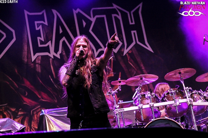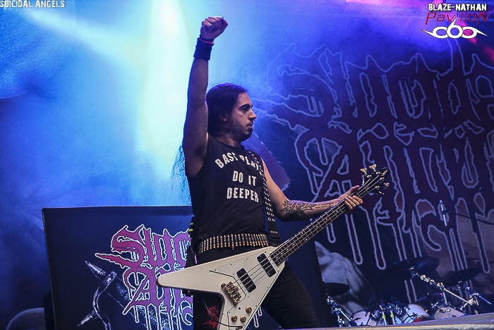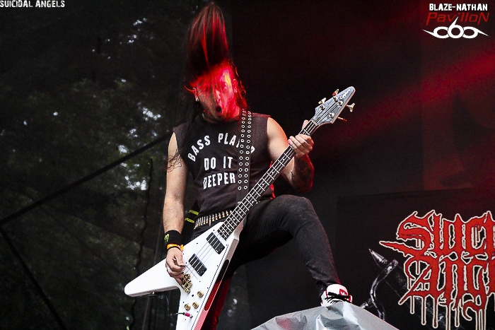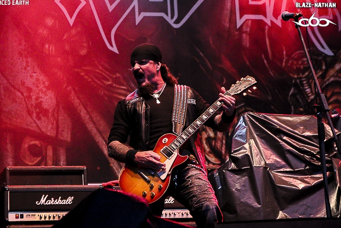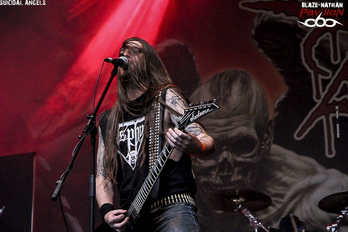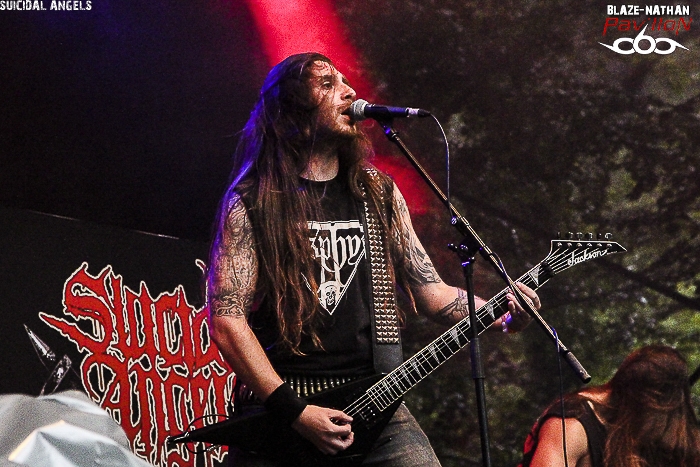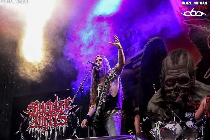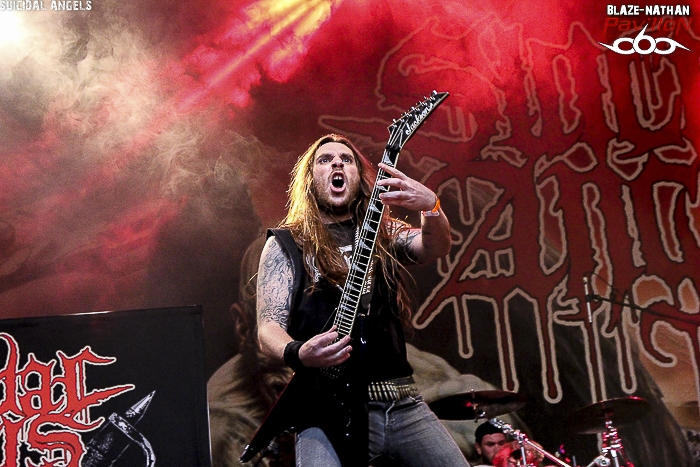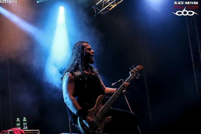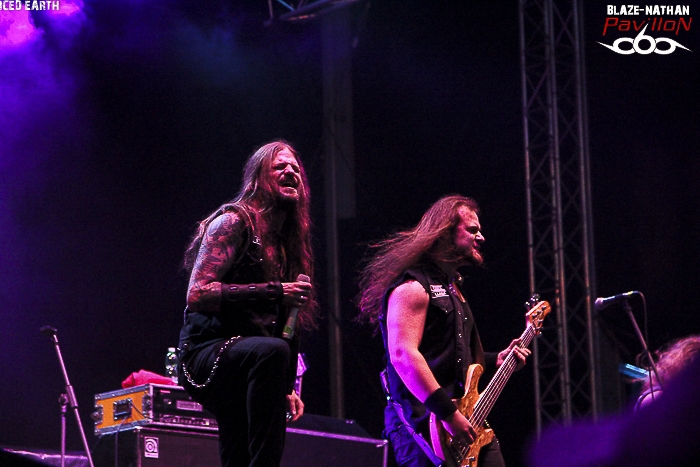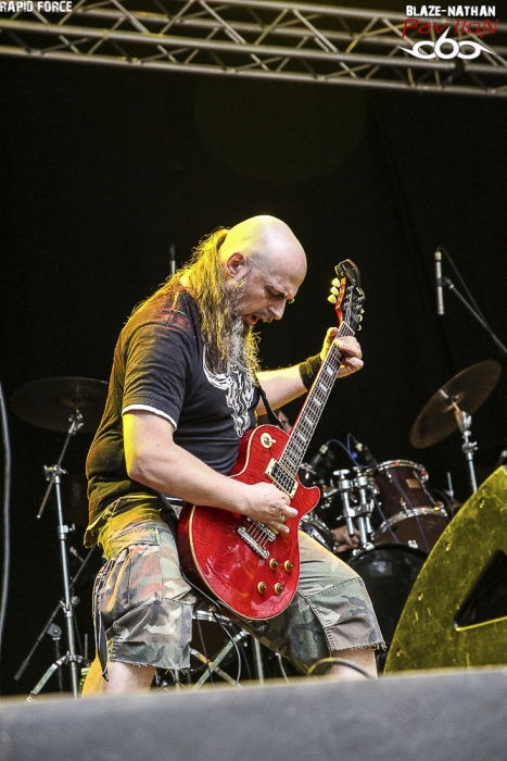 Lundi 24 Juillet tout semblait en place afin de lancer vraiment le festival, sauf que dès le matin ce cette première journée de violents orages se sont abattus sur la région. Du coup la 3ème scène s’est éffondrée et la mainstage a subi l’après-midi des dégats importants. De ce fait le lundi fut marqué par des, annulations de groupes, des reports, et même des transferts sur la seconde scène qui elle, fut épargnée de par sa situation sur le site. Pavillon666 n’a donc pu apprécier que neuf formations du coup. Et puis nous écrivons un petit billet d’humeur à propos du set de Marilyn Manson. Seulement 15 photographes tirés au sort au dernier moment devant l’entrée du pit (rien pour pavillon), un Marilyn Manson qui arrête son show 20 minutes avant la fin… Alors voici chroniques et photos réalisées par blaze-nathan et black.roger de votre webzine préféré. RAPIDFORCE – seconde scène Allez, en ce début d’après-midi nous commençons avec du thrash prodigué par les Serbes de RAPIDFORCE. Ces musiciens ne sont pas des nouveaux venus dans la scène metal (débuts en 1990) mais leurs compositions ne font pas mouche particulièrement. On nous offre du bon thrash, mais sans plus dirons-nous. THE CRAWLING – seconde scène Les Anglais de THE CRAWLING dans un style doom/death prennent place sur la seconde scène du Metaldays entre deux orages. Ce trio de formation assez récente (2014) ne m’a pas convaincu en live alors qu’à l’écoute de leur album d’Avril dernier intitulé « anatomy of cors » » était prometteur. DOOL – seconde scène Je n’avais pas prévu de voir les Bataves de DOOL, mais là j’ai été surpris par leur set. Au menu du dark-rock qui a subjugué le public de par sa présence scénique, la qualité des compositions, le côté psyché et des lights incroyables. Groupe prometteur donc malgré sa jeunesse (2015) et sa petite discographie, premier album sorti cette année (here now, there then) album que je vous recommande fortement. NA CRUITHNE – lemmy stage Après l’annulation de XANDRIA, ce sont les Irlandais de NA CRUITHNE qui à 17 heures investissent la lemmy stage. Leur folk-metal qui nous avait séduit l’an dernier sur la seconde scène prend toute son envergure sur la grande scène. Ce sera une prestation encore meilleure mais qui sera interrompue au bout d’environ trente minutes par un violent orage qui va endommager pour un long moment cette scène (jusqu’à 20 heures 45. La prestation de LOST SOCIETY sera annulée et celle de LOUDNESS reportée sur la seconde scène à 21 heures 30. BEHEADED – seconde scène A 18 heures il n’y a plus que la seconde scène qui fonctionne et peut accueillir les Maltais de BEHEADED. Revêtus d’un poncho avec une piscine dans le pit quelques photographes dont votre serviteur black.roger vont profiter de la prestation musclée des death-métalleux qui ne font pas dans la dentelle et se foutent des intempéries. Par contre le public sera à taille réduite sous le déluge. SUICIDAL ANGELS – seconde scène Les thrashers Grecs SUICIDAL ANGELS, Slayeriens dans l’âme, vont nous offrir une prestation énergique qui va faire rentrer tout le public dans une folle ambiance Thrash rapide et véloce, riffs et soli imparables, nos amis Hélènes ont mis le feu à 19 heures au Metaldays, c’est sans appel. ABSU – seconde scène A 20 heures nous sommes encore devant la seconde scène car il n’y a plus qu’elle qui fonctionne actuellement, heureusement ! Mais de toutes façons je n’aurai pas voulu rater le trio Texan de black-thrash ABSU. Groupe mythique des 90’s, Absu nous abreuve de black écorché et violent, les dérapages thrash ne faisant que renforcer le propos d’une qualité magique. Formation à voir et revoir en live sans modération, c’est du « black-blood » clin d’œil à l’anniversaire du Metaldays. ICED EARTH – lemmy stage La grande scène, maintenant réparée, peut accueillir à 20 heures 45 les vétérans floridiens du heavy-thrash ICED EARTH qui sortent cette année leur douzième album intitulé « incorruptible ». Jon Schaffer, membre fondateur toujours en forme, peut toujours compter sur le chant de Stu Block bien intégré depuis l’année 2011. Iced Earth a délivré un show sans faille ce soir au Metaldays nous sommes tous d’accord. Et malgré de nombreux changements de line-up durant sa carrière Iced Earth n’a pas perdu son fil conducteur et de ce fait draine toute une fan-base depuis des décénies, se payant même le luxe d‘acquérir une foule toujours plus nombreuse à ses concerts, c.q.f.d. LOUDNESS – seconde scène Les vétérans du heavy-metal Nippon LOUDNESS qui ont débuté avec le fameux « birthday eve » en 1981 viennent à nous encore une fois et c’est un plaisir de les revoir ne nous voilons pas la face, ni ne nous bouchons pas les oreilles. Fidèles au metal lourd donc avec outre leurs prestations remarquées et une liste d’enregistrements longue comme le bras, cette formation légendaire formée par le guitariste virtuose Akira Takasaki est toujours très appréciée en live comme ce soir au Metaldays. Succès mérité toujours au rendez-vous donc pour ces Japonais qui défient le temps, on aime. En conclusion nous dirons que ce fut une première journée chaotique donc, mais je pense que chaque festivalier y a trouvé quand même son compte, journée rock n’roll quoi ! |