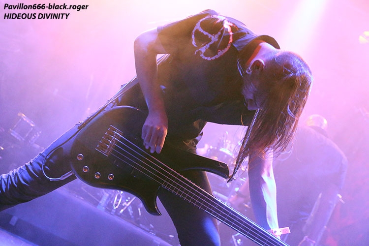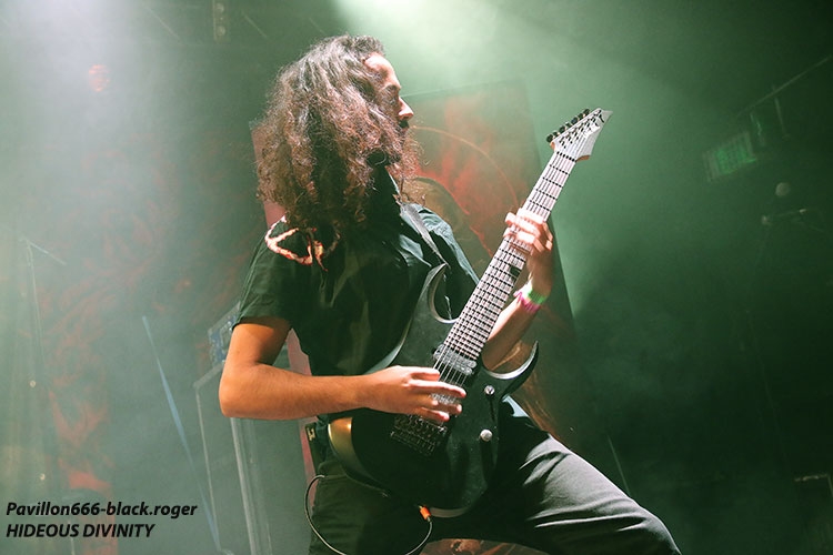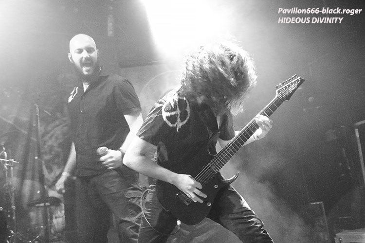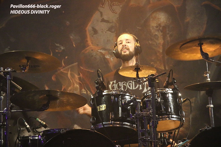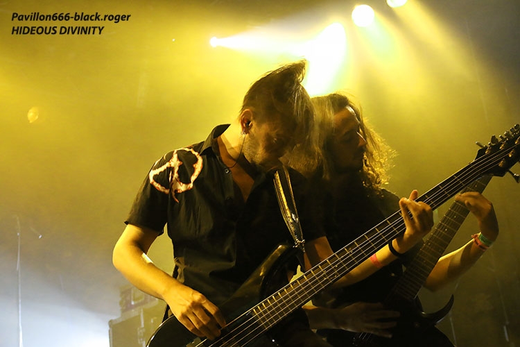 J’étais impatient de revoir nos amis Transalpins d’HIDEOUS DIVINITY découverts lors d’un concert donné à Chambéry, Savoie, l’hiver dernier. Et je ne fus pas déçu du voyage « into death » au contraire ! Ils nous balancent des titres du nouvel opus « advientis » mais pas que. Ici on ne rigole pas et les Romains vont nous prendre à la gorge de façon brutale. Ces Italiens veulent monter sur le podium du métal extrême dans leur pays et ils possèdent ma foi tous les arguments pour y parvenir. Tirs tendus à boulets rougis, riffs vicieux, dissonances à la Behemoth, le char d’assaut est en route. Ajoutez à cela une présence incroyable sur les planches et vous obtenez un groupe qui a tout comprit au film du brutal death sans concession, une tuerie, aargh !