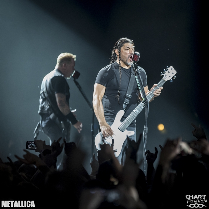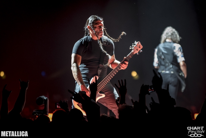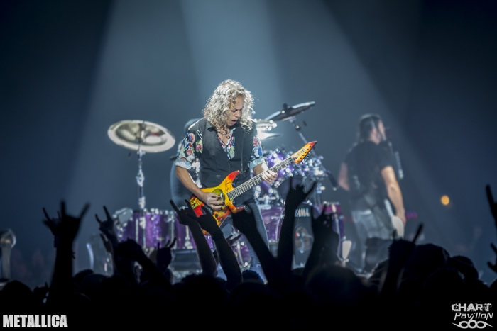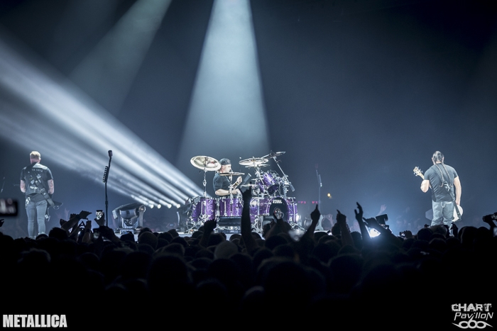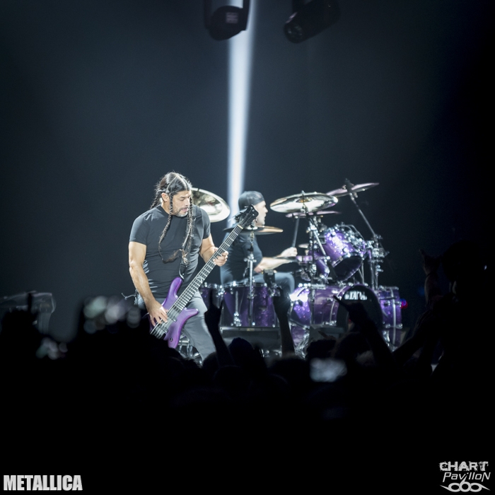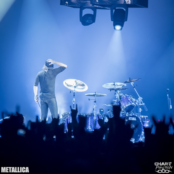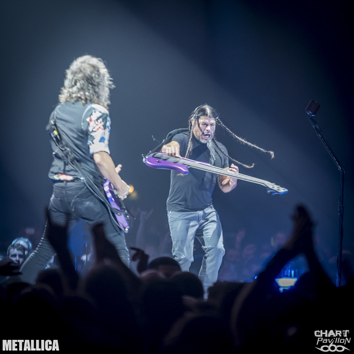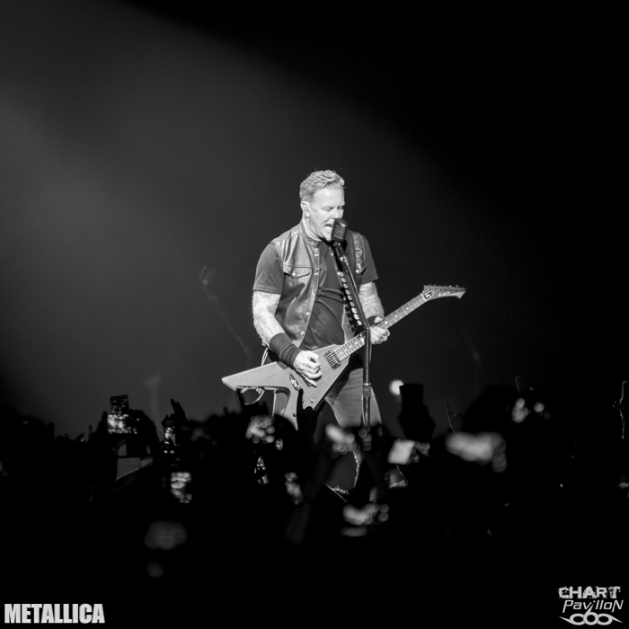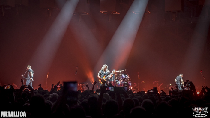 Si habituellement, nous avons l'habitude et le devoir au sein de Pavillon 666 de chroniquer les groupes de première partie, ce ne sera pas le cas dans cette chronique. Pourquoi ? Tout simplement parce que je n'ai pas pu accéder à la salle avant le show de METALLICA et ce pour une raison totalement hors de mon contrôle. Il faut savoir qu'être accrédité pour un concert de METALLICA en tant que photographe n'est pas forcément de tout repos. Si pour certains il s'agit du Graal, de mon point de vue, on est loin de la simplicité habituelle. Pas d'accès donc à la salle sans une bonne garde quelques minutes avant le début du show pour se voir placés à quelques dizaines de mètres de la scène, impossible de voir leurs visages ! Et encore, j'ai eu de la chance car il s'en fallut de peu pour que l'on soit gentiment reconduit à la sortie après les trois habituels premiers morceaux et ce report a failli ne pas exister mais bon, sur ce dernier point, je suis à peu près sûr que tout le monde s'en fout ! Mais non, de manière gracieuse, nous avons pu être autorisés à assister à la suite de la prestation de manière exceptionnelle. Profitez donc de ce report et savourez le car il revient de loin ! METALLICA est donc actuellement en pleine tournée pour la promotion de « Hardwired... To Self Destruct ». Nous ne reviendrons pas sur ce disque, tout a été dit et épluché dans les moindres détails. Comme pour chaque album du plus important groupe de metal du monde à l'heure actuel, on a toutes les opinions, souvent peu objectives, toujours très passionnées. On en oublierait presque qu'il s'agit de 4 gars qui font de la musique depuis plus de 35 ans tant les passions se déchaînent à chaque fois. La critique est facile tant la cible est énorme. Mais il y a une chose qu'il faut admettre, c'est que METALLICA fait absolument ce qu'il veut, comme qu'il veut, avec une très grande liberté et c'est ce qui lui va le mieux. En tout cas, c'est comme ça et pour ça que j'aime ce groupe. Il avance comme un dinosaure, implacable et détruisant tout sur son passage. C'est l'un des seuls groupes de sa génération à avoir rempli les salles en continu dans sa carrière sans jamais n'avoir rien perdu de sa fougue. Logique donc de voir à nouveau cette salle remplie à ras bord et déchaînée lorsque résonnent les coups de canon qui introduisent le très émouvant « The Ecstasy of Gold » d'Ennio MORRICONE. Ce titre sert d'introduction aux concerts de METALLICA depuis des lustres. Toujours le même effet frissonnant que cette introduction reprise en chœur ! Et c'est parti pour la deuxième introduction, celle conçue spécialement pour cette tournée durant laquelle on découvre les images de la cover de l'album projetées sur les écrans au dessus de la scène. METALLICA prend alors d'assaut la scène avec le très efficace « Hardwired » suivi du non moins efficace « Atlas, Rise ! ». Deux nouveaux morceaux pour commencer, quoi de plus normal me direz vous ? Peut-être mais ça fait du bien si on considère que le groupe n'a pas cessé les concerts depuis 2010, des nouveaux titres, c'est pour le moins rafraîchissant. Mais histoire de mettre tout le monde d'accord et surtout à terre, METALLICA nous balance en pleine figure un bon vieux « Seek & Destroy ». Bien vu dans le genre on mélange le nouveau et l'ancien avec le constat évident que les deux font la paire. Le groupe aime aussi surprendre, donner à son public quelques pépites et des morceaux joués plus rarement. Cela faisait depuis 2013 que METALLICA n'avait pas interprété « Of Wolf And Man » sur scène et la voici donc ce soir jouée à Lyon pour le plus grand plaisir des fans du « Black Album ». On enchaîne ensuite avec le plus classique « Welcome Home (Sanitarium) » suivi de « Now That We're Dead ». Ce nouveau morceau est basé sur une certaine forme de lourdeur qui ne va pas sans rappeler le très mal estimé « Load ». METALLICA prend la peine de l'allonger en live avec une petite « improvisation » avec tout le monde derrière une percussion. Ce serait plutôt du côté d'un SEPULTURA ou d'un SOULFLY que l'on s'attendrait à voir ça. Mais le morceau s'y prête particulièrement bien et l'effet est tout à fait réussi. Puis c'est au tour de « Confusion » de venir faire ses preuves en live. Un peu moins percutant que son prédécesseur, ce titre passe toutefois le test même si un autre titre du disque aurait peut-être mieux fait l'affaire. On l'oublie tout de même assez vite avec l'enchaînement « For Whom The Bell Tolls » et « Halo On Fire ». S'ensuit une petite session de jam entre Kirk HAMMETT et Robert TRUJILLO qui nous font le plaisir de reprendre « Antisocial » de TRUST que la Halle chante en chœur. Puis dans la série des hommages qui vous procurent de vives émotions, Robert TRUJILLO nous fait l'honneur d'interpréter « (Anesthesia) Pulling Teeth » originellement composé et interprété par le tant regretté Cliff BURTON. On remarque d'ailleurs les images du défunt bassiste sur les écrans. C'est sans doute la meilleure façon de rendre hommage à cet homme qui fut un monstre de talent et sans qui METALLICA n'en serait sans doute pas là aujourd'hui. Jason NEWSTED était un personnage essentiel à une époque pour le groupe afin de lui permettre de tourner la page, de faire son deuil. Robert TRUJILLO est le bassiste qu'il fallait à METALLICA pour définitivement accepter cette disparition et reprendre les choses là où elles s'étaient arrêtées avec « ...And Justice For All » ou le « Garage Days » puisque c'est de ça qu'il est question avec cette reprise des MISFITS, « Die, Die My Darling » elle aussi pas non interprétée en live par le combo depuis Juillet 2012. Un autre classique vient lui succéder, « The Memory Remains » qui en concert prend une dimension extraordinaire. Pas encore un classique mais cela viendra, on compte sur « Moth Into Flame » pour garde