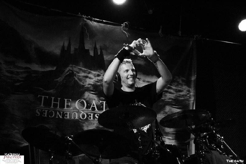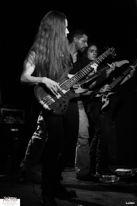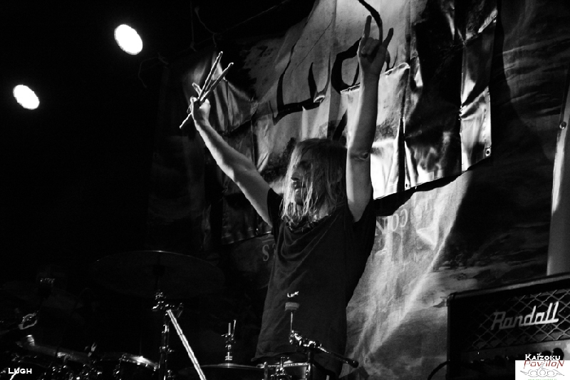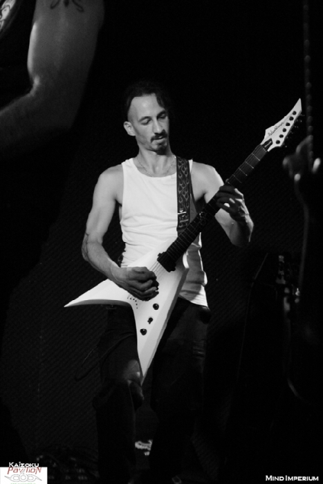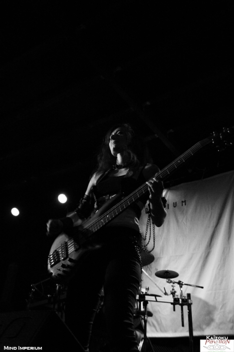 Mind Imperium (My Imperium jusqu'à il y a quelques jours) monte sur scène et lance la soirée devant un public peu nombreux et encore timide. Le quatuor aux yeux blancs formé en 2012 a connu pas mal de changements de line-up mais semble avoir trouvé un équilibre et nous propose pour leur second concert dans cette configuration un death propre et groovy. Le charisme de Nogh au chant et la puissance et la maîtrise de Julie à la batterie assurent la présence sur scène malgré quelques petits moments de flottement. En même temps, en plus de l'équilibre récent du groupe et de quelques gros ennuis techniques juste avant de monter sur scène, il faut dire que ce n'est jamais évident de lancer une soirée devant un public qui arrive tout juste et qui n'est pas encore échauffé. On reste du coup un chouia sur notre faim, souhaitant juste que chacun soit moins sur la retenue pour que l'ensemble soit parfait, parce qu'il y a de supers idées, un univers entre Moonspell et Sepultura bien travaillé et une complicité entre les membres qui est palpable. Petite parenthèse de batteuse, ça fait super plaisir de voir une représentante de la gente féminine (très féminine qui plus est) derrière les fûts là où on s'attend dans les clichés à voir un grand costaud chevelu. Comme quoi, encore une fois, le rock est le métal ne sont pas qu'affaires de couilles^^ Bref Mind Imperium reste pour moi une très bonne découverte, un groupe à excellent potentiel et j'ai hâte de les revoir sur scène! C'est le moment de la première bière entre deux groupes, et forcément quand on retrouve des copains, ça dure un peu, au point où j'ai loupé les quelques premières minutes de l'étonnant groupe Lugh. Je ne les avais jamais entendu et je m'attendais à tout sauf à prendre ma claque de l'année! En entrant dans la salle j'entends une voix..d'où vient-elle?..de la scène..oui, c'est le chanteur qui..parle..qui ne parle pas, qui nous invite..une invitation à entrer dans Les Loges de la Folie (titre de l'album), à passer les portes d'un hôpital psychiatrique. Cela m'interpelle quelque peu, intriguée je m'approche.. et je sens mon corps frissonner, comme envahie par cette voix, tantôt douce et parlée, tantôt profonde et chantée, tantôt en français, tantôt en anglais, tantôt des rires de folie, tantôt des hurlements qui sortent des tréfonds de l'âme, comme une déchirure de l'inconscient. Ayant bossé en milieu psychiatrique lourd, j'arrive à palper cette ambiance trop connue pour moi à travers le jeu de l'acteur/chanteur Lambert Dewarumez qui retranscrit à la perfection ces facettes innombrables qui se cachent sous le mot "folie". Cet univers de chaos, de mort, de confusion, d'hallucinations, de questionnements que l'on retrouve dans les pathologies telles que la schizophrénie et les psychoses en général est présent tout au long de ce set. Des solos de guitares bien sombres et bien élaborés (malgré la présence quelque peu en retrait des deux guitaristes Sébastien Vallée et Guillaume Comby), la basse bien présente, dont Manon Fortin maîtrise parfaitement la lourdeur et la légerté selon l'ambiance voulue, et la batterie sombre et énergique de Cyril Broult, toute la musicalité inspirée d’influences diverses allant du heavy au gothic en passant par le prog, le rock ou le death mélodique transpire le malsain. Le groupe a bien choisi son nom, inspiré de Lug Samildanach, le Dieu aux multiples arts, il est déroutant, envoûtant, surprenant et d'une grande richesse. Le travail paye, et Lugh a sué pour nous offrir ce premier album qu'ils nous présentaient ce soir-là, ça se sent. C'est devant un public immobile mais chaleureux, qui boit ces paroles travaillées et se prend cet univers en pleine gueule que Lugh s'assure de laisser son empreinte. A la fin de ce voyage qui exorcise les profondeurs noires de l’âme humaine, une question pertinente posée par le chanteur entre deux chansons subsiste: "Entre nous et les fous, lesquels sont les plus fous?" N'ayez pas peur de la réponse et venez les voir en concert, écoutez leur album et rencontrez les, vous découvrirez que les plus belles choses se cachent parfois dans les plus terrifiantes! Après ce coup de cœur difficile de me lancer dans la dernière partie de la soirée mais l'énergie The Oath sur scène va m'y aider! Ça y est, le public est chaud, a besoin d'extérioriser tout ce qu'il vient de vivre avant et a envie de tout donner. Et les 4 garçons ont l'habitude de le faire bouger ce public. Les papas de la soirée tournent depuis 1999 et ont l'habitude de la scène qu'ils partagent régulièrement avec des groupes tels qu'Enslaved, Punish Yourself, Benighted etc Ils aiment ça et ça se voit. Leur musique à la frontière du black, du death, du thrash et du heavy-metal est efficace, ça groove, c'est énergique, c'est bon, c'est pas fin mais ça s'mange sans fin! Le public n'est pas nombreux mais il est déchaîné, circles pit et wall of death (ou "muret of death") vu le nombre de personnes dans la salle) se multiplient devant la scène où The Oath, campé en position de combat envoie le pâté à coups de hurlements, et de double-pédale en renfort. Avec la carrière qu'ils ont derrière eux, pas un dérapage, ça file droit jusqu'à la fin! On fini cette soirée qui avait commencé doucement avec un bon mal de nuque, les oreilles ravies et un verre de bière à la main, bref une bonne soirée métal, riche et toujours aussi agréable dans un lieu tel que le Warmaudio. Merci à eux pour leur accueil toujours aussi sympa, merci à Mind Imperium, Lugh et The Oath pour leur gentillesse dans les discussions après le concert et surtout pour ce chouette moment qui annoncent une très belle année! Pour revoir The Oath, rdv le 14 décembre au Blogg avec Noctem et Aeon Patronist, Lugh jouera le 27 octobre à l'Hôtel de la Musique et Mind Imperium nous a offert un concert au top ce jeudi au Blogg en com