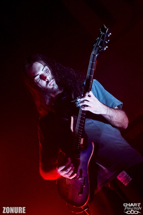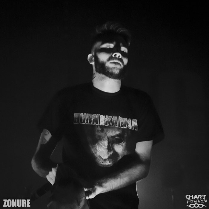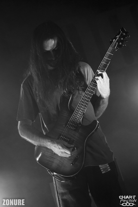 Ce sont les locaux de ZONURE qui ouvrent cette soirée. L'intérêt de telles affiches est bien évidemment de vous faire découvrir quelques groupes que vous ne verrez pas forcément dans ce type de salle. ZONURE est un habitué des scènes plus petites, le plus souvent dans le circuit underground de la ville. Tout le monde y gagne donc à ce que la SMAC s'ouvre au métal. Cela fait bien des années que la ville tient entre ses murs quelques bons groupes qui ne demandent qu'à jouer sur de plus grandes scènes. Il semblerait bien que les choses aient évolué dans le bons sens avec du temps, de la patience et de l'acharnement. ZONURE nous présente donc un show assez travaillé avec certes un manque de lumière mais ça, on a l'habitude avec les premières parties. Le son est en revanche assez bon. Pour le style et l’exécution, c'est du côté du post core qu'il faut aller chercher ses références. Son gras, accordage et double chant sont les éléments qui font de ce groupe ce qu'il est. Niveau énergie, on est là aussi. On sent que le groupe a usé les scènes des bars avant d'en arriver là. Encore une fois, une opportunité méritée pour eux que de jouer sur cette grande scène.