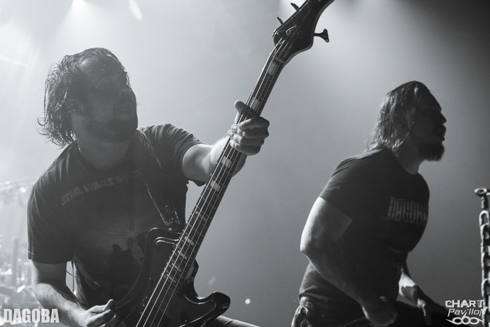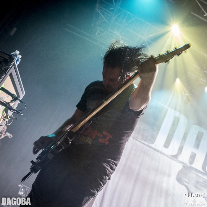 Si certains peinent à grimper sur les grandes scènes, d'autres les écument sans relâche. Depuis quelque temps DAGOBA est très présent dans le circuit. On ne va pas s'en plaindre. Le groupe vient tout juste de nous livrer un nouvel album, « Black Nova » que le voilà déjà sur une nouvelle tournée en compagnie de ULTRA VOMIT. Il est aussi intéressant de noter cette affiche 100% française capable de remplir les SMAC et pas dans les petites mais bien dans les grandes salles. Les choses changent dans le milieu du metal. Même TELERAMA se met à publier des articles sur le style. Là encore il aura fallu du temps mais tout fini par arriver. Et DAGOBA sur scène me direz vous ? Et bien comme à son habitude le groupe se fait dévastateur. Emmené par Shawter et Werther Ytier depuis des années, le groupe tient toujours autant la forme. Le public est forcément à 100% réceptif avec une telle énergie déployée sur scène. La cohésion entre ses membres est remarquable. Elle s'est faite sur cette dernière année à force de concerts. L'enregistrement de nouveaux titres a forcément apporté sa pierre à l'édifice et rapproché ses membres. Cela commence à se ressentir franchement sur scène. Pour avoir assister à deux concerts précédents du groupe sur une année complète, le constat m’apparaît évident, DAGOBA a de belles heures devant lui.