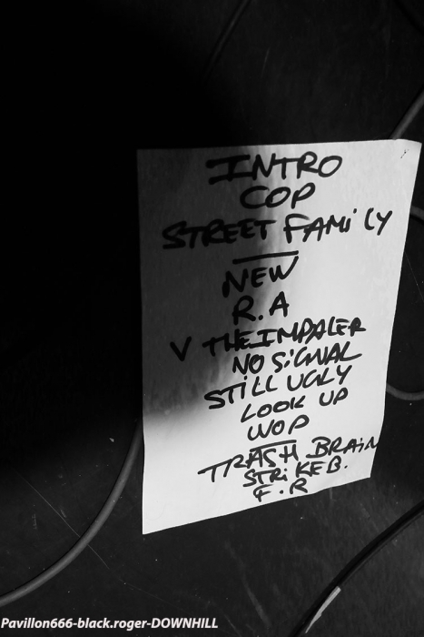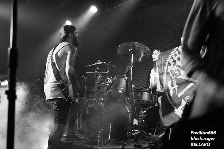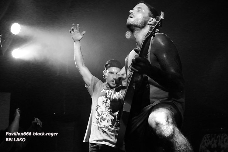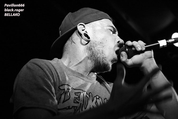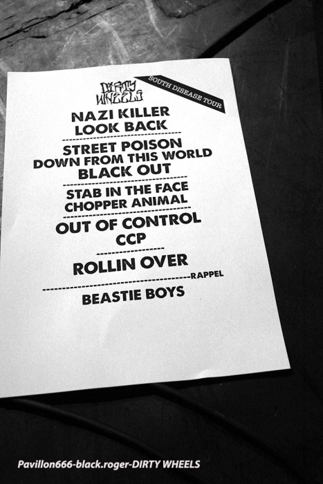 Violente tout simplement la prestation des DEAD KIWIS qui démarre à fond les cactus dès 19heures quarante -cinq et des poussières ! Le frontman ne tient pas en place et va d’entrée de jeu se lancer dans le pit en n’oubliant pas de se rouler par terre comme le faisaient dans les années 60 les groupes de rock de l’époque. Mais là nous sommes en 2017 et le groupe fait hurler les guitares, le duo basse-batterie nous détruisant ce qu’il nous reste de neurones. Trente minutes de set c’est peu mais suffisant pour nous en mettre plein la face et les conduits auditifs. Car ici messieurs, ça joue, ça joue même très bien et les groupes suivants vont devoir relever le défi car la barre est déjà placée bien haute. Bravo les mecs vous revenez quand vous voulez. Set-list en photo. Mais les suivants, en l’occurrence les Ibères de BELLAKO ne sont pas nés de la dernière pluie hardcore et vont nous le démontrer ici tout de suite devant un public médusé par tant d’énergie. Ils tournent actuellement en Europe afin de nous présenter leur dernier LP « exctinction », mais pas que. Première date de cette tournée à Lyon-Décines ce soir et ça va faire mal, très mal. Si leurs débuts punk sont toujours ressentis dans l’urgence, le côté hardcore-metal puissant ravage tout sur son passage, inutile de résister ces Espagnols ont l’assurance des anciens et le punch des nouveaux couteaux du style. Résultat une excellente prestation ce soir il n’y a pas photo. Set-list en photo Passons maintenant au hardcore-punk made in Marseille avec DOWNHILL, formation qui n’est pas sans rappeler la scène New-York-Hardcore. Eux aussi nous proposent du nouveau avec leur nouvel EP « ST » sorti fin juillet dernier. Les Marseillais nous offrent donc un hardcore plombé mais aussi véloce dans une veine « classique » nous allons dire qui convient parfaitement au public de ce soir. Pas de prise de tête, du costaud qui fait mouche, nous n’en attendions pas moins de la part de ce combo qui a assuré dans tous les sens du terme, merci ! Set-list en photo DIRTY WHEELS, seconde formation Marseillaise de la soirée, va nous rentrer dans le « lard » sans tarder à l’aide d’un hardcore crossover rassemblant toutes influences metal et core afin de nous offrir une prestation imparable d’efficacité ce soir. Leur set-list va reprendre en intégralité les titres du nouvel enregistrement de 2017 intitulé « street poison », de « nazi killer » à « rollin over » en passant par « stals in the face » et « out of control », titres aux noms évocateurs. Nous bénéficierons d un rappel naturellement pour ces « coreux » du Sud de la France qui se placent maintenant dans le « top ten » du style, on adhère donc parfaitement à leur prestation mouvementée qui a vu nombre de lyonnais sur scène avec eux. Que du bon donc, on aime. Set-list en photo Bien belle soirée hardcore au « Warm » malgré un certain manque de public (mais où sont les coreux ?), la qualité a compensé la quantité, et l’ambiance fut tout de même au rendez-vous, merci le filles et les gars. Merci bien sûr à Quentin Waslet pour avoir organisé cette petite « sauterie » du jeudi soir bien appréciée, et merci aux groupes pour leurs prestations de pure énergie. |