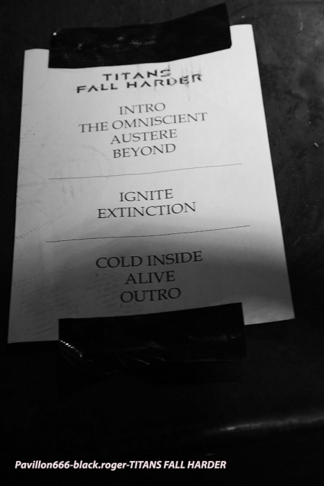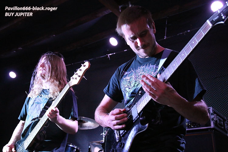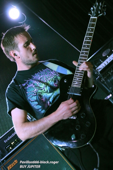Depuis quelques années déjà notre scène régionale Rhône-Alpine deviens de plus en plus riche dans la paysage metal national c’est un fait, alors ce soir ces trois formations en devenir nous ont donné un excellent échantillon de leur savoir- faire, concert incontournable donc qu’il ne fallait pas manquer, ce qui fut fait, alors ambiance, lâchez les décibels ! Jeune groupe prometteur, les grenoblois de TITANS FALL HARDER se lancent dans une prestation musclée et énergique dès 20 heures devant un public déjà bien présent qui découvre un quintette qui en veut et qui a -t-il les moyens de nous interpeller grave, à l’aide d’un certain djent/deathcore direct « in your face ». Forts d’un premier EP « evolve » paru en janvier dernier, ces (très) jeunes loups du metal ont les moyens de faire parler la poudre en live avec, outre des tricotages guitaristiques travaillés, la présence de pour un fond d’écran particulier. Vocaux arrachés, tempi aventureux complètent leurs mesures pour un rendu scénique remarquable et remarqué dans un set sans compromis. Groupe à suivre et à soutenir vous l’aurez compris. Set-list en photo. NONSENSE quant à lui nous propose un set plus prog tout en rentrant dans une dimension polyrythmique et alambiquée où les contretemps font souvent loi. Ces lyonnais ont déjà de la « bouteille » dans ce style appelé maintenant « djent », style initié notamment par Textures et les immenses Meshuggah., et vont nous le démontrer illico. Nonsense aime la liberté, ne se cantonne pas dans une niche purement metallique. Nonsense travaille ses envolées parfois mélodiques, parfois agressives sur des vocaux à rapprocher du thrash-death à l’occasion mais pas que. Au menu offert par ces « gones » des compositions assez longues qui permettent à la formation de nous rassasier de sons recherchés mais jamais ennuyeux pour un déluge post-quelque-chose, un metal moderne dépoussiéré en quelque-sorte qui vous prend aux tripes dans des soli infernaux. Bref Nonsense a encore de beaux jours devant lui témoin cette prestation qui nous a laissé bouche bée mais avec des fourmis dans les membres. Set-list en photo. Il est maintenant 22 heures, l’heure pour BUY JUPITER de monter sur le « ring ». Et la pression monte encore d’un cran avec un public déjà bien échauffé par le groupe précédent et pressé d’en découdre. Ici pas de « space-rock » proprement dit mais un metal/prog qui s’en inspire. Après leur premier EP « departure », voici donc la sortie d’un second intitulé « crossworlds », ces deux EPs qui doivent faire partie d’une trilogie seront proposé en live intégral ce soir au travers de compositions brutales et violentes et qui lorgnent bien souvent vers le djent aux rythmiques saccadées et imparables, une efficacité monstrueuse de chaque instant. Inutile de vous dire qu’avec la présence d’un frontman incroyablement véloce le public va s’agiter dans tous les sens jusqu’à se lance dans un gros « wall of death » sans retenue aucune et transporte le chanteur dans le Warm. Buy Jupiter en live c’est un ouragan qui ravage tout sur son passage tout en vous laissant respirer à certains endroits à l’aide de déviances mélodiques insoupçonnées. Bref, Buy Jupiter vous titille les neurones tout en vous défonçant les cervicales de manière…académique. Vous ne voyez pas ? Alors ne manquez pas leurs prochaines prestations vous deviendrez vite des inconditionnels de cette formation, ma foi, très talentueuse. Dans la chaleur de notre salle de Décines, le public semblait content, ravi et même plus d’avoir participé à ce petit bal rock’ n’roll du samedi soir et on le comprend. Merci aux trois formations pour leur énergie communicative et merci bien entendu aux organisateurs (Buy Jupiter), sans oublier de remercier notre Warmaudio incontournable. |