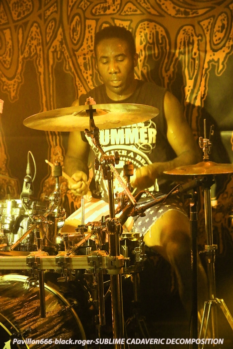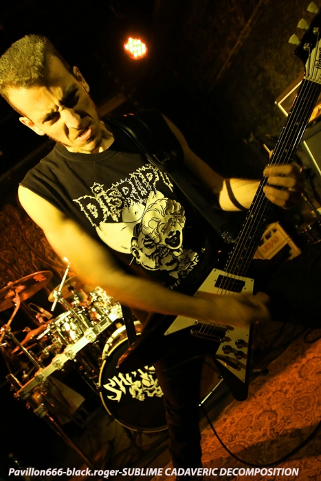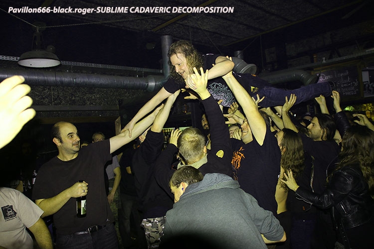 Allez, il faut bien commencer devant un public impatient qui est dans les « starting-blocks ». Alors ce sont les Jurassiens d’OBSESSION qui s’y collent. Un air de soirée agitée était dans l’air ce soir au Brin de Zinc, pourtant Obsession ne s’attendait pas à un accueil aussi chaleureux pour sa prestation. Et ce fut déjà un avant-goût de l’enfer métallique qui s’annonçait. A leur service un son à décorner un troupeau de buffles en rut, des lights percutants, des compositions et reprises qui font mouche et une présence indiscutable en live ont fait le reste. A savoir une ambiance déjà mouvementée qui ira crescendo tout au long de cette nuit en terres Savoyardes. Obsession en a surpris plus d’un ce soir et s’est surprit lui-même par tant de hardiesse motivante provoquée par une ambiance de « ouf ». Guitares en avant avec tricotages remarquables, rythmique implacable et frontman en pleine possession de ses moyens ont trenscendé la prestation heavy-thrash musclée de ceux de Lons-le-Saunier, on n’en revient toujours pas. Sûr que leur album « century of decadence » fera un malheur dans vos salons lors de sa sortie officielle le 16 Décembre prochain « at-home ». Set-list en photo. La salle est blindée maintenant et nombreux sont ceux qui se pressent devant la scène afin d’en découdre avec la prestation de ceux de la « hiaute » les death-thrasheux de SHAYTAN. Le set commence donc avec une agitation peu commune dans la salle et le groupe sent bien vite qu’il va falloir se dépasser car la demande est là, forte et urgente. Et Shaytan se déchaîne alors pour un set de toute beauté et incroyablement vivant ça fait plaisir à voir et à entendre. Et puis, et puis tout se mélange entre scène et public dans la joie, la sueur et une agitation hors-contrôle, c’est le défoulement innatendu. Première fois que je vois les métalleux Annéciens presque dépassés par les événements. Mais le groupe assure et a de la ressource pensez-donc ! Du coup les titres prennent une autre dimension, si si, c’est vraiment incroyable ce soir avec ce public de folie, poussez-donc les murs du Brin de Zinc car il va imploser ! Merci Shaytan tout est maintenant prêt pour accueillir la tête d’affiche, l’ambiance déjantée est là bien installée, happy birthday D’jé ! Set-list en photo. Ramassez vos godasses et vos portables jonchant le sol car maintenant, c’est au tour des Parisiens SUBLIME CADAVERIC DECOMPOSITION de venir vous réduire la matière grise en mayonnaise, je ne vous fait pas un dessin. Avec son nouveau « méfait » sous le bras intitulé « raping angels in hell », SCD ne va pas faire dans la demi-mesure ce soir, âmes sensibles s’abstenir, l’ouragan installé dans un brin de Zinc en fusion va se transformer en tsunami et la vague du public va venir s’écraser régulièrement contre la scène des lieux. Et puis tout va partir en live avec même un « wall of death » peu habituel dans cet endroit, incroyable ! Il faut dire que ce trio de grindcore n’est pas né de la dernière pluie extrême et sait nous bousculer l’esprit à l’aide de compositions farouchement déjantées et implacables en live. Voici donc des instruments sur-boostés, une voix de goret et le tour est joué, inutile de résister le son puissant est là pour contribuer à vous déboiter les nuques, alors ion suit le mouvement, on suit les slams même celui du frontman et on se rejoint sur scène dans la chaleur du grind, la bonne humeur communicative, une boisson houblonnée à la main, que demander de plus, un must vous-dis-je ! Tout a été dit (ou presque) dans cette petite chronique d’une nuit dérangée et agitée comme on aime. Merci aux organisateurs, merci aux musiciens et merci au public bien entendu, on recommence quand ? |