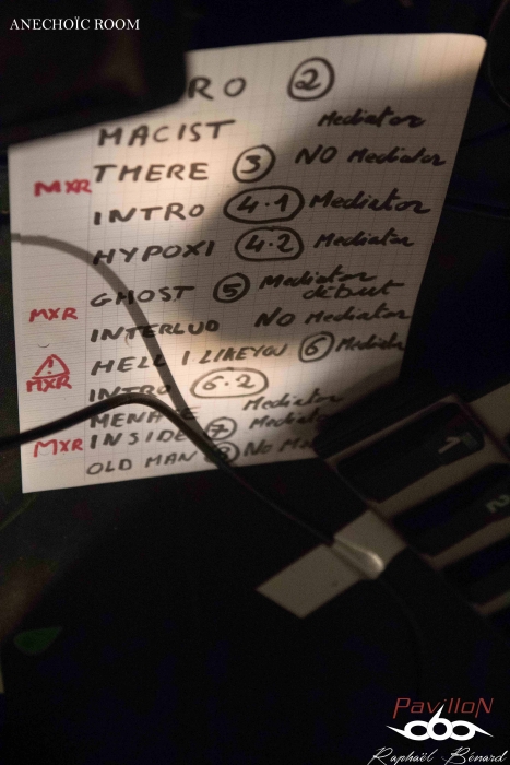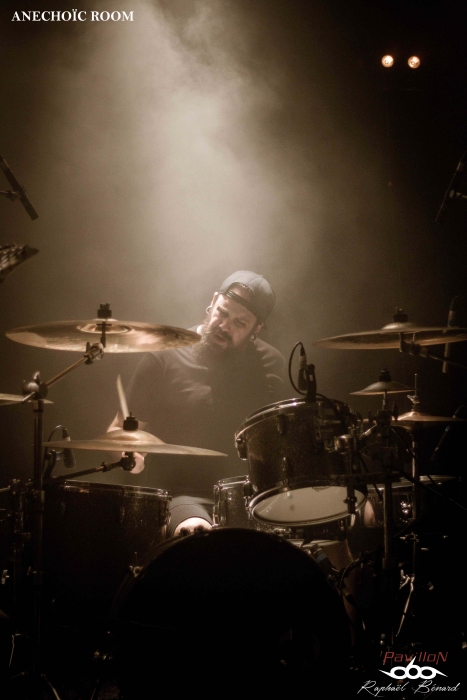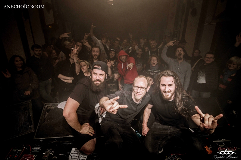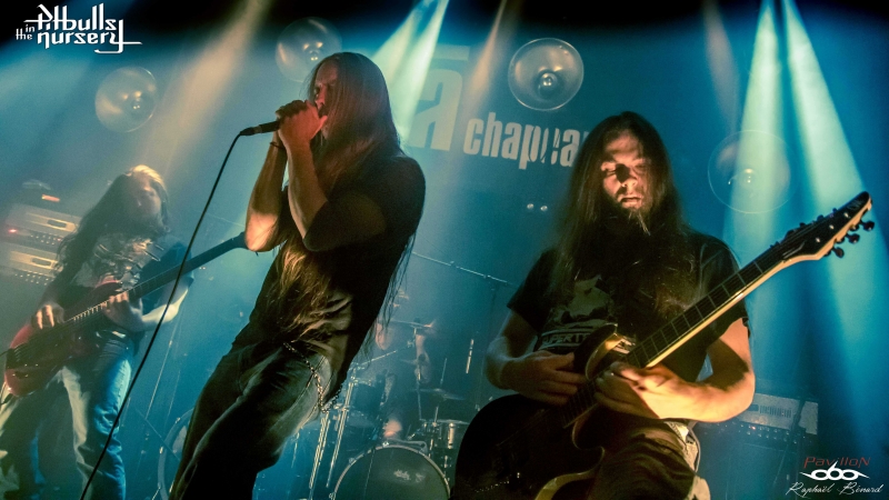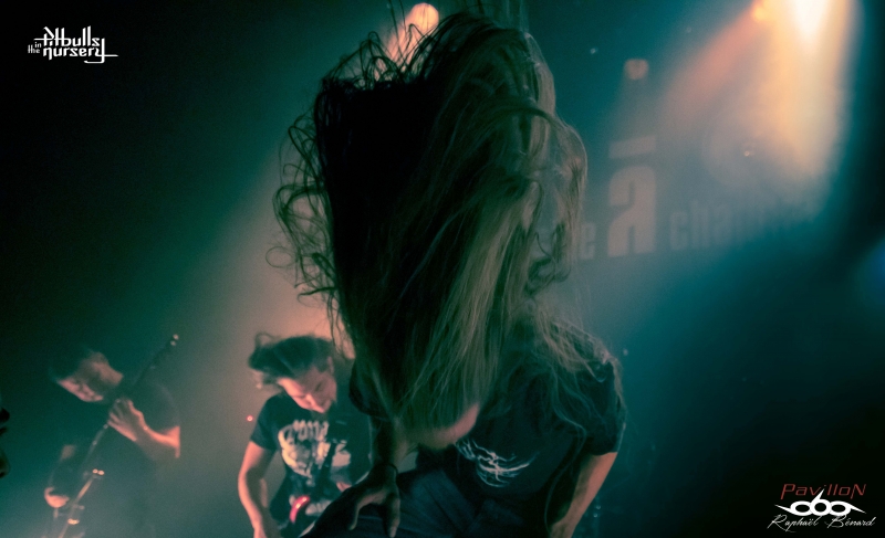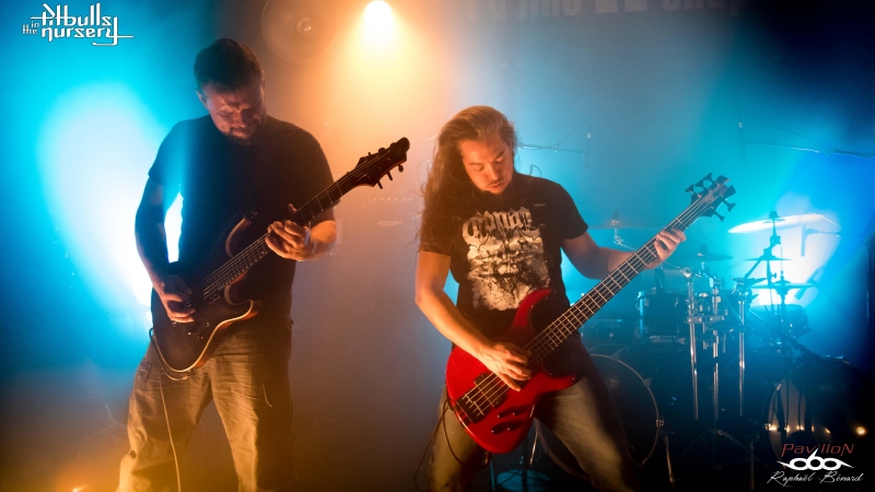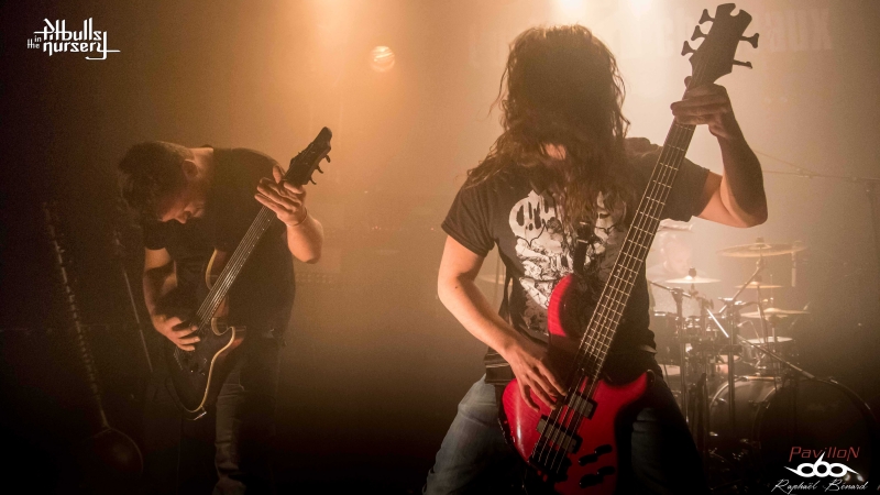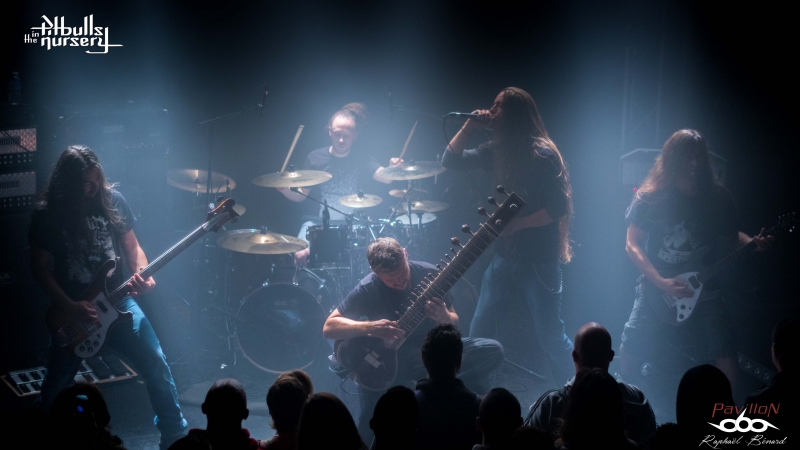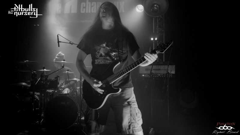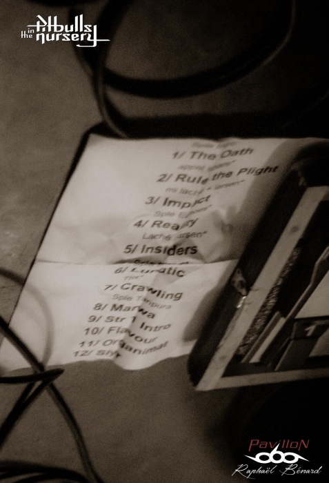 Anechoïc Room (en référence à cette chambre qui insonorise à 99,9 % une pièce) présentait ici son tout premier album « Soulèvement » (après un EP sorti en 2010) issu d’un financement participatif qui a plutôt bien fonctionné. Anechoic Room c’est avant tout une musique instrumentale, aux ambiances parfois étranges, légèrement psychédélique mais qui sait aussi alterner les passages calmes par des moments tout en puissance afin de surprendre son public. Ce trio qui mélange habilement le Dub/rock/metal nous aura offert un set de qualité. Entre les mélodies entêtantes de Cyril à la guitare, les lignes de basse bien groovy d’Oliver et le jeu fin de Max derrière les fûts ces trois-là s’entendent à merveille pour planter une ambiance déroutante et accrocheuse. Le groupe avait par ailleurs fabriqué pour l’occasion quatre gros spots au look industriel donnant ainsi un cachet particulier qui se mélangeait bien avec les autres jeux lumineux. Si vous aimez des groupes comme Dub Trio, Lobe Radiant Dub S., Primus, alors je ne peux que vous conseiller d’aller voir Anechoïc Room. Une agréable surprise pour votre serviteur… Changement de registre à présent puisque nous retrouvons Pitbulls In The Nursery. Après Lunatic et Equanimity, le groupe s’est déjà forgé une solide réputation. Celle d’une formation qui a su mélanger un Death technique, progressif et mélodique, tout en sachant garder son côté brutal. Ce concert aura été pour moi une confirmation de la qualité d’un groupe qui a sur se forger sa propre identité. Après avoir partagé la scène avec des groupes comme Gojira, Benighted, No Return et j’en passe, cette expérience se ressent en live. Il est assez difficile de définir un concert des Pitbulls tant la richesse des guitares, de la section rythmique et du chant vous emporte dans des univers différents d’un titre à l’autre. Les fans dans la fosse sont conscients de la chose et c’est avec ferveur que le groupe est supporté tout au long du set. Ce dernier se terminera d’ailleurs assez longuement sur une partie très orientale (un titre du dernier album en date si mes sources sont correctes) symbolisée par ce sitar, instrument emblématique de l’hindouisme. Alors oui, j’ai pris une claque et cela me conforte encore dans l’idée qu’il n’est point besoin de faire de grosses dates dans de grandes métropoles pour se faire plaisir. (setlist sur photo). Je vous laisse donc avec ces quelques photos et des extraits vidéos de la soirée. Pour terminer, je tenais à remercier les groupes pour leurs prestations, l’accueil et la gentillesse de toute l’équipe de la MJC « L’Usine à Chapeaux ». Pour des raisons de confidentialité YouTube a besoin de votre autorisation pour charger. Pour plus de détails, veuillez consulter nos Politique de confidentialité. |