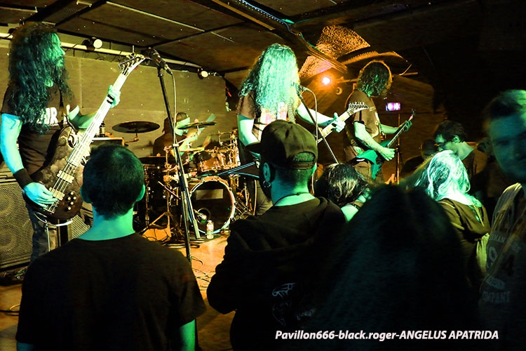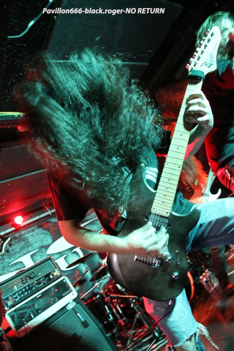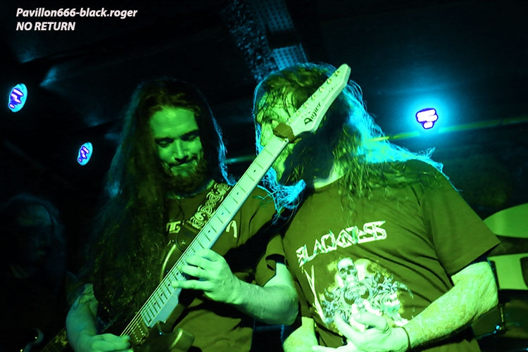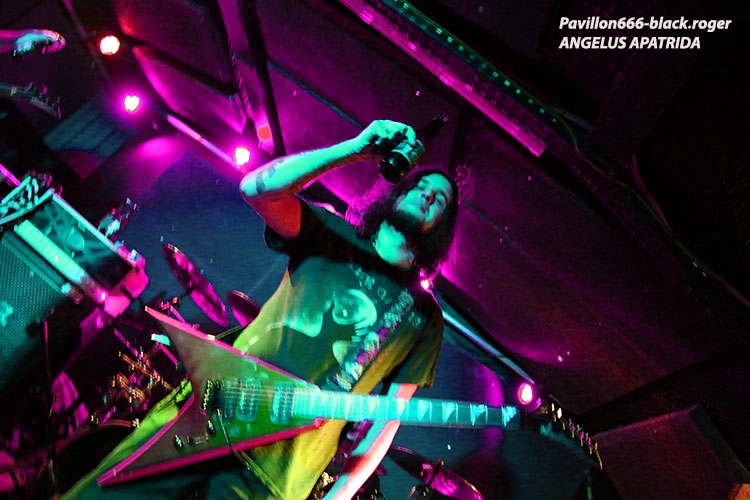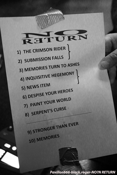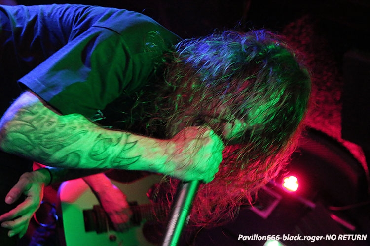 Petit à petit le Rock n’Eat se remplit en début de soirée et les nouveaux arrivants s’empressent de découvrir les lieux en attendant le début du concert qui n’aura lieu qu’à 21heures et des poussières. Mais qu’à cela ne tienne nous sommes là pour faire la fête et le regard sur la montre n’a que peu d’importance en fait ! Ce sont les parisiens (et Lyonnais) de NO RETURN qui ouvrent le petit bal du jeudi soir, pressés d’en découdre car outre le fait d’être les premiers à inaugurer cette nouvelle scène, c’est la première date d’une tournée de lancement de leur nouvel (et dixième) opus intitulé « the curse within ». Alors c’est parti pour un set de folie avec des anciens, et bien sûr des nouveaux titres, c’est la fête au thrash/death mais surtout au death mélo. En effet sous l’impulsion de Mick le chanteur, No Return se vautre dans le death dit de « Gotheborg » dans une veine se rapprochant des anciens titres de Dark Tranquility et autre In Flames. Et cela lui va bien, très bien même. Clément guitariste seul rescapé d’origine du groupe (énormément de changements de line-up en presque trente ans d’existence) a quelque peu délaissé ses influence pur thrash et nous tricote des parties mélodiques de toute beauté sur fond de rythmiques propres à décorner un troupeau de buffles en rut. Bref, No return semble avoir trouvé un second souffle depuis notamment les deux derniers albums. Et ce soir nous allons apprécier comme il se doit leur dynamique propulsée par une énergie sans faille devant un public conquis et agité devant la scène. Ensuite nous arrivons sans crier gare au terme du show avec une surprise à la clé. En effet Philippe Ordon, le tout premier chanteur de No Return remonte sur les planches pour le titre « memories » issu du second album du groupe intitulé « contamination rises ». Moment particulier donc qui clôt avec une certaine émotion le set de nos métalleux frenchies légendaires, merci les gars vous revenez quand vous voulez ! Set-list en photo. Le temps de changer le matériel, voici que démarre à fond les manettes (les cannettes) le show de thrashers fous Hispaniques ANGELUS APATRIDA. Déjà vus en live lors du dernier Metaldays en Slovénie, je savais que leur thrash sans concession avait la capacité de remuer les foules. Mais là ce soir, comment allait réagir le public lyonnais devant cet assaut métallique pur et dur ? Mais ce public déjà bien chauffé par la prestation de No Return a continué sur sa lancée et a tout démonté dans la salle, incroyable ! En effet, comment résister à ce quatuor venant d’Albacete au-delà des Pyrhénées ? Un quatuor qui a gravis à la force du poignet tous les échelons de la notoriété en matère de thrash-metal dans son pays à l’aide de 5 albums et des tournées incessantes. Angelus Apatrida sait à merveille nous prendre à la gorge à l’aide de compositions où le calme précède souvent la tempête, une tempête rythmique incroyable style rouleau compresseur, alors il est temps de faire votre testament (sic) car vous n’en sortirez pas vivant ! Bien sûr, ça passe ou ça casse, mais ce soir c’est très bien passé merci. Nous n’avons pas vu le temps passé preuve que leurs envois variés et puissants ont fait mouche. Nous avons bien sûr dégusté dans tous les sens du terme, merci au metal Espagnol ! Cette première soirée au nouveau Rock n’Eat Live a tenu toutes ses promesses, foule des grands jours, rencontre sympathique avec la « famille » metal, concert au top niveau et surtout piment de la découverte au menu. Découverte d’un lieu qui vous attend désormais régulièrement que vous soyez métalleux de tous poils, rockers invétérés ou punk déjantés, sans oubliez tous les curieux avides de nouvelles sensations musicales et plus si affinités. Alors merci à Ced et Mike pour nous avoir proposé ce nouveau lieu underground à Lyon. |