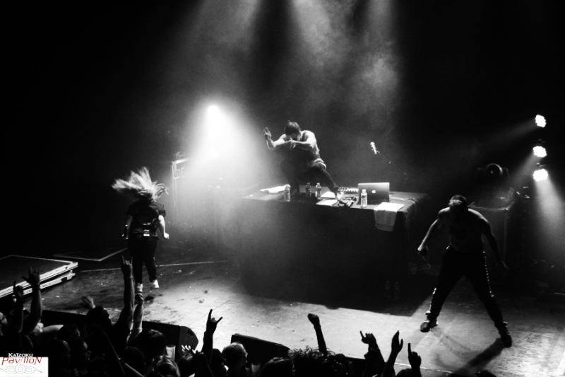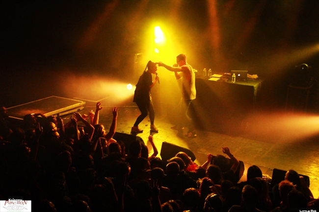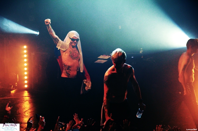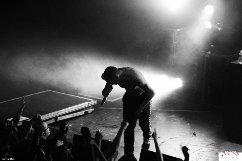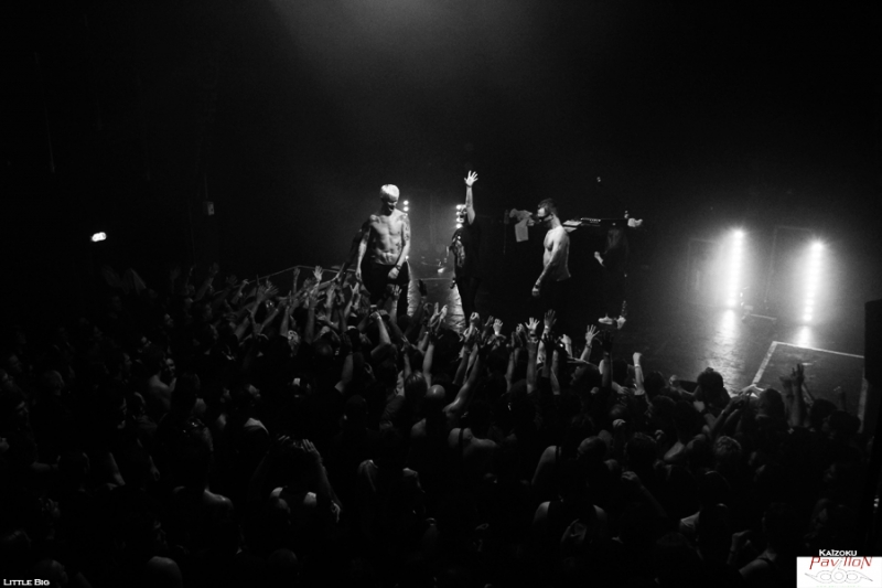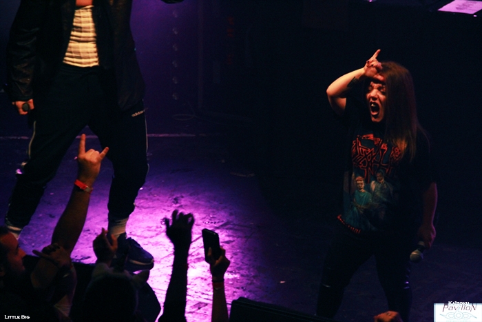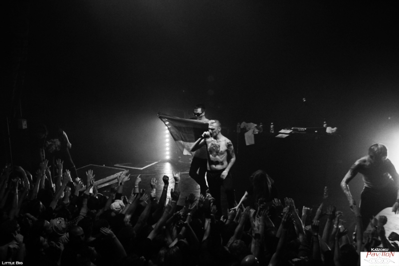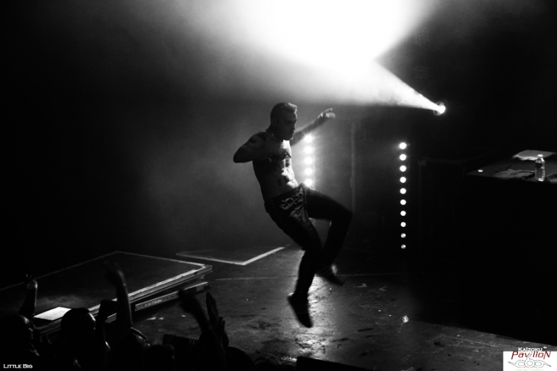 La Russie a débarqué à Lyon mercredi dernier, et en force! Métalleux, pandas et autres licornes fluo étaient là pour voir les cinq énergumènes de Little Big qui n'ont besoin que de leur micro et leur énergie pour faire partir une foule dans tous les sens! Les petits princes de la rave actuelle font honneur à leurs "grands frères" sud africains de Die Antwoord aux côté de qui ils ont fait leur première scène en juillet 2013. Des beats efficaces, un côté freaky bien travaillé sur scène comme dans leurs vidéos, des paroles ironiques sur les stéréotypes russes, la société ou encore la politique reprises par tout le public qui connait par cœur ces mélodies qui restent dans la tête (oui même une semaine après le concert!)! Une recette qui fonctionne parfaitement bien! Tellement bien qu'il a été dur pour moi de rester devant la scène pour les photos tellement le public bougeait! Heureusement j'ai pu rejoindre la plateforme de la mezzanine sans encombre pour observer la foule survoltée d'en haut et apprécier le spectacle que nous offraient Ilya Prusikin et sa bande. Après une adaptation à leur sauce du célèbre chant russe Kalinka (je vous laisse imaginer le résultat!), une déclaration d'amour (en français s'il vous plaît!) d'Anton Lissov "Je veux te péter la rondelle" (rajouter un accent russe à couper au couteau pour plus de poésie!), Little Big nous fait passer par tous ses grands classiques. Dans le désordre, Dead Unicorn, Russian Holigans (agrémentée d'un superbe circle pit), Big Dick (qui a reçu un prix aux Berlin Music Award l'année dernière dans la catégorie Most Trashy), Life in da Trash, Everyday I'm drinking (leur hymne à la saveur de "no future" repris en chœur par le public) et j'en passe. C'est hardcore, c'est bon, c'est pas fin mais ça se mange sans faim! Le thermomètre monte très vite, obligeant les trois chanteurs à découvrir leurs tatouages. Après une heure de cardio intensive Ilya Prusikin, Sergey "Gokk" Makarov, Sophia Tayurskaya, Anton Lissov et Olympia Ivleva passent un bon moment sur scène à taper dans les mains du public et à profiter de cette belle conivence déjà installée dès le début du set. Nous sortons tous ensuite de la fournaise transpirants et le sourire aux lèvres! L'envie de prendre la voiture pour les suivre pendant leur tournée française me prend, une heure de concert c'est beaucoup, mais alors, beaucoup trop court (même si mes mollets pensent le contraire), mais fort heureusement, ce sera le seul point négatif de cette soirée! Un grand merci à Base production et au Ninkasi de nous avoir permis ce petit voyage chaleureux au pays des matriochkas! Et merci à Little Big de nous avoir envoyer autant d'énergie! Pour moi, ce fut une belle découverte qui arrache autant et est aussi savoureuse qu'un bon verre de Beluga! На здоровье ! (Santé!) |