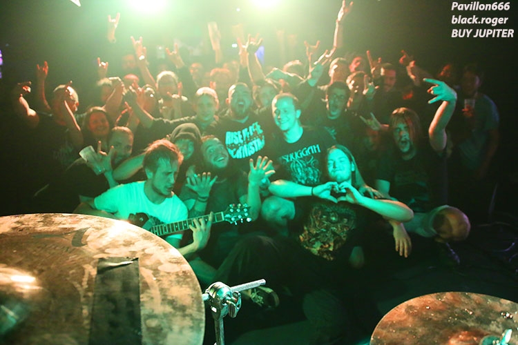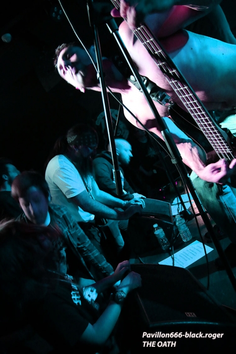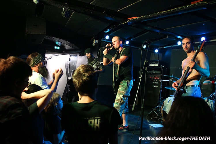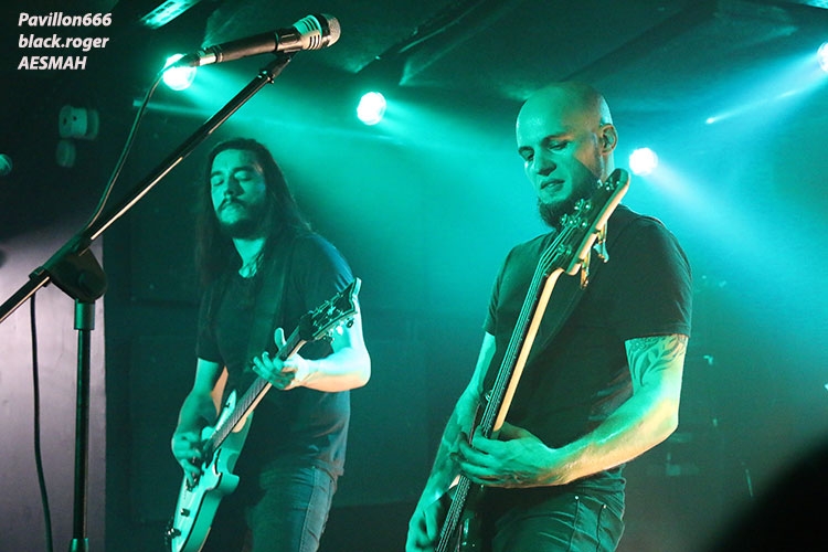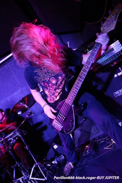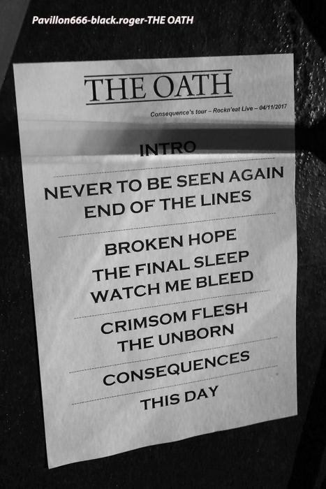AESMAH que l’on n’avait pas vu à Lyon depuis un moment déjà est chargé ce soir d’ouvrir les débats devant un public attentif et réceptif. Mais nous les excusons pour cette absence, car ils travaillaient sur un nouvel album dont l’enregistrement vient de se terminer. Leur death mélodique bien influencé par la scène dite de Gôtheborg (Dark Tranquillity, In Flames) se veut original maintenant avec des compositions remarquées par des touches bien personnelles mêlant le mélodique et l’agressif dans une veine teintée de prog. Ce soir le trio en live semble avoir mis dans sa poche l’assistance, alors on lui souhaite bonne route pour la suite, il le mérite. Et puis, et puis, ce sont les Lyonnais de BUY JUPITER qui investissent les lieux et ça va faire mal, très mal, mais on aime ça voyez-vous car cette formation nous surprend à chaque concert par ses déferlantes death, death-prog et pourquoi pas deathcore (ce n’est pas une insulte !), metal moderne dirons-nous, mais pas que ! Alors Buy Jupiter va nous proposer un set fulgurant où se mêlent de la polyrythmie à la Meshuggah, des avancé »es « core », des travaux guitaristiques parfois dissonants mais éprouvés dans un déluge sonore varié qui nous fait avaler le mot progressif. La tenue de scène est mouvementée et énergique avec notamment un frontman venant « recharger » ses batteries dans le public, ambiance de « ouf » donc ! A la fin du show, car show il y a, nous ne pensons qu’à revoir encore et encore ces jeunes loups du metal sur scène, il n’y a pas photo ! Changement de style avec THE OATH, si style il y a en fait car nos lyonnais pratiquent depuis 17 ans déjà un death progressif flirtant avec le black et le power pour un rendu … original. The Oath a déjà partagé la scène avec moult combos metal de renommée et prend toujours un malin plaisir, bien partagé avec un public qui le suit et un autre qui le découvre enfin, à nous faire violence musicalement parlant. Les compositions provenant de toute leur discographie qui nous seront proposée ce soir dans une formule que l’on pourrait nommer « vite et bien », conservent ce côté noir et dramatique qui est le leur, une « consèquence » (sic) en quelque sorte de leur vision du metal. Au final c’est toujours avec un plaisir non dissimulé que l’on retrouve ces métalleux en live comme ce soir au Rock n’Eat. Set-list en photo. Encore une soirée live réussie dans ces lieux propices aux effusions rock et metal maintenant. Les trois formations en lice ont assuré chacune dans leur style et l’assistance, nombreuse, s’est laissé appréhender par leurs prestations de haut niveau. Alors un seul mot, nous reviendrons bien entendu, long live Rock n’Eat ! |