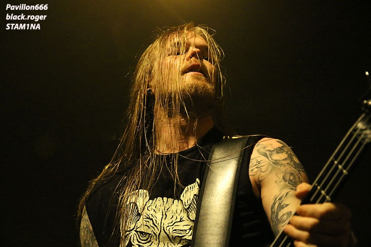 Ces vikings nous proposent depuis une vingtaine d’années un certain death mélodique qui n’a pas trop dérivé depuis ses débuts. Ici nous retrouvons beaucoup de mélodies mais entrecoupées de « growls’ agressifs avec des riffs puissants à l’envi, mais aussi avec des soli intenses et des envolées de claviers en fond d’écran. Et puis, autre point fort du groupe, les refrains que tout un chacun peut reprendre à gorges déployées, ambiance donc durant un set de 75 minutes quand même !
