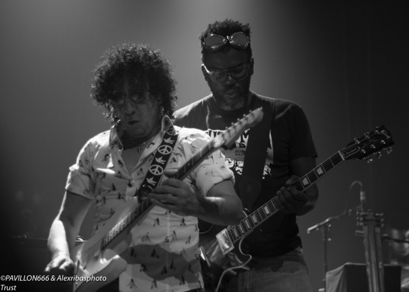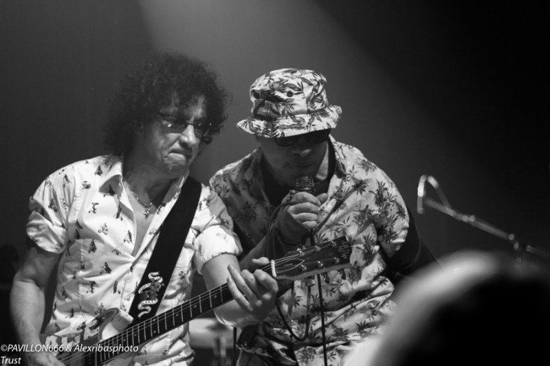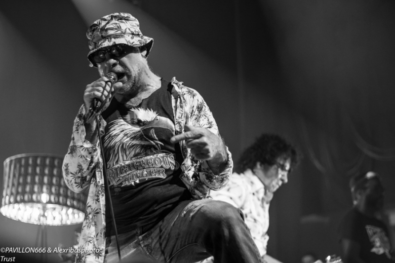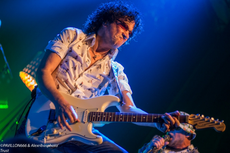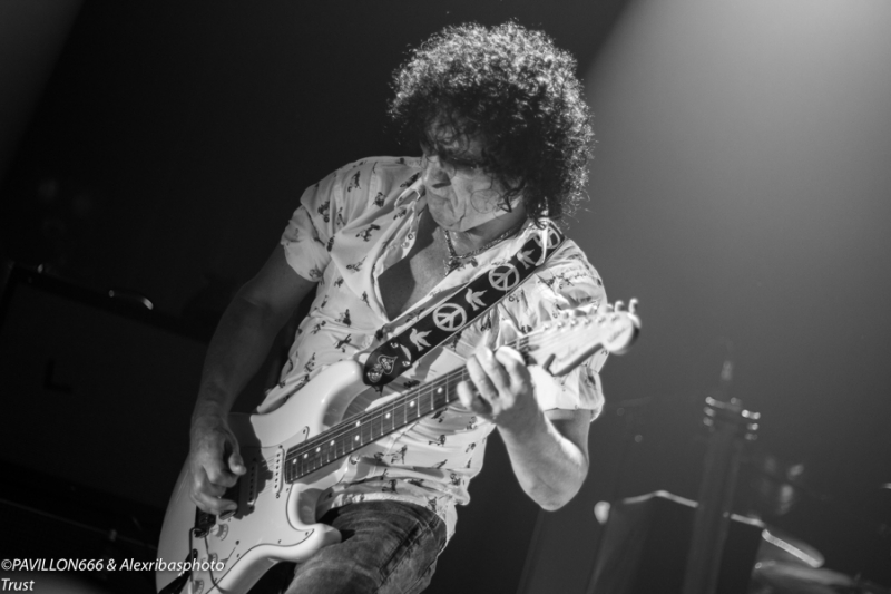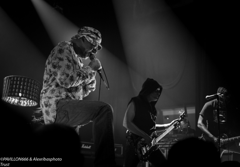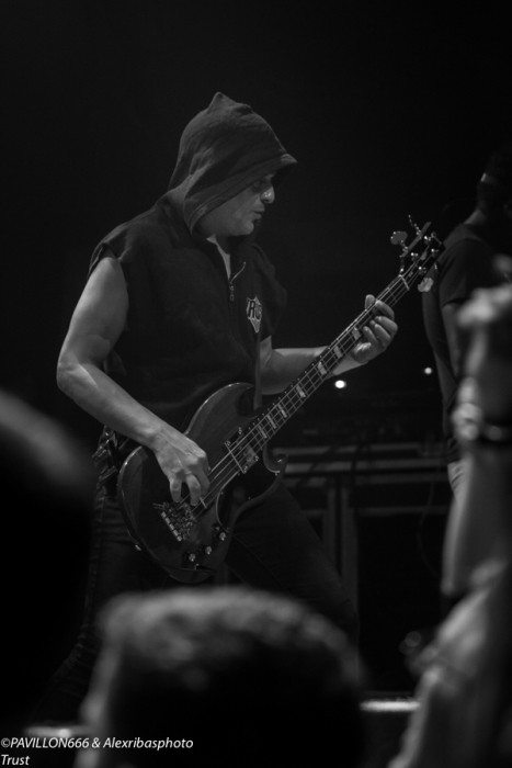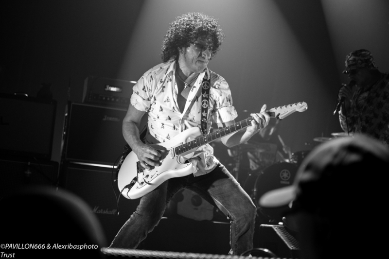 Le groupe se sépare un première fois en 1985, puis vont se reformer et se séparer plusieurs fois. Mais aujourd’hui, ils sont de nouveau réunis afin de fêter leurs quarante ans de carrière avec la tournée « Rage Tour » et un album qui serait déjà en boite et qui devrait sortir depuis 2018. Les membres actuel sont: - Bernie Bonvoisin au chant et co-fondateur du groupe - Norbert « Nono » Krief à guitariste solo et co-fondateur du groupe - David Jacob à la basse - Ismalia Diop à la guitare rythmique (précédemment à la basse mais à pris la guitare depuis le début de la tournée Rage Tour) - Christian Dupuy à la batterie Le concert commence par un nouveau titre « L’archange » avec un riff qui fonctionne bien comme intro de concert. Suivi par « Marche ou crève » qui à été retravaillé par rapport à la version studio, ce qui permet lui donne une nouvelle vie. Les morceaux s’enchainent plutôt bien, avec une bonne énergie sur scène et dans le public. Sur le très bon morceau « Le temps efface tout », on peut remarquer un doigt tendu bien haut par Bernie pendant qu’il prononce la phrase « le FN qui gagne ». Dans la version originale, la phrase exacte est « la gangrène qui gagne » … après ça on est certains des convictions politique de Bernie. Après « Déjà servi », Bernie nous présente un nouveau morceau, « Démocrassie » (il précise même l’orthographe pour montrer le jeu de mot). Il nous indique que le groupe avait envi de faire un boogie, et nous invite même à sauter pendant le morceau (apparemment un rituel fait par le public lors de chaque concert). Le morceau est composé d’un riff très accrocheur, on remarquera la grosse influence (plagiat ?) du riff de « Bad Boy Boogie » de AC/DC. Le morceau n’en est pas moins très bon, et un signe un retour aux sources de la part de Trust. Juste avant le rappel nous avons le droit à « l’Elite », je dis « avons le droit » car j’ai entendu dans la foule que le groupe n’avait joué ce morceau que deux fois durant leur semaine de concerts parisien. Ca aurait été dommage de louper ce morceau avec le public (qui pour la majorité à vieilli en même temps que Trust) qui va pogoter et lever du poing pendant le morceau. Pour le rappel, trois très bons morceaux du début de Trust dont bien sûr un « Antisocial » (qui n’a pas pris une ride) qui commence par une assistance survoltée qui chante en choeur « Oh Oh ». David Jacob, le bassiste, va essayer de nous faire crier encore plus fort en disant que le public chantait mieux au concert de Metallica (référence au concert parisien de Metallica qui avait repris Antisocial). Après 1h30 de concert, tout le monde sembleee très satisfait de l’énième retour de Trust. J’aurai quand même quelques bémols à noter. Je ne parlerai pas de l’accoutrement à la limite du ridicule de Bernie (bob et chemise à fleur), je parlerai surtout de sa prestation. Il à passé la plupart du temps à regarder ses fiches, mêmes sur les morceaux les plus vieux et connus de Trust. Au bout de 40 ans de carrière, Bernie n’arrive toujours pas à retenir les textes qu’il écrit lui même ? C’est bien triste… Autre point négatif que j’ai retenu, la présence du guitariste rythmique. Très effacé (1 ou 2 sourire dans la soirée) et très très statique. J’ai bien cru que j’allais devoir me déplacer dans la fosse pour aller faire des photos de lui. Les deux personnes qui ont retenu plus mon attention que les autres, ce sont Nono, par son jeu de guitare et sa technicité et le jeune batteur (21 ans) qui assure vraiment bien derrière sa batterie (Iron Maiden pourrait le prendre aussi, après avoir pris Nico McBrain). Merci à Sabrina de Verygroup pour l'accréditation accordée à Pavillon666. |