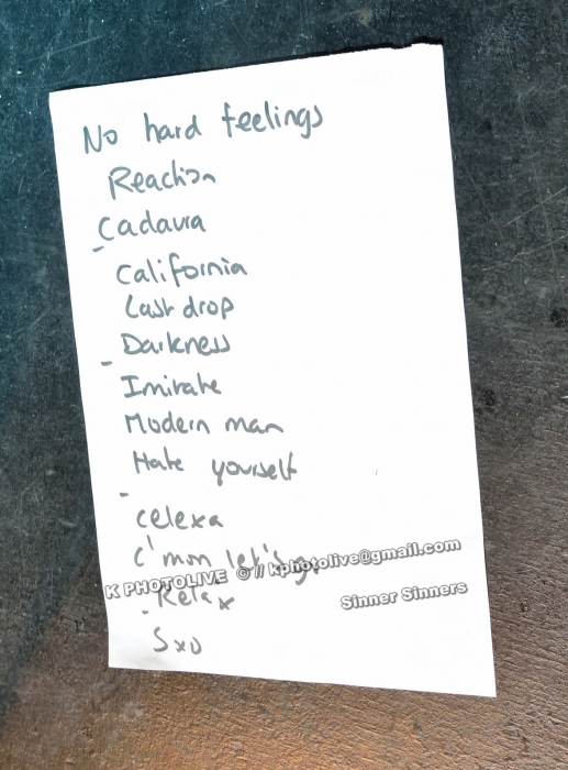 (voir set-list en photo ci-dessous)