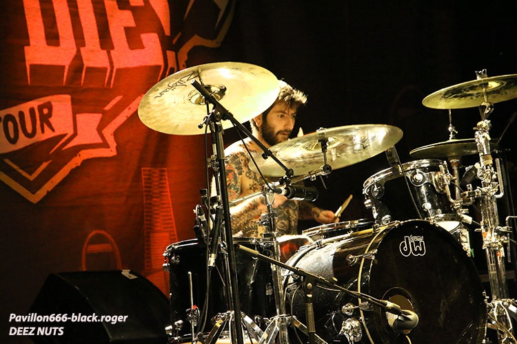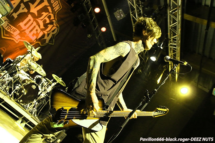 Avec sous leurs bras un premier album intitulé « the mortal coil », les Australiens de POLARIS lancent les hostilités dès 17 heures 45 à l’horloge du Totem. Une ouverture avec un metalcore musclé au double chant comme beaucoup d’autres formations en ce moment. Mais Polaris laisse entrevoir une certaine technicité guitaristique qui fait la différence. Groupe prometteur donc avec ces jeunes musicaux de Sydney, on aime et le public déjà en nombre dans les lieux aussi. Avec LORNA SHORE, le ton va changer quelque peu, beaucoup même. Ceux du New-Jersey aux « States », viennent eux aussi de sortir un nouvel album, le 5ème déjà, intitulé « flesh coffin ». Leur deathcore chaotique ou se croisent death, djent et black-prog est assez « touffu » en live et leur recette se révèle assez dure à absorber. Retour à du plus « musclé » et direct avec les Texans de KUBLA KHAN qui défendent en live un 4ème enregistrement, « noma » en cette année 2017. Déjà vu sur scène l’an dernier j’avais apprécié leur metalcore particulièrement intense et agressif. Et ce soir à Rilleux nous ne serons pas déçus. Un metal dense et recherché va venir confirmer tout le bien que l’on pensait d’eux, c’est sans appel, excellent même. SWORN IN prend la suite à 19heurs 45 (signalons le timing précis bien respecté ce soir à Rilleux). Ces « ricains » de l’Illinois avec leur petit dernier opus à présenter « all smiles » vont en dérouter plus un dont moi avec leur « sreamo » dérangeant. Ici le metalcore côtoie le nu-metal avec des dérapages djent et indus. C’est lourd, sombre avec une approche musicale complexe qui rend l’auditoire perplexe en live ? A revoir donc pour plus d’approfondissement dans leur délire original mais quand même difficile en première approche. La trilogie finale bien connue et reconnue avec CHELSEA GREEN, DEEZ NUTS et EMMURE va maintenant faire son œuvre dans un public venu ce soir pour en découdre cela ne fait aucun doute. Tout d’abord, voici CHELSEA GRIN et son deathcore imparable en live. En effet, ceux de Salt Lake City aux USA n’ont pas besoin de beaucoup de titres pour transformer la salle du Totem en agitations musclées de toutes sortes, vous connaissez sûrement cette ambiance, inutile donc d’en rajouter les détails. Avec un nouvel opus « self inflicted » à nous présenter, ces « coreux qui ont tut comprit au film entre la puissance du metal et l’énergie du hardcore vont mettre le feu dans l’assistance, il ne pouvait en être autrement. Un chanteur qui en impose, des musiciens qui tabassent, alors même si les compositions ne sont pas très recherchées niveau paroles, on aime la puissance de leurs envois imparable, cqfd ! Vous vous attendiez à quoi avec la venue des Australiens de DEEZ NUTS ? En ce qui me concerne après les avoir vus l’été dernier à la Warzone du Hellfest, j’étais curieux de les revoir, mais en salle cette fois-ci, et ce fut sans appel, un grand moment pour moi en ce Samedi froid de Novembre avec ceux de Melbourne nous assassinant littéralement avec leur punk-hardcore de haute volée. Et effectivement ça a volé dans tous les sens ce soir, obligé me direz-vous. Et comme les autres groupes de la soirée ils nous ont offert en live « binge & purgatory », petit dernier de leur, déjà, imposante discographie. Que dire de plus, que leur mélange détonant de hardcore enragé avec l’urgence du punk a fait mouche encore une fois il fallait s’y attendre, pas de déception donc nous en avons pris plein la « gueule » au sens propre et au sens figuré. Les New-Yorkais du Queens, EMMURE vont clore la journée avec un show incroyable d’originalité ou pas. Ici pas ou peu de lights mais des éclairs déchirant la nuit scénique, un chanteur énervé et haineux, un bassiste grimpant aux rideaux d’un deathcore extrême, un guitariste plié sur sa gratte, un batteur briseur de fûts, voilà le tableau visuel et sonore. Car vous allez en prendre plein les conduits auditifs avec ce mur du son propulsé par Emmure. Ici pas de compromis, mais une brutalité malsaine qui vous empoisonne les neurones. Plus neo-metal que deathcore, Emmure semble cependant « s’emmurer » dans un délire que lui seul peut comprendre, quant aux autres … Résultat des courses, un show en demi-teinte où le groove que vous recherchiez se révèle absent, désolé les gars votre chemin semble s’engager dans une voie sans issue en ce moment après des débuts prometteurs. Hier Ö Totem, il y avait tout ce que vous vouliez voir, ou pas. Du bon et du moins bon, mais au final cette journée consacrée au « core » et à ses dérivés nous a satisfait, soyons honnêtes. Merci à Sound Like Hell Productions pour avoir « accroché » cet événement dans le paysage Lyonnais, merci aux groupes Américains et Australiens pour leurs prestations et merci au public venu en nombre et qui a instauré l’ambiance adéquate. |