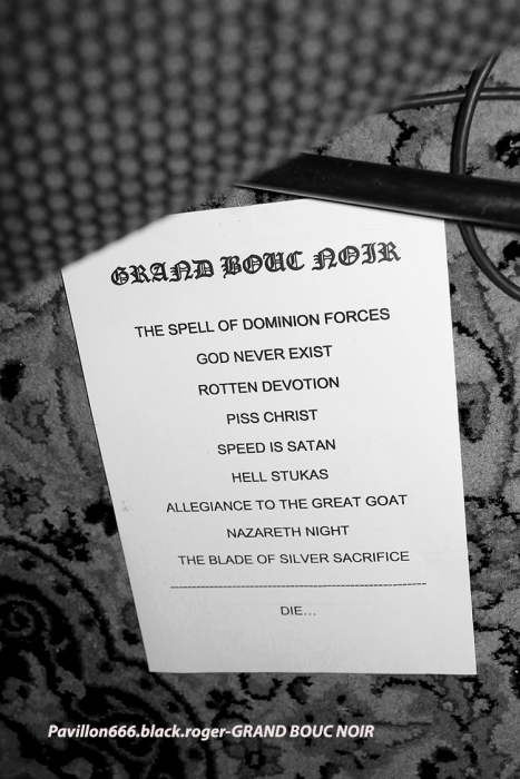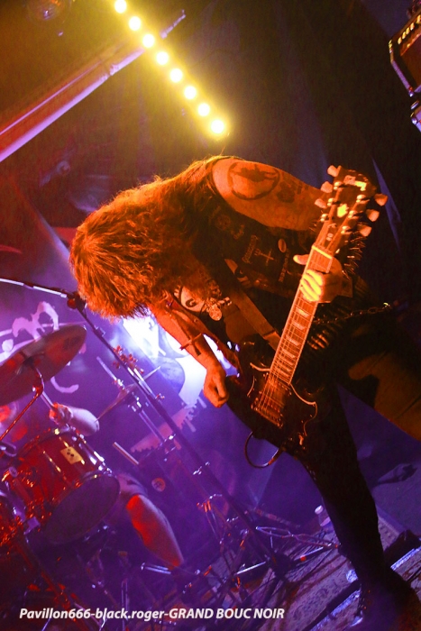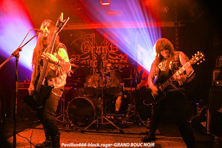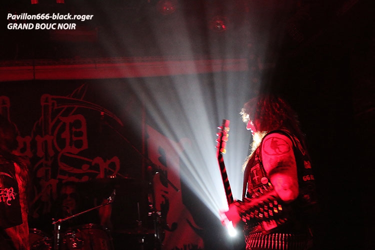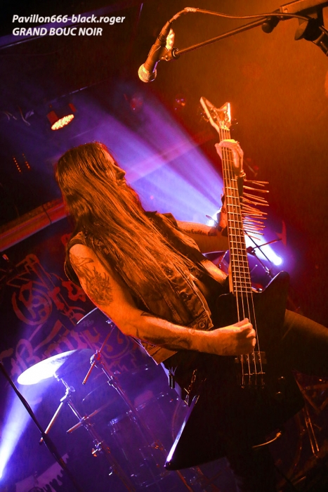 C’est au GRAND BOUC NOIR de Grenoble qu’est revenu l’honneur d’ouvrir les débats avec leur black-thrash vigoureux, puissant et occulte en diable. Vu à maintes reprises ce trio m’a surpris ce soir avec son set très intéressant, du progrès sûrement, un bon son au Brin de Zinc, une présence scénique plus prenante naturellement. Alors ce fut sale, avec ce côté thrash, ce côté punk, ce old-school à la Venom et un arrière-goût de Satyricon par moments et tout cela fait du bien en live quand le Grand Bouc Noir se donne à fond, ce qui fut le cas ce soir, on aime tout simplement.