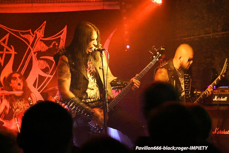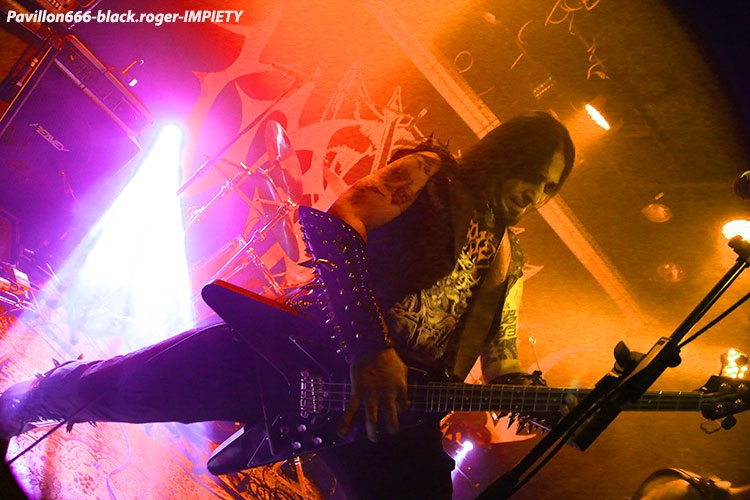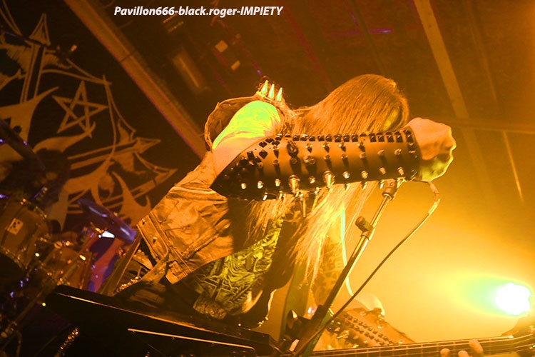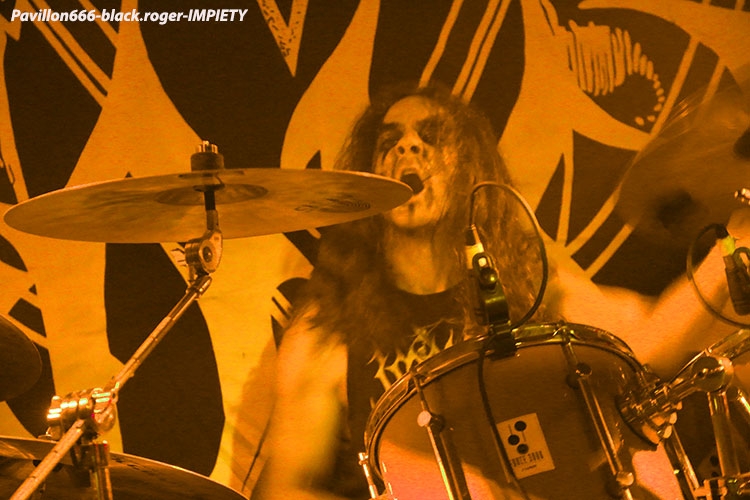 En effet le public ne résiste pas longtemps à ce pur black/death d’anthologie et ne tarde pas à se défoncer devant la scène, bonjour les dégâts, garez-vous ! Et le pilonnage intensif ne va s’arrêter que pendants de courts laps de temps où le trio accorde ses instruments. Répit bien vite oublié car ça repart de plus belle, sans limite et vous n’en sortirez pas vivants. Quoi, après le rappel vous en vouliez encore, la classe les amis, un concert à inscrire en lettres de feu dans les annales du metal extrême, ni plus, ni moins, la terreur fut nôtre ce soir.