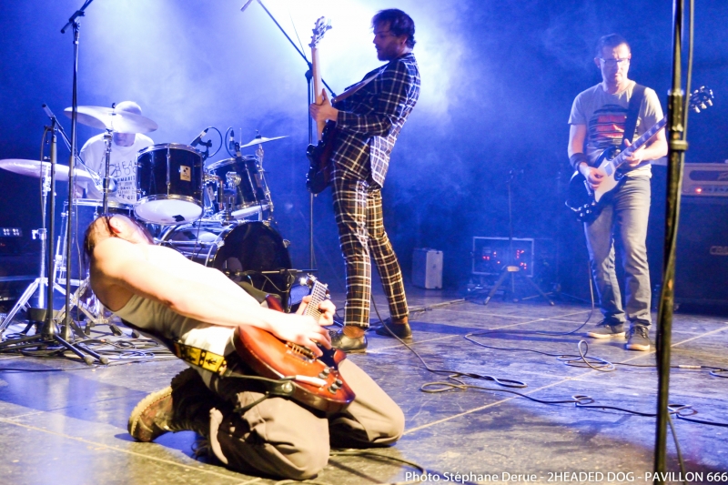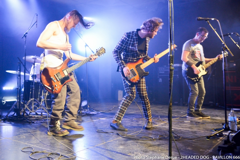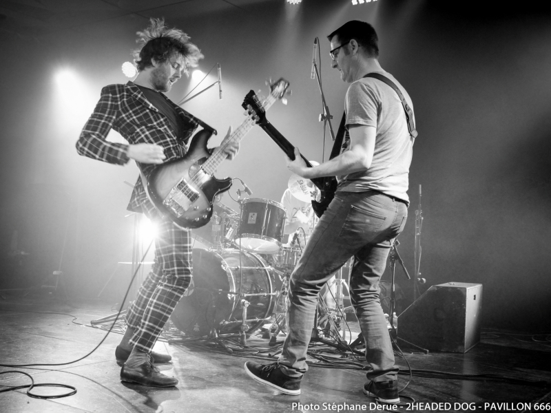 Ce fut encore le cas ce week-end. Le groupe SWAN, trio venant de Rouen, avait la lourde tâche d'ouvrir les bans. Il n'a pas fallu longtemps pour que ce groupe talentueux mette dans sa poche le public présent. Le charisme du chanteur, les riffs énergiques et une rythmique assurée par une basse bien présente et un très bon batteur, nous ont distillé un set implacable. Du gros rock US comme on l'aime, avec deux reprises "Rolling into deep" et "Comme elle vient". Rien de novateur dans leur musique mais quand c'est bien fait, faudrait vraiment être difficile pour ne pas passer un bon moment. Moi j'ai adoré. Le deuxième groupe, de Châteauneuf-en-Thymerais, 2HEADED DOG est hallucinant d'énergie. Un chien à deux têtes mais avec 4 coeurs et huit poumons... 3 chanteurs, ce qui est rare et c'est bien dommage car cela offre des possibilités incroyables et une richesse dont beaucoup de groupe ferait bien de s'inspirer. Un groupe où les deux membres les plus âgés pourraient être les darons des deux plus jeunes. Et c'est encore une richesse. Une sorte de filiation où les générations, loin de s'opposer, se complètent, se respectent et se nourrissent mutuellement. Les morceaux défilent sans temps morts. A peine le temps de recharger les accus pour que Djessy (guitare) et Anthyme (basse) repartent dans dans une frénésie communicatrice. Très difficile pour moi de faire les photos avec les jambes qui battent le rythme. Musicalement, il n'y a rien à dire, c'est carré et bien joué. Je souhaite à tout le monde d'avoir la chance de voir les 2HEADED DOG sur scène... ça fait du bien ! Le dernier combos nous viens d'Orléans. Un groupe de Punk Rock aux influences assumées comme the OFFSPRING dont ils nous interprètent une impeccable version de "Kids". Le groupe est en place, trop peut-être; l'énergie et la spontanéité y perdent un peu. c'est dommage. Le chant en français, ce qui est plutôt rare, distille un discours engagé, politique, écologique et citoyen. Les paroles, quoique parfois naïves, ont le mérite de parler de sujets qui touchent tout le monde. Les choeurs très simplistes, rappellent quand même pour les plus anciens dont je fait partie, des groupes comme Ludwig von 88 ou Gogol 1er. Ce groupe a tout de même un bel avenir car il possède un vrai potentiel. Voilà, un grand merci aux membres de ZOMBI RIOT qui nous offrent à chaque concert l'opportunité de passer une super soirée avec de la bonne musique. A bientôt Stef |