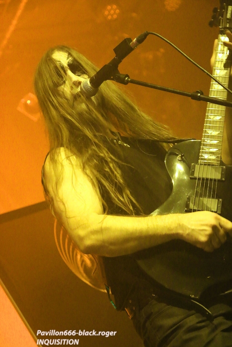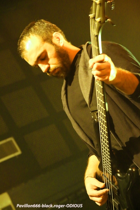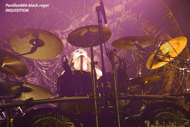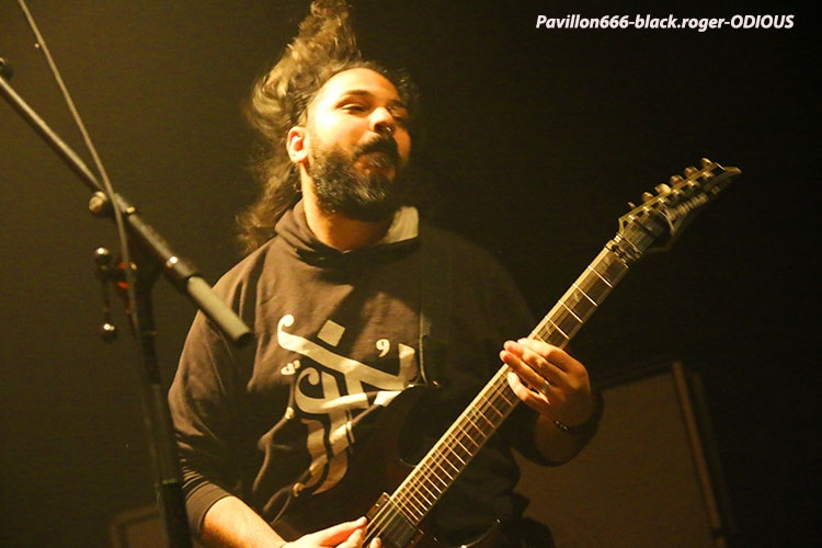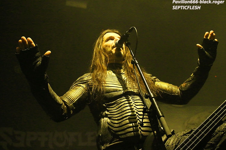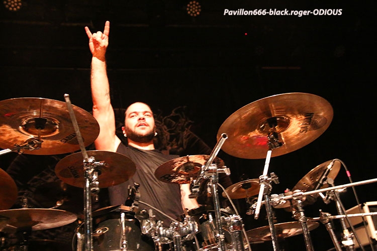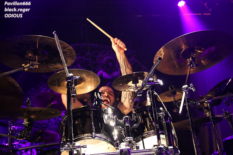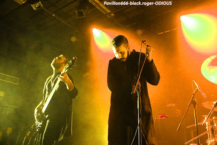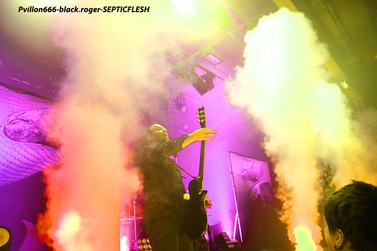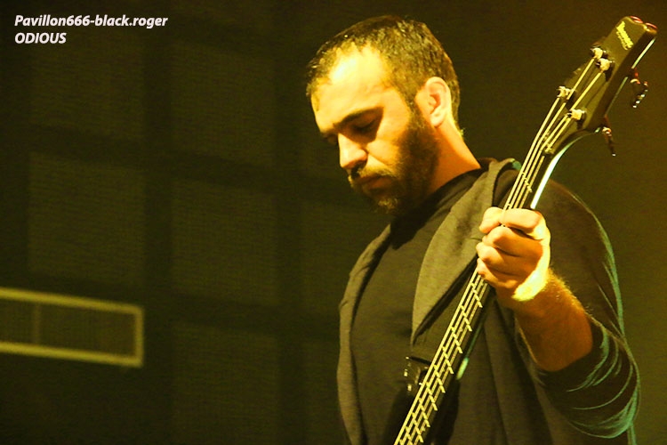 Afin de nous mettre dans le bain black/death de la soirée, ce sont les Egyptiens d’Alexandrie, ODIOUS qui vont nous interpeller avec un set découverte très attachant. En effet comment résister à ce black/death symphonique aux sonorités orientales. Tout de suite l’on pense à quelque chose se situant entre Melechesh et Orphaned land, mais bien vite on doit se rendre à l’évidence car nos Egyptiens après un album quasi inconnu « mirror of vibrations » paru il y a huit ans reviennent en force sur le devant de la scène extrême. Et c’est tant mieux car avec l’aide de membres de Septicflesh, un album de toute beauté « skin age » voit le jour en 2015. Et là ce soir c’est une sorte de révélation pour nous. Odious nous emmène dans des ambiances sombres et glauques à l’aide de musiques metal puissantes et variées avec une maîtrise instrumentale bluffante. Bon rendu sur scène ce soir à lyon, belle découverte aussi, dommage que l’encombrement des lieux ait empêché certaines évolutions du chanteur. Mais faisons fi de ce détail car leur set fut riche dans tous les sens du terme, on aime. Dans un autre registre nous allons retrouver le black-metal sulfureux et blasphématoire des Colombiens (maintenant installées aux USA), INQUISITION. Ici pas de surprise le duo constitué par Incubus (batterie) et Dagon (chant, guitare) nous prend à la gorge dès l’intro et ne nous lâche plus. Inquisition n’a plus rien à prouver et à chaque prestation auquelle nous assistons, c’est la même, la même explosion des fûts, la même dissonance mortelle et vicieuse à la guitare, la même voix sombre et grave qui nous injecte dans les conduits auditifs une violence satanique sortie des enfers, frissons garantis. Après presque 30 ans d’existence et une discographie longue comme le bras, ce duo maléfique tient toujours le « haut du pavé » dans la scène black-metal, et si certains pensent que maintenant Inquisition semble tourner en rond notamment avec la sortie de leur dernier opus « bloodshed across the empyreon altar beyond the celestial zenith », force est de constater qu’en live rien ne résiste à leurs envois. Alors, rien à rajouter on aime ou on aime pas mais lorsque vous avez accroché à leur musique extrême rien ne vous déçoit et encore une fois Inquisition a ce soir relevé le défi de la durée, magistral tout simplement, noir comme les plus profondes des abysses, glauque comme une lumière maladive et violent comme l’apocalypse, amen ! « Pour qui sont ces serpents qui sifflent sur vos têtes » (Racine), pour nous bien sûr, alors voilà le décor de scène pour accueillir les Grecs de SEPTICFLESH ce soir sur la scène du CCO. Les Athéniens font étape à Lyon lors de cette nouvelle tournée afin de promouvoir leur dernier enregistrement intitulé « codex omega » paru le 1er septembre 2017. Alors ce soir ils vont nous offrir un set puissant, dense et varié à la fois où guitares et batterie sont implacables sans oublier la basse omniprésente et les vocaux death annonçant un violent orage s’abattant sur nous. Mais des éclaircies symphoniques majestueuses viennent par moments éclaircir ce ciel noir comme de l’encre. N’oublions pas que les Grecs ont visité avec intelligence et doigté toutes les facettes du metal sombre, glauque et oppressant parfois. Du coup ce soir leur prestation va mettre tout le monde d’accord car dès le premier titre le CCO va s’embraser, s’enflammer avec un public qui n’attendais que cette étincelle pour s’agiter et s’envoler sous les coups de boutoir de Septicflesh, excité régulièrement par les « are-you ready ? » proclamées par Spiros Antoniou. Bien entendu les titres « dante’s inferno » (en ouverture), « martyr », « enemy of the truth » et dark art » (en fin de set), seront de la partie, mais aussi des plus anciens comme le fameux « prometheus » issu de « titan » (2014). Les jets de fumée contribuent à donner au set une grandeur spectaculaire qui confère à ce groupe innovant sa légitimité depuis presque trois décennies dans le domaine du death-dark symphonique. Prestation excellente dans une ambiance démesurée, voici une soirée qu’il ne fallait pas manquer et vous l’avez bien compris ce Dimanche soir à Lyon. Set-list : dante’s inferno, the vampire from nazareth, martyr, prototype, pyramide god, enemy of truth, communion , prometheus, portrait of a headlen man, anubis, dark art. Un seul mot en conclusion, merci ! Merci aux organisateurs, Médiatone-Lyon, aux trois formations en lice et bien entendu merci au public pour cette folle ambiance. |