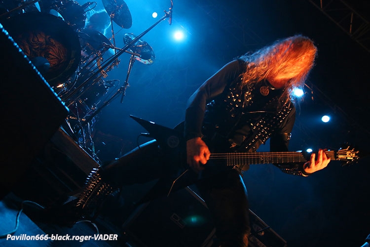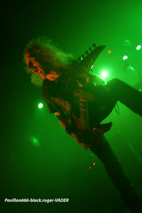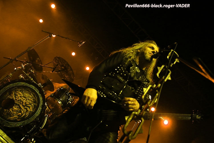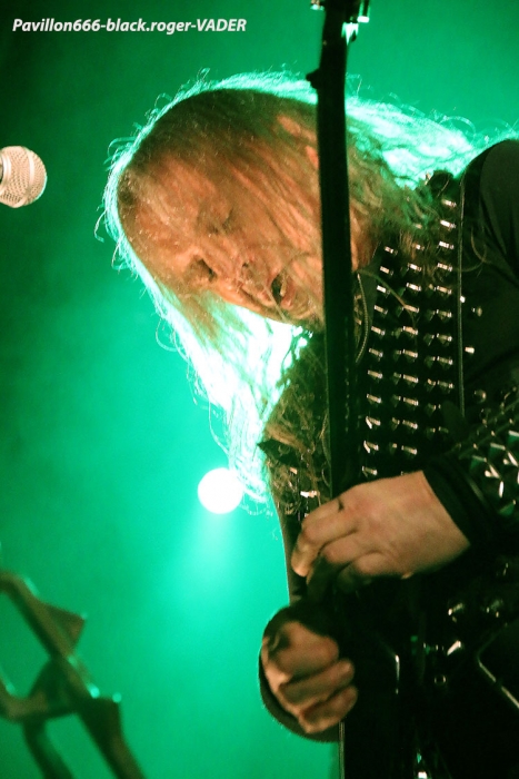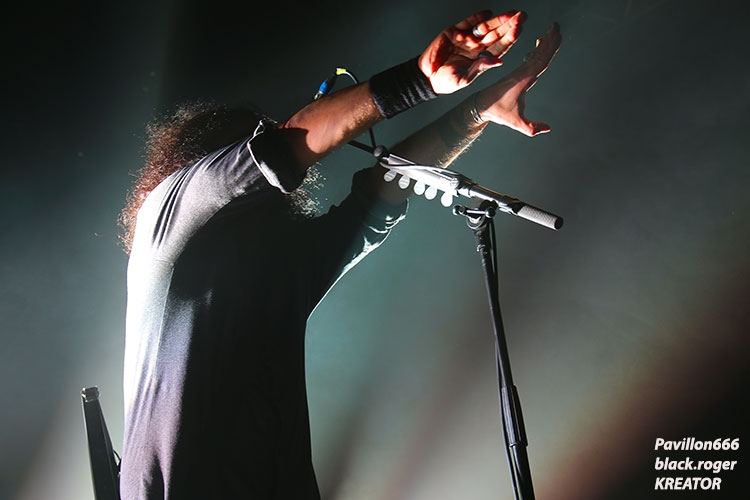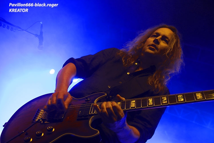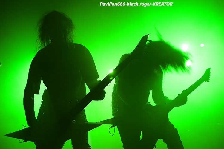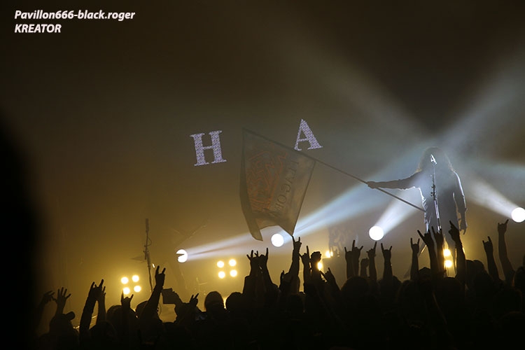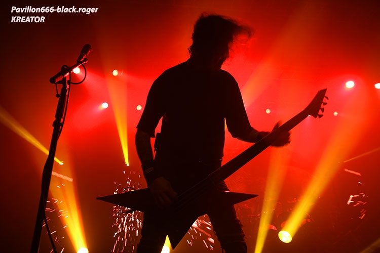 Ambiance des grands soir avec un public fortement métallisé revêtu bien souvent de vestes à patchs, venu en prendre plein les mirettes et plein les esgourdes cela va de soi en cette année 2018 qui s’annonce déjà tellurique niveau concerts d’anthologie dans la capitale des Gaule. DAGOBA ouvre le petit bal du lundi soir sur la grande scène du Transbordeur. Les marseillais sont en forme, dernière date française pour eux de cette tournée et Shawter invite le public à fêter dignement ça en sautant de partout. Allez hop, ils démarrent en trombe avec « reptile » suivi d’un implacable « the man you’re not » pour mettre tout le monde dans sa poche. Le set sera court, mais intense comme l’on dit dans ces cas- là. Merci les gars on ne se lasse pas de vos prestations live quand elles sont bien musclées, ce qui fût le cas ce soir. Set-list : dracula (intro), reptile, the man you’re not, inner sun, when winter, the sunset curse, the white guy & the black ceremony. Place maintenant à VADER qui va nous offrir ce soir en live les titres de son premier album « the ultimate incantation » paru il y a 25 ans déjà. Amateurs de death brutal ce set sera pour vous, mais aussi pour tous ceux qui découvrent seulement maintenant ces précurseurs de génie du metal extrême Polonais. Devant nous un Vader en pleine possession de ses moyens servi par un son qui aurai pu être meilleur. Mais quand même les titres de leur premier opus sont comme « magnifiés » ce soir, et le son grésillant leur donne en effet old-school. Peter mène toujours de main de maître cette entité malsaine, puissante et sans compromis malgré les changements de line-up qui ont parsemé la longue carrière de ces métalleux de l’extrême. Vader a depuis quelque temps épicé son death avec une pincée de thrash et le résultat est toujours aussi surprenant, gare à vous vous allez être collés contre les murs du Transbordeur ce soir. Nous aurons droit à un set ne supportant aucune faiblesse qui va nous faire headbanguer comme jamais et faire se dresser nos poils du dos, incroyable ! Vader n’était pas venu à Lyon depuis longtemps, alors la « raclée » n’en fus que plus forte cqfd ! Set-list : dark age, vicious circle, the crucified ones, the final massacre, tedtimony, chaos, one step to salvatioon, demon’s wind, decapitated saints, breath of centuries. Que va nous présenter ce soir la bande à Mille Petrozza, KREATOR ? Sur scène on s’affaire afin d’installer le décorum. Ce sera des écrans multiples et des lights à foison (sauf façades) plus des jets de fumée de rigueur qui vont nous en mettre plein la vue (qui a dit comme d’habitude ?). Alors Kreator est venu ce soir à Lyon afin de nous présenter son nouveau méfait intitulé « gods of violence » et ça va faire mal, très mal. Kreator a su injecter à son thrash de base des parties plus death-mélodique pour varier les plaisirs, mais soyons sérieux nos cousins Germains savent toujours faire parler la poudre même si les soli sont bien travaillés et les dérapages heavy bien sentis. Ce soir entre les nouveaux titres comme « satan is real », « hail to the hordes », « totalitarioan terror », « gods of violence » et « fallen brother » nous avons eu droit entre autres au « flag of hate » de 1986 (avec démonstration scénique), « total death », « enemy of god » et le fameux « pleasure to kill », sans oublier le tant attendu « violent revolution ». Après ce déluge sonore et « flashy » nous ressortons comme hébétés du Transbordeur, Kreator nous a achevé avec une fougue et une forme incroyable malgré plus de 30 année d’existence. Le groupe n’est pas prêt d’être « détrôné » de sa première place du thrash Européen, qu’on se le dise ! Set-list : phantom antichrist , hail to the hordes, enemy of god, satan is real, civilization collapse, people of the lie, flag of hate, phobia, gods of violence, total death, from flood into fire, hordes of chaos, violent revolution, totalitarian terror , fallen brother, betrayer, pleasure to kill. Ce fus donc un moment assez exceptionnel passé à Lyon ce Lundi soir, personne ne pourra dire le contraire après les prestations des trois formations en tournée Européenne. Merci à eux, merci également à la SAS Concerts pour son « à propos » et au public pour cette ambiance de « ouf » ! |