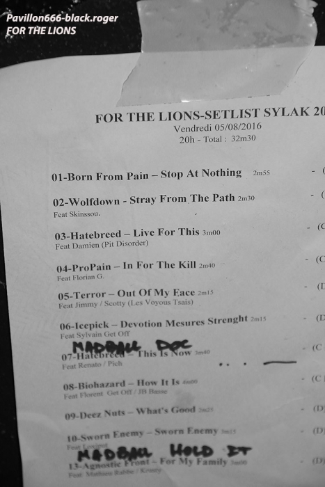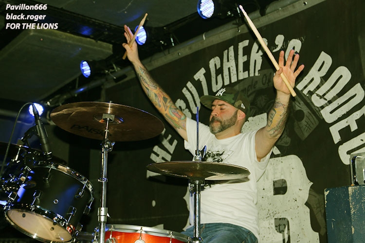 Alors on passe de « stop at nothing » de BORN FROM PAIN à « live for this » de HATEBREED, « in for the kill » de PRO PAIN au fameux « doc marten stomp » de MADBALL, ainsi de suite… Et dans la fosse (aux lions) le public réagit au quart de tour et bouscule tout, même sur scène. Il faut dire que Boris, frontman en verve, excite tout ce beau monde venu s’éclater au Rock n’Eat ce soir. Alors ça commence bien avec un set d’enfer qui laissera des traces notamment sur la scène qu’il faudra vite nettoyer avant le combo suivant. Merci For the Lions vous revenez quand vous voulez, nous apprécions vos envois et votre motivation.