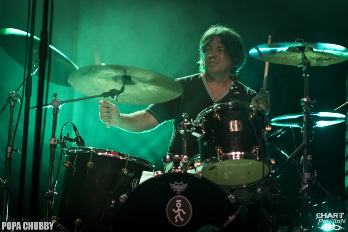 On ouvre la soirée avec le claviériste de Popa CHUBBY sur cette tournée, Dave KEYES. Seul avec ses claviers sur cette scène, Dave nous propose une série de titres entre blues et rock. Si un homme seul avec une guitare peut vous faire frissonner il en va de même avec un homme seul au clavier. Il suffit que celui-ci soit talentueux. Et c'est bien le cas ce soir ! Dave KEYES n'est certainement pas ici par hasard et il nous le démontre avec dextérité et un feeling incroyable. Son jeu est impressionnant et sa voix impeccable malgré le passage des années. Cette entrée en matière a le mérite de coller le sourire au public venu en nombre écouter des lignes de blues ancestrales mais toujours aussi chargées d'émotions. Le temps de régler quelques détails, d'accorder les instruments et il est l'heure d'accueillir Popa CHUBBY et ses musiciens sur une entrée sobre mais remarquée. Mais nous ne sommes pas là pour le spectacle et si spectacle il y a, il se joue sur une dimension différente des autres concerts. Tout est dans la musique. C'est avec une dextérité hors pair que ces musiciens la pratiquent. Popa CHUBBY est un guitariste chanteur hors pair. Sa vieille Fender Stratocaster sonne comme rares sonnent les guitares. Il faut un feeling hors du commun pour obtenir ce rendu. Et même si les groupes de blues sont nombreux, ils ne sont pas tous de la même trempe. Ils dépendent le plus souvent d'un personnage, celui du guitariste chanteur. Les fans de Jimmy HENDRIX pourront en témoigner. On se souvient du frontman mais nous sommes bien incapables de nous rappeler du nom des autres musiciens. Pourtant, Anthony CANDULLO à la basse et Tom CURIANO à la batterie font un travail remarquable ce soir. Il faut de toute manière avoir un sacré niveau pour suivre la cadence. La musique de Popa CHUBBY se doit de faire bloc et cela fonctionne à merveille. Le blues, le booggie et le rock se côtoient à merveille durant de longues minutes avec son lot d'improvisations, de solos démentiels le tout servi par des émotions très fortes. Le public, de tout âge, se voit conquis à vitesse grand V pour un show remarquable. Popa CHUBBY nous aura servi un set rempli de bonnes choses avec un feeling impressionnant. Même si vous ne pensez pas en priorité à ce type de concert à aller voir, vous ne serez pas déçus en vous y rendant. La raison est simple, si vous aimez la bonne musique, vous en retrouverez les racines ici dans leur meilleure forme. |