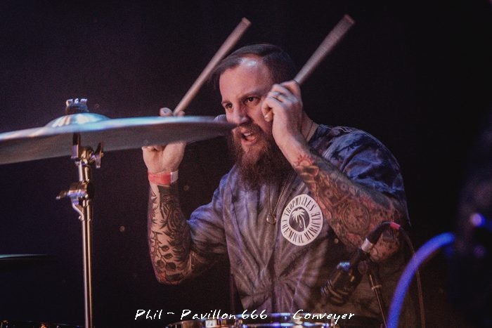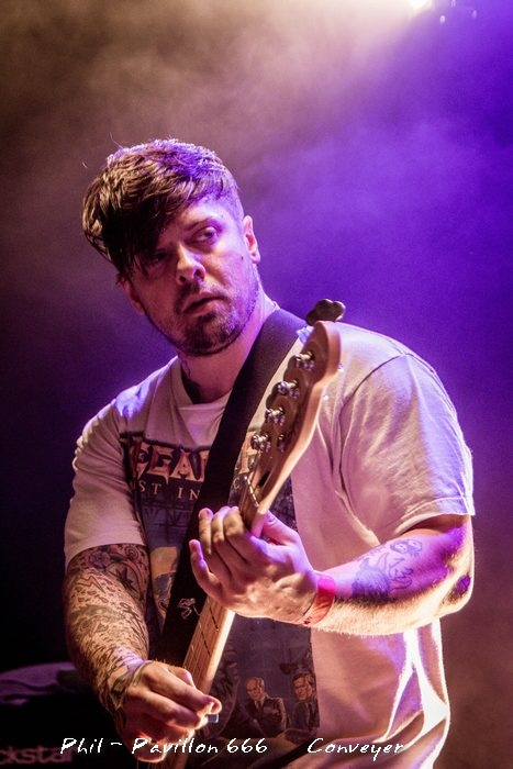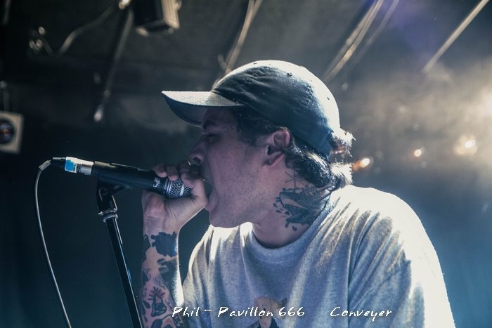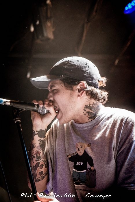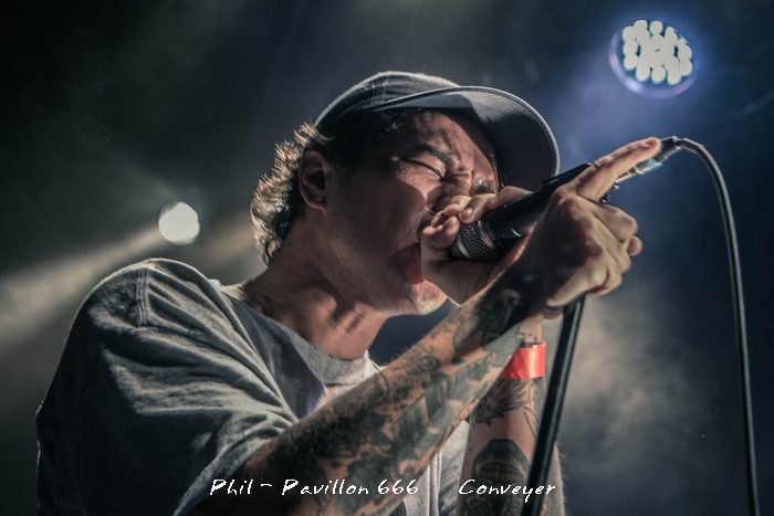 Double Experience débute cette soirée dans une salle continuant de se remplir, le trio canadien propose un rock hard énergique et intense. Les musiciens possèdent trois albums à leur actif mais sont peu connu dans l'hexagone. La prestation ne laisse pas de place à la monotonie, le groupe est agité et relativement en place. Le set se déroule dans une ambiance punchy, les musiciens savent faire le show sans en faire de trop. Musicalement, les compositions tiennent la route et supportent l'épreuve de la scène. L'exercice est d'autant plus délicat que l'assistance découvre les morceaux. Une belle expérience à renouveler. Changement de registre avec Conveyer, les américains donnent dans le metalcore. Point de faiblesse, point de temps mort... Les titres sont envoyés comme des parpaings en plein visage. La rage, le dynamisme sont les maitres-mots de cet instant de folie. La musique envoie du lourd comme la prestation scénique. Le quintette un peu à l'étroit sur la scène arrive à s'exprimer malgré tout. Les musiciens ne tiennent pas en place et bondissent sur chaque espace libre. L'ensemble est rugueux, fougueux et prépare comme il se doit la suite à venir. Le public ne s'économise pas et suit le mouvement engagé sur les planches. Le dernier album du groupe se nomme "No Future", je reste convaincu qu'il en existe bien un pour Conveyer. Ils sont décidés à mettre le feu à ce qui reste des planches, il ne faut guère de temps pour que cette envie se concrétise. Le quatuor tenu par Jared Gomes, casquette vissée jusqu'aux yeux, assène des assauts dans le premier morceau du set. Alternant le metal et des domaines plus groovy, issus du funk, de la soul ou du rap, les musiciens prennent un plaisir non dissimulé à évoluer sur scène. Ils ne se prennent pas au sérieux, faisant les pitres devant les objectifs, assurant les changements de rythmes sans failles. Ca groove un max, ça riffs en saturation, ça bastonne les futs, tous les registres musicaux passent en revue, faisant à plusieurs reprises des écarts vers le reggae et Bob Marley. De son coté, Jared Gomes en frontman appliqué joue avec l'assistance, module ses lignes vocales en fonction des registres explorés, s'amuse avec son mini claviers pour quelques refrains mélodiques. Les quinze titres interprétés ne laissent pas de répits au public, ce dernier est pris dans l'ambiance et ne voit pas le temps passer. La communion est parfaite, que l'on soit jeune ou fan des premières heures tous prennent un plaisir non dissimulé. Nous les avions perdu de vue, Hed (Pe) revient sous un nouveau format. Jared Gomes nous a promis de revenir rapidement en France, patientons en se remémorant cette chaude soirée de janvier. Remercions Alternative Live et l'équipe du Plan pour cet excellent spectacle. |