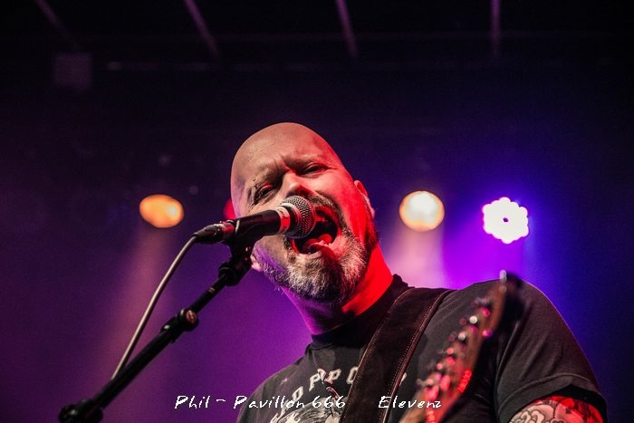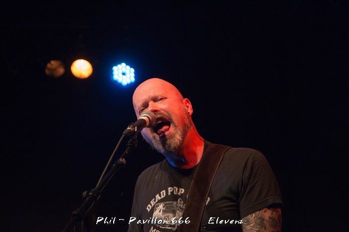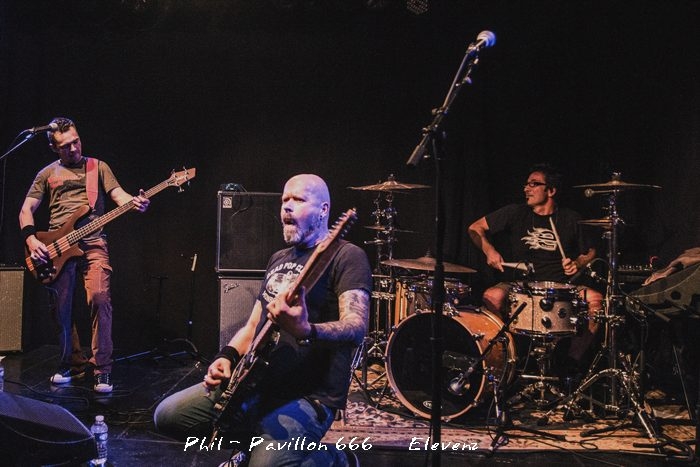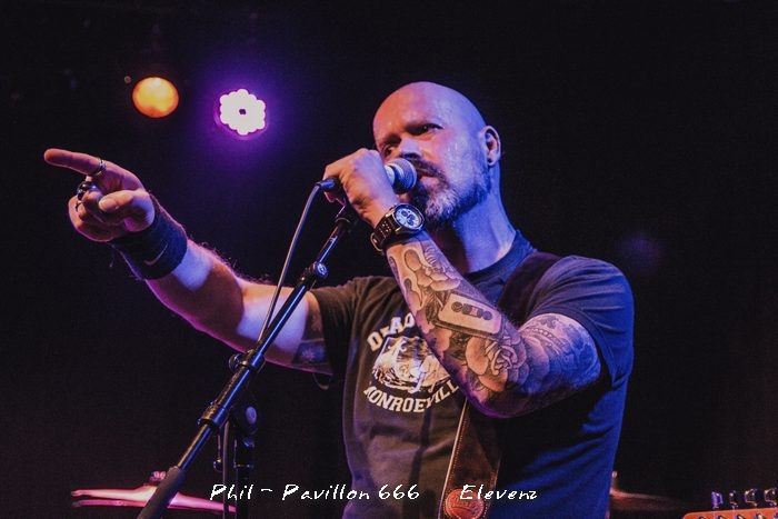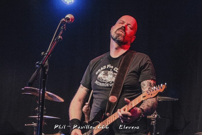Crispy Buble par les origines irlandaises de sa vocaliste délivre des compositions donnant le pop rock anglo-saxon. L'ensemble est propre et bien maitrisé, les titres sont dans un domaine classique tenus par une frontman ayant le sens du spectacle et de la communication. Le quartette interprète ses morceaux avec aisance mais il n'en est pas de même de la prestation qui les voit souvent concentrés sur leur instrument. Clément s'égare un peu et s'accorde des instants plus mobile au fur et à mesure du set, Karen assure le show pour ses compères. Un rock un peu mou pour votre serviteur mais qui a le mérite de tenir la pavé. Place à l'humour avec Elevenz, le punk de plage arrive sur les planches pour un set riche de fun. Stéphane (chant, guitare) n'est pas sur scène pour se prendre la tête. Avec ses camarades de jeu, ils envoient des brûlots aux airs de Sum 41, des premiers The Offspring et autres formations skate punk. Le chant en franglais, laisse entrevoir que le groupe provient de L.A. île de france, car dans leurs délires ils arrivent tout droit de L.A. from seine et marne et jouent en terre L.A. from Brie Comte Robert. Les titres sont courts, directs et sautent au visage comme ce bon vieux punk sait le faire. Les rythmiques bastonnent, les soli sont dans l'esprit punk rock et si besoin repris lors d'erreur de notes. Je vous ai dit du fun, rien ne les arrêtent. Le trio n'a pas d'état d'âme, le seul qu'il connaisse est d'envoyer du lourd et de transpirer le plaisir qu'ils éprouvent. Le public se prend au jeu et s'amuse des attitudes façon guitar hero usitées par Stéphane. Derrière ses deux compères son plus discrets, laissant leur chanteur faire le show. Une belle partie de fun et de grands moments restés en mémoire. Aguelenna est plus discret dans sa prestation scénique et moins rugueux dans son expression musical. Le quintette possédant quelques dates à son actif, comme la première partie de Mademoiselle K, propose un rock énergique mené par sa vocaliste Marie. La chanteuse comme à son habitude est vite en place et délivre un set intense sans économie, elle tient la scène pour l'ensemble du groupe. Assurant le lien avec le public, délivrant une prestation agitée, jouant avec les instants et intensités des morceaux afin de coller à l'esprit musical. Les autres musiciens sont moins dissipés, laissant l'espace à la vocaliste. Ses compères maitrisent leurs parties, donnant une parfaite cohésion dans l'interprétation des titres. Au fur et à mesure que je rencontre le groupe, force est de constatée que Aguelenna progresse à chaque set. Le groupe et son rock français prend forme, se confirme comme une formation prometteuse, appliquée, remplie de qualité. Le groupe profite de la soirée pour présenter deux nouvelles compositions dans la lignée de leur domaine musical. Une formation convaincante, attendons son prochain opus. L'équipe du Potomak a réussi une soirée intéressante dans une salle intimiste, privilégiant le confort de proximité. |