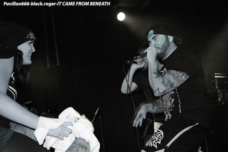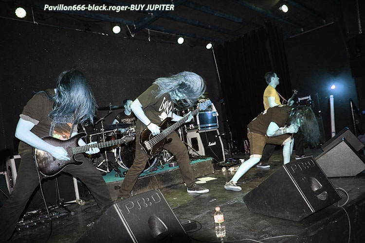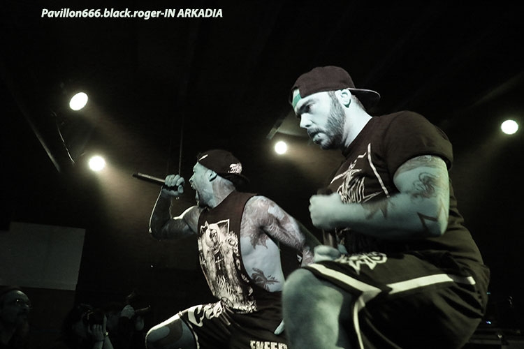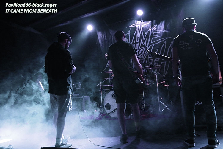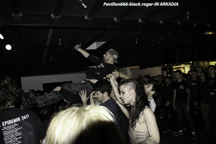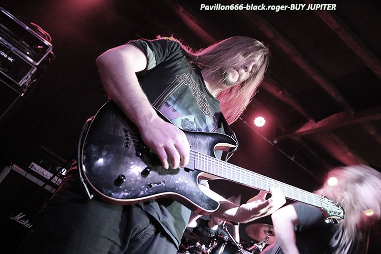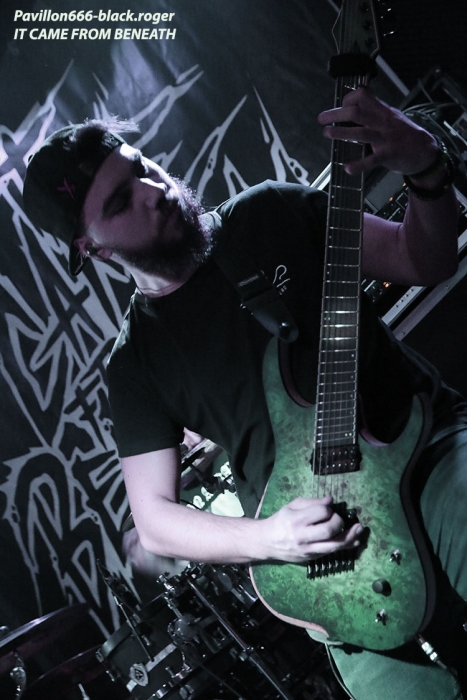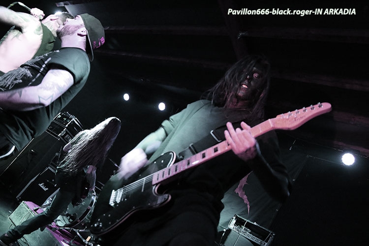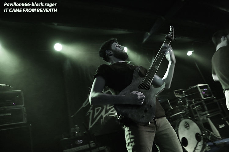 De formation récente (2016), THE REVERSIONIST compte bien se faire une place de choix dans cette mouvance deathcore mais aussi prog et neo-classique. Avec déjà à leur actif un premier opus intitulé « exitus » ils se lancent dans l’aventure avec notamment dans leur line-up Stéphan et Florent déjà connus comme ex-membres de feu-Destinity. Leur set est intéressant de par les parties prog des guitaristes mais aussi avec les envolées arrachées du frontman soutenues par une rythmique bien sentie. Leur prestation sera donc tirée à quatre épingles ce soir devant un public qui ne manifeste pas encore des vélléités physiques, public qui attends sûrement la suite pour enfin se lâcher complètement. Cette suite se nomme BUY JUPITER et l’on sent tout de suite qu’il va se passer quelque-chose. En effet nos Jeunes Lyonnais se font remarquer à chaque concert par une chorégraphie scénique incroyable et par une puissance de feu inégalée dans le style. Mais de quel style parlons-nous ici ? Pas de style précis catalogué et bien sagement rangé dans un tiroir. Ici on navigue dans les eaux tumultueuses et spatiales du deathcore, du metal en fusion et du prog « meshuggien ». Le groupe a la forme ce soir (qui a dit comme d’habitude ?) et les musicos vont nous coller contre les murs du Warm sans problème. Le set se passe sur scène bien sûr mais aussi bien souvent dans le public avec un frontman déchaïné qui grimpe partout. Alors nous avons encore une fois bien dégusté avec Buy Jupiter, on ne se lasse pas de les voir en concert, quelle baffe ! Le public en nombre est maintenant chaud/bouillant ou chaud/patate comme vous voulez pour accueillir IT CAME FROM BENEATH, ces musiciens qui ne sont pas venus ce soir au Warmaudio pour enfiler des perles mais pour nous brutaliser le « core » et l’esprit à l’aide d’un deathcore sur-vitaminé. Habitué des scènes françaises, Européennes et même Russes, ce quintette va tout dévaster dans la salle et le public a joué le jeu en s’éclatant à qui mieux-mieux, certains en auront des marques d’ailleurs ! Plus hardcore que metal, à mon avis, ICFB possède quand même une certaine lourdeur metallique qu’il utilise à bon escient en variant ses compositions comme on aime dans ce style, et du coup ils possèdent une accroche scénique importante qui fait mouche à tous les coups, on aime tout simplement. Après cette bourrasque appréciée, vient le moment d’accueillir les héros du jour, IN ARKADIA qui viennent nous présenter leur nouveau « méfait » appelé « lions » à juste titre ! Et là ce n’est plus une bourrasque mais un ouragan qui va tout arracher dans un Warmaudio en chaleur (pléonasme ?), en mouvements et en sueur, je ne vous fait pas un dessin. In Arkadia pratique du blackcore un mélange de black donc, de « core » bien dosé mixant avec habilité dethcore, metal et mélodies malsaines. Et sur scène ça donne quoi ? C’est de l’énergie pure avec deux frontmen toujours sur la brêche qui vous prennent à la gorge et ne vous lâchent plus. Et avec eux, des musiciens qui ne sont pas nés de la dernière pluie métallique et qui s’envoient en l’air entre deux riffs scalpels. In Arkadia a déjà exporté son blackcore sur les scène Françaises, Européennes et Japonaises. Il a aussi ouvert pour notamment Biohazard, Napalm death et Dark Tranquillity, et nous les reverrons prochainement en ouverture de Cannibal Corpse. Voilà pour la petite histoire et en attendant nos Lyonnais de comptent pas s’arrêter là, vous vous en seriez douté après leur démonstration de ce soir au Warmaudio avec beaucoup de monde venu les soutenir de belle manière. Très belle soirée donc, bonnes prestations, bon public, bonne ambiance, que demander de plus ? Cela méritait bien un coup de cœur de la part de Pavillon666. Alors merci aux organisateurs, School’s Out Production, merci au Warmaudio et merci au public incroyable pour l’ambiance. |