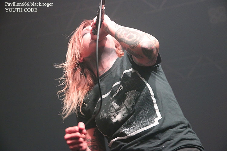 Dès 20heures, une lumière verte éclaire l’isérois DAN TERMINUS, un homme, des machines, des projections. Au menu du cyber-punk-electro proposé par Dan T. qui vient de sortir en novembre dernier un album 10 titres intitulé « automated refrains ». Ce compositeur vient « tripoter » ses synthés devant nous durant 45 minutes, et pour l’instant le public reste stoïque, attends-t-il la suite ou apprécie-t-il tout ça, nul ne le sait vraiment… Un public qui va commencer à s’enflammer un peu avec YOUTH CODE de Los Angeles, un homme, des machines et surtout une chanteuse aux évolutions agitées et à la voix punk/arrachée, duo nous offrant de l’EBM/Indus bien senti. Sara Taylor et Ryan George, duo de choc « ricain » donc tourne en Europe actuellement après avoir sorti l’album « commitment to complications » en 2016 et le single « lost at sea » (Chelsea WOLF remix). Leur son est dit-on « abrasif, discordant et violemment rapide », et effectivement leur punk-hardcore mixé à la techno accroche en live comme ce soir au transbordeur où leur set a fait mouche devant un public bien chaud/bouillant. Mission accomplie pour accueillir maintenant la tête d’affiche de la soirée. Cette tête d’affiche n’est autre que CARPENTER BRUT qui nous a surpris en sortant il y a seulement 3 semaines un nouvel enregistrement intitulé « leather teeth ». Un Carpenter Brut qui nous abreuve depuis dèjà un moment de synthwave/darksynth, rock électronique pour faire simple. Des compositions qui délirent sur des films inspirés des 80’s, bien glam, bien kitsh, bien décadents comme l’époque citée en référence. Alors en live ça donne quoi ? C’est rose mais « dirty » à la fois, c’est aussi noir et violent parfois, disco et funky aussi, mais lorgnant vers le metal naissant de l’époque, de ces années 80 où tout était permis (ou presque). Ce soir, dire que Carpenter Brut était très attendu relevait d’un doux euphémisme après un passage très remarqué, au Ninkasi Kao de lyon en 2016. Car avant que les lights entrent en scène le public s’agitait déjà fortement, premières notes, premiers slams, ça va chauffer dur ce soir, et ce fus le cas dès le premier titre éponyme du nouvel opus « leather teeth ». Alors l’ambiance est là, grosse, palpable avec des lumières partout, des projections sur écran et les trois musiciens en ombre qui distillent une musique puissante, « riffue », électrique et éclectique avec envois de synthés et batterie réglée sur le binaire, on s’y croirait. Mais où en fait ? Et bien dans les 80’s voyons, mais sans le copier/coller revival de l’époque car Carpenter brut met un point d’honneur à créer et « moderniser » tout cela, avec doigté svp. Leur performance scénique a donc fait un « tabac » ce mardi soir dans un Transbordeur plein comme un œuf, on aime, que dis-je, le public a adoré c’est sans appel ! Set-list : leather teeth, division ruine, roller mobster, beware the beast, wake up the president, chew bubblegum and kick ass, turbo killer, paradise warfare, cheerleader effect, meet matt stryker, Monday hunt, inferno galore, sexkiller on the loose, disco zombi Italie, hairspray hurricane, le perv, maniac. Soirée incroyablement décalée donc pour un public qui a répondu présent au « groove » ambiant dispensé par les trois formations en lice ; merci à eux et merci à Médiatone Lyon et ArtZone Chronicles, on recommence quand ? |