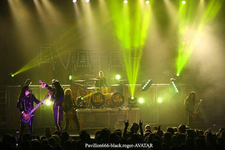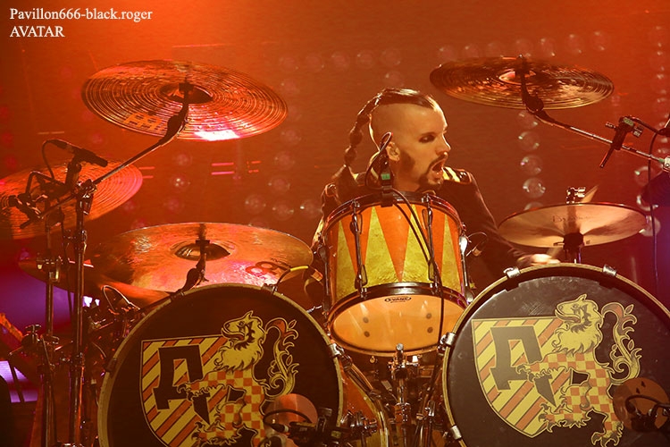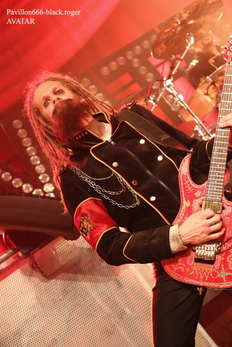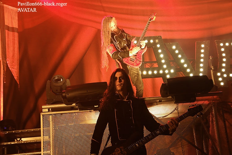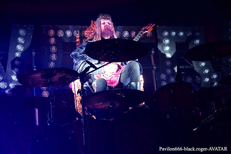 Tout le monde n’est pas encore rentré en salle lorsque OLD KERRY MCKEE s’installe sur la grande scène du Transbordeur, il est 19 heures 30. Devant nous un homme, sa guitare, son harmonica, son mini kit de batterie, du blues, du folk en provenance de Suède, de l’ile de Hisingen où se réfugie l’homme bien sûr, pas des « states ». Kerry a déjà pas mal tourné en Europe notamment avec Declan de Barro et les (post) punks new-yorkais de Self Defense Family. Actuellement en tournée avec Avatar donc, il continue de promouvoir son vieux folk-blues sorti de la poussière américaine. Une petite demi-heure plaisante passée en sa compagnie et l’on attend la suite qui risque d’être un peu spéciale… Cette suite, c’est bien évidemment ceux de HELLZAPOPPIN CIRCUS, rock n’roll Freak Show qui vont tenir la foule en haleine durant 40 minutes à l’aide de leurs prestations particulièrement spéciales, âmes sensibles s’abstenir. Et le « le monsieur loyal » annonce l’arrivée de personnages décalés sur une intro de Pantera, le freak show commence mesdames, mesdemoiselles et messieurs, alors riez, criez pleurez, mais ne restez pas de marbre devant ce spectacle incroyable. Ici on crache du feu, un homme supporte des poids accrochés à son nez et à ses paupières. Un homme-troc se met à l’horizontale, un autre visse ses narines, perceuses et tronçonneuses entrent en action dans les corps, etc. etc. Je ne vais pas tout vous raconter en détail, vous n’aviez qu’à être présents à ce show monstrueusement dérangé. Un côté circus avant le cirque d’Avatar on aura tout vu ! Mais non, vous n’avez pas tout vu car maintenant AVATAR, son Roi et sa cour de musiciens vont nous apporter en live le grand frisson metal, rock et plus si affinités. Le petit groupe de death mélodiqque à la Suédoise qui faisait ses débuts en 2001 et qui passait pour un certain copier/coller de In Flames ou Dark Tranquillity a fait son chemin progressivement dans une voie et un concept pour le moins original dans le monde du metal. Et le résultat est là en cette année 2018 avec la sortie du fameux nouvel opus « country ». Car si musicalement parlant Avatar brise toutes les barrières dans la campagne du rock et du metal en mixant allègrement death, prog, neo et metalcore, il en est de même quant à leur projet visuel qui se traduit par des looks du monde du cirque et des décors incroyablement colorés et en adéquation avec le monde des clowns (au sens propre comme au sens figuré). Le Résultat en live est tout simplement époustouflant, complètement fou si vous voulez et l’inter-réaction avec le public est au rendez-vous créant par la même une ambiance loufoque pour certains, mais géniale pour la majorité des inconditionnels du groupe, présents ce soir à Lyon. Avatar a donc réussi encore une fois à contenter pleinement ses fans, mais a également réussi la performance de rallier au King de nouveaux venus surpris par un spectacle visuel et musical de haute volée et incroyablement original. Il fallait le faire, et les Suédois ont gagné la partie haut la main, je n’en reviens toujours pas ! Set-list : glory to our king (intro), legend of the king, let-it burn, paint me red, kings harvest, bloody angel, for the svarm, the king wants you, puppet show, tower, the eagle has lauded, war song, raven wine, reload, smels like a freak show, a statue of the king, the king welcomes you to avatar country, hail the apocalypse. Merci au Transbordeur et à Charles de la SAS Concerts pour l’accréditation/pass photo accordée à pavillon666. |