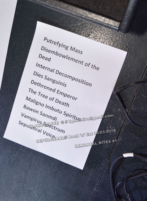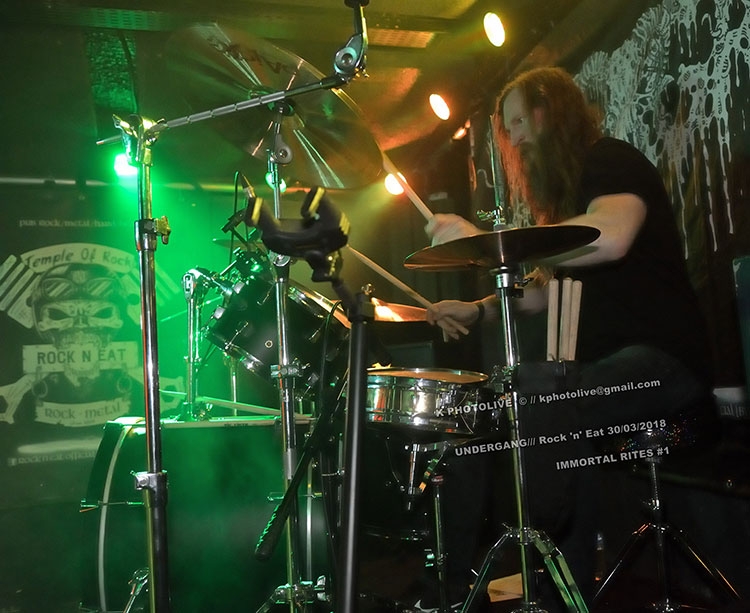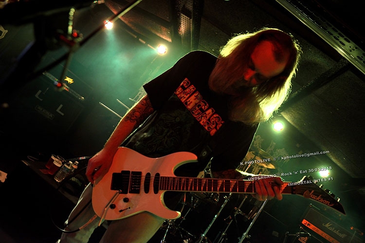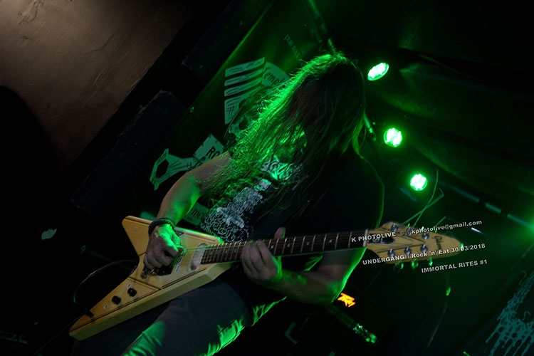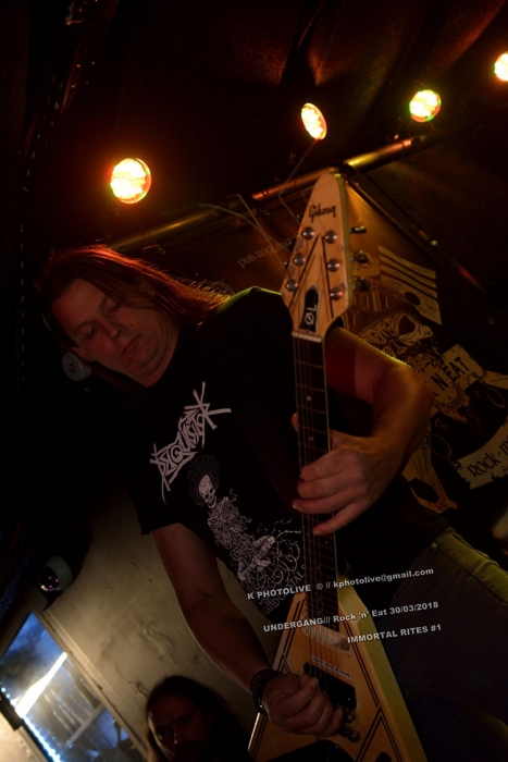 Depuis son ouverture en octobre dernier, le nouveau Rock 'n Eat, sur la rive droite de la Saône, haut lieu lyonnais du rock metal sous toutes ses formes, connaît un succès inespéré, à ce jour jamais démenti, et ce dernier vendredi de mars ne fera pas exception. En effet c'est ici qu'a lieu le concert « Warm Up » IMMORTAL RITES qui précède de 24 heures le festival organisé par FOREVER RIPPING FAST et Ulric, son dynamique et dévoué responsable. L'événement a eu lieu au CCO de Villeurbanne.