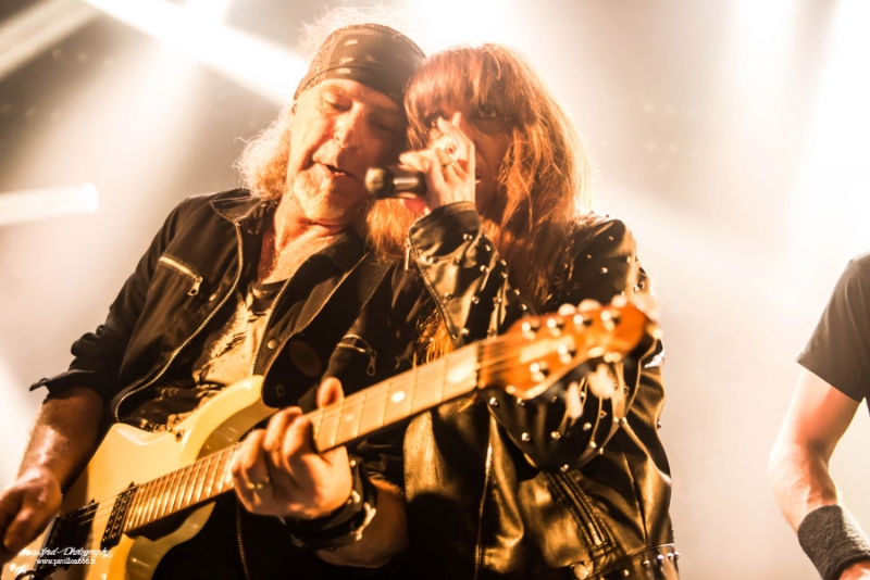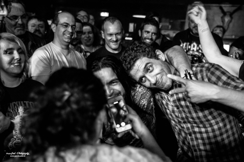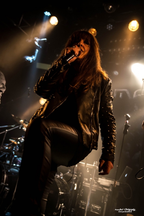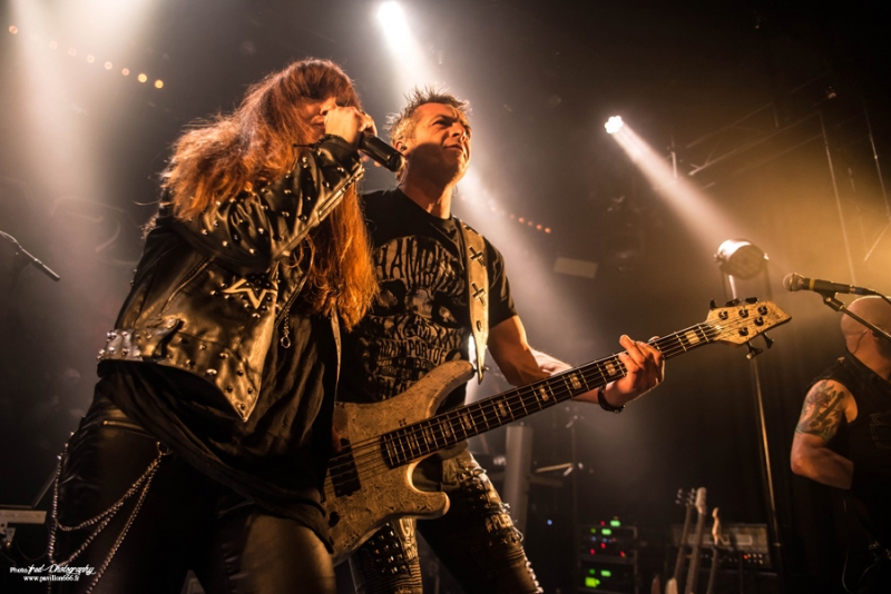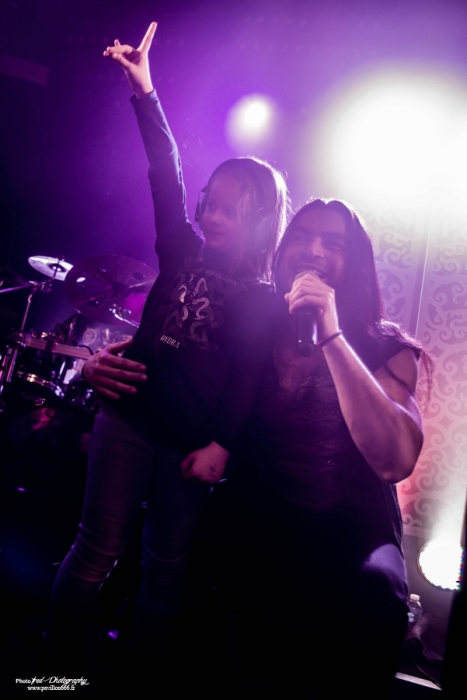 Comme prévu sur les réseaux sociaux, c’est à 20h30 qu’est donné le coup d’envoi de cette belle soirée qui s’annonce et c’est Manigance qui monte sur scène. Si je connais un peu le groupe, sans mettre franchement penché dessus plus que ça, j’ai été plutôt surpris de voir que c’était une femme qui occupait le rôle de frontman et en l’occurrence, il s’agit de Carine Pinto dont je n’avais jamais entendu parlé jusque-là. Après enquête, celle-ci remplace le chanteur originel et principal compositeur de la formation, Didier Delsaux, à partir de cette tournée et probablement sera la chanteuse officielle pour la suite de la déjà très longue carrière du groupe. Apparemment, elle gravite autour du groupe depuis des années et on a pu attendre sa participation sur un titre du dernier album. Le show commence avec « Face contre terre », premier titre accrocheur issu de machine nation, un morceau percutant qui met tout de suite dans l’ambiance. Efficace, mais tout de même très techniques, les enchaînements de solis des deux guitaristes Bruno Ramos et François Merle, les deux piliers de Manigance, font mouche à plus d’un titre, d’une énergie et d’une précision qui mettent le feu au public du ferrailleur. On enchaîne les titres nouveaux et anciens « Mourir en Héros », « Machination », très demandé par quelques fans en trance, avec tout de même la part belle donné au dernier opus en date. La nouvelle chanteuse s’en sort plutôt bien. N’étant pas particulièrement attaché au groupe, j’avoue que le changement me choque peu et je trouve qu’elle s’en sort très bien malgré le peu de concerts qu’elle a pu faire avec le groupe. Pour la petite anecdote, j’ai pu récupérer sa set list où on voit qu’elle n’est pas encore très à l’aise. Tout y est détaillé, les titres, mais aussi tous les dialogues et interventions qui arrivent entre chaque morceau. Généralement, on a des set list écrite sur un bout de papier, à l’arrache, mais là, tout est écrit, pas de place à l’improvisation. Cela n’a pas empêché le public de se déchaîner et le changement n’a clairement pas altéré l’accueil fait au groupe et tout le monde, groupe y compris, semble s’éclater sur scène et dans la salle. Un très bon moment qui se termine sur « larmes de l’Univers », un classique de Manigance, pour ensuite faire place aux très attendus Tunisiens de Myrath. Setlist : Face contre terre – Mourir en héros – Héritier – Machination – Ennemi – Volte-face – loin d’ici – Pur sang – larmes de l’univers Comme d’habitude, quelques instants se passent avant la réouverture du rideau sur un décor très sobre, composé de lights (par moment, un peu violent pour les yeux) et de panneaux au style orientaux et c’est sur l’intro du nouvel opus que nous pouvons admirer les courbes sensuelles d’une très charmante danseuse orientale. On en avait pas vu pour Orphaned land, mais cette fois-ci pour Myrath, cette gracieuse jeune femme vient envouter et gagner le cœur des spectateurs qui n’ont pourtant pas besoin de ça pour être chaud comme la braise et accueillir Myrath comme il se doit. Les musiciens débarquent sur scène et entament un titre du nouvel album à venir « Born to survive », difficile de se faire une idée du titre en une écoute, mais il semble dans la même ligne que Legacy, accrocheur, mélodique et qui met bien en avant ces accents exotiques. Myrath est clairement une formation qui grimpe en flèche depuis la sortie de cet album et le passage au hellfest, l’an passé, n’a plus que faire du bien à leur notoriété et leur performance scénique est loin de passer inaperçu, en particulier grâce au chanteur, Zaher, qui n’hésite pas à converser avec le public entre presque chaque titre. Petit moment d’émotion d’ailleurs, lorsque il parle des problèmes de terrorisme en France et en Tunisie avant un « Get your freedom Back" très à propos, autre titre de Legacy, album qui composera l’essentiel de la set list de ce soir. De ces moments-là, il y en a beaucoup pendant ce show, Zaher qui invite un enfant à venir sur scène pour la tendresse ou il descendra aussi dans la fosse pour partager une danse avec ses fans. Voilà ce qui fait un bon concert, une éxcécution magistrale avec un virtuose à la gratte en la personne de Malek, un chanteur charismatique qui met le feu dans la salle et je pense que beaucoup de ceux présent ce soir garderont un très bon souvenir de cette soirée. Un grand merci à Verycord pour l’organisation de cette soirée au Ferrailleur. Born to Survive - Storm of Lies – Dance - Wide Shut - Merciless Times - Get Your Freedom Back Endure the Silence - Nobody's Lives – Madness - The Unburnt - Tales of the Sands Rappel: Jasmin – Believer - No Holding Back - Beyond the Stars |